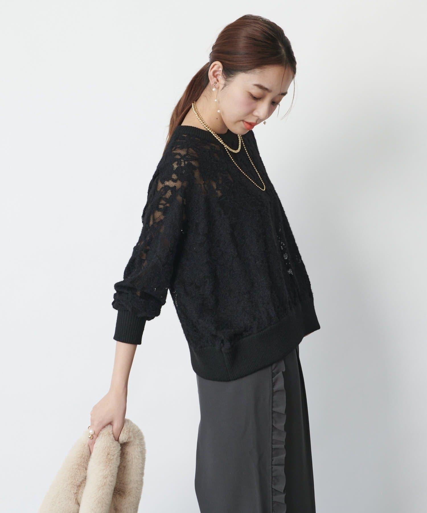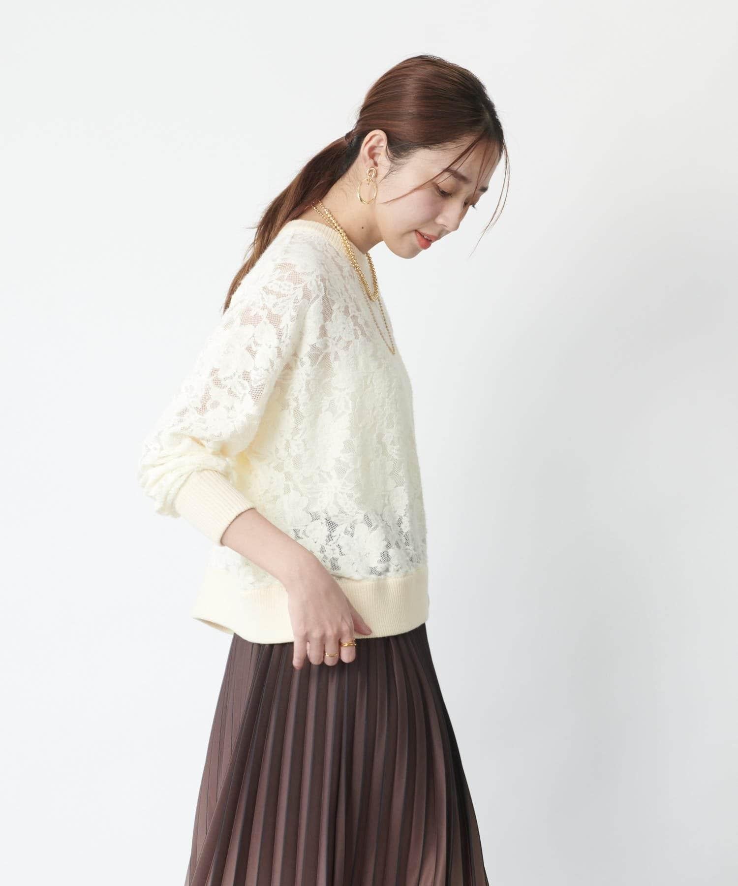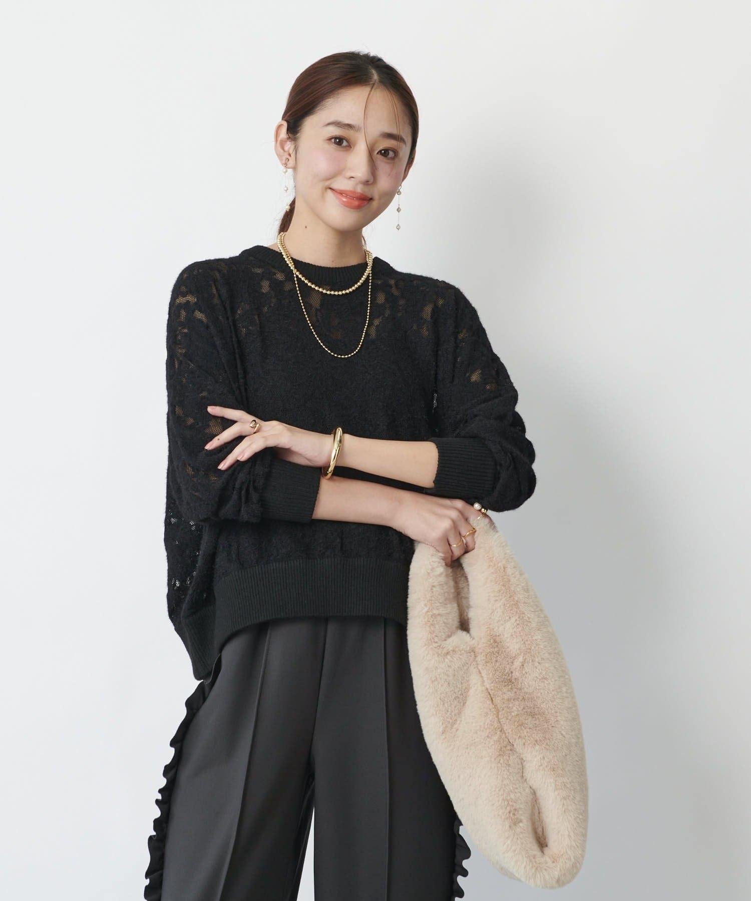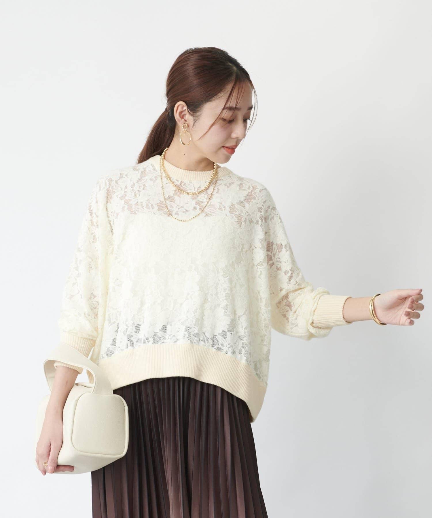 這款套頭衫具有成人女性的情調,採用精緻的蕾絲製成,具有奢華的透視感。