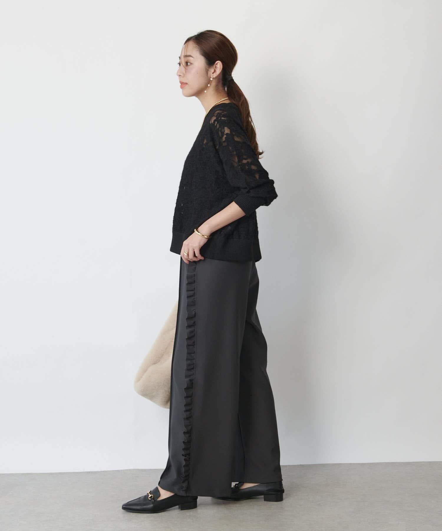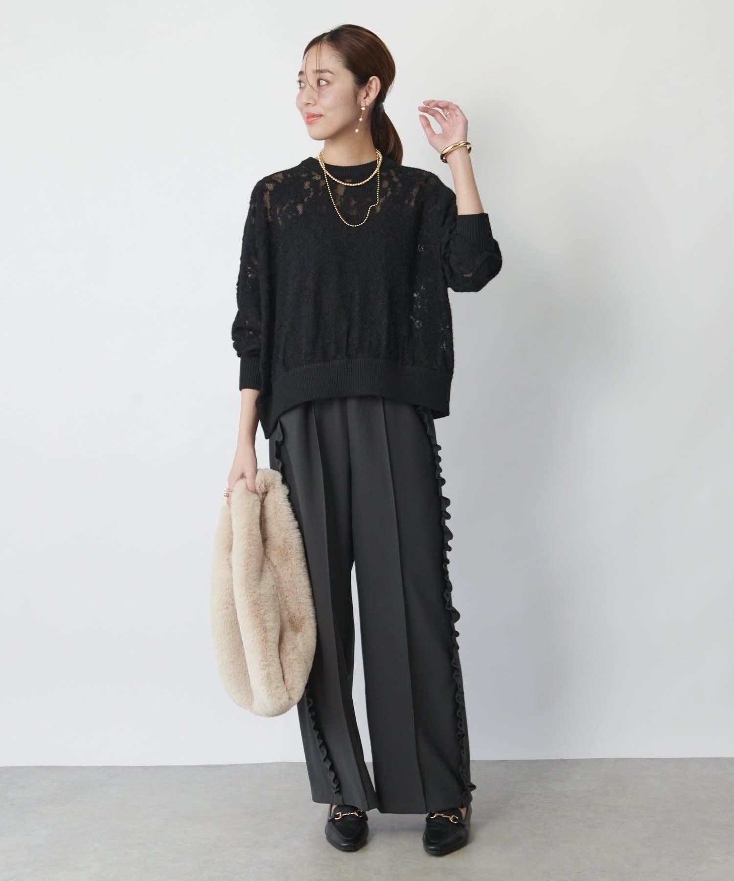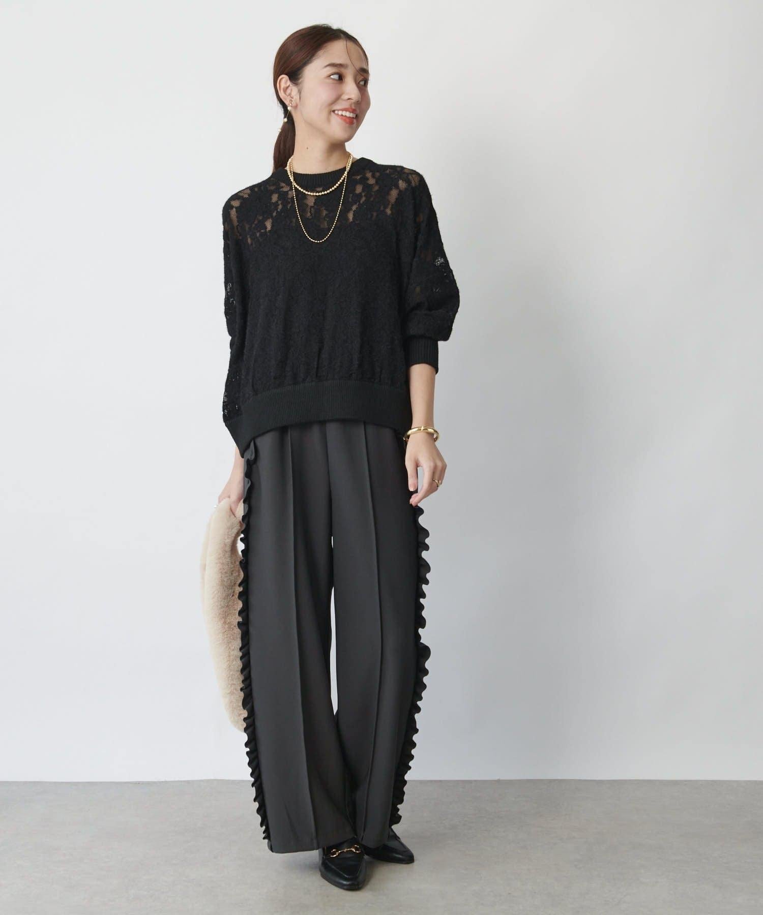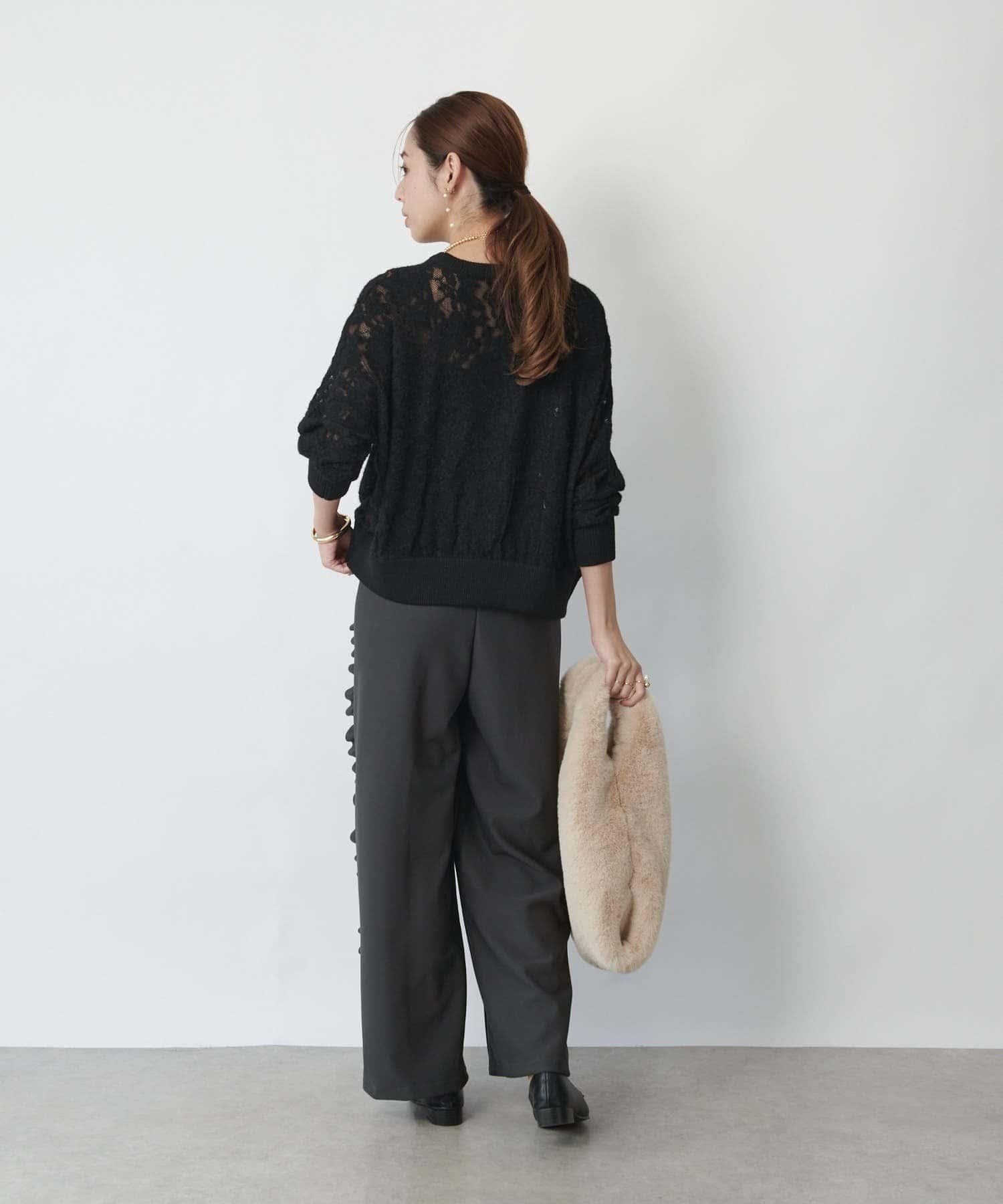 這款套頭衫具有成人女性的情調,採用精緻的蕾絲製成,具有奢華的透視感。