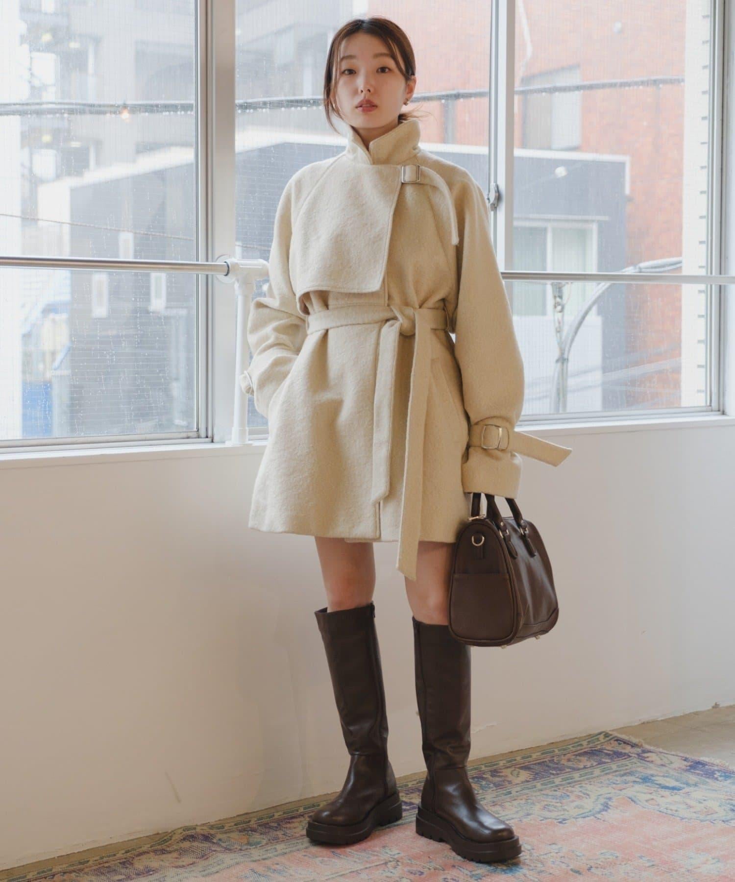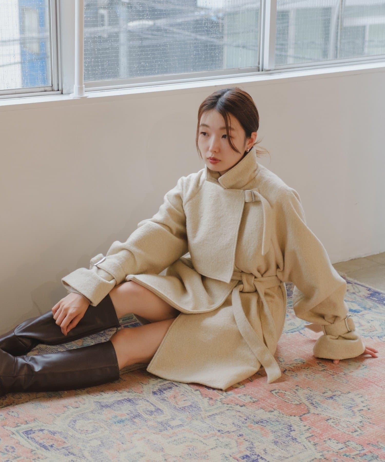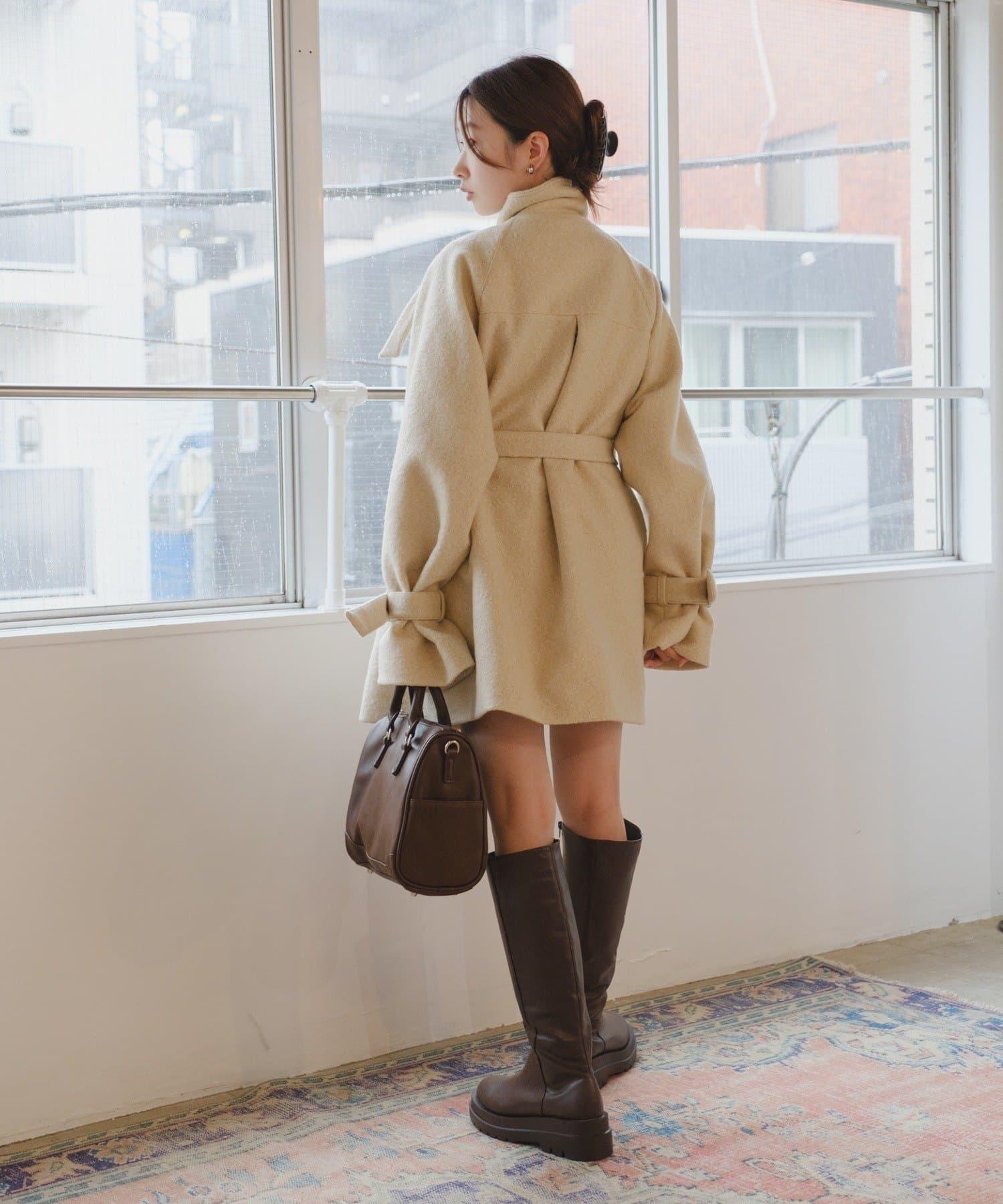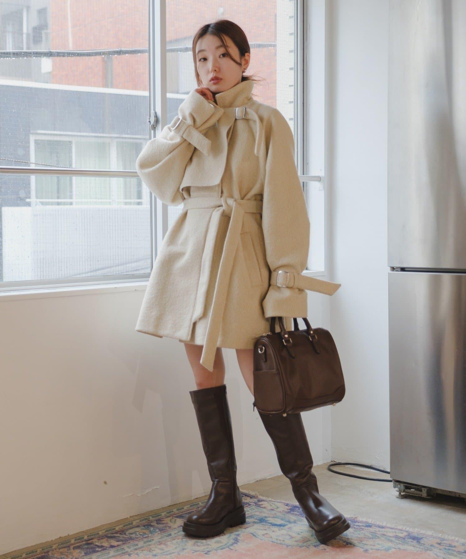 高領喇叭袖大衣