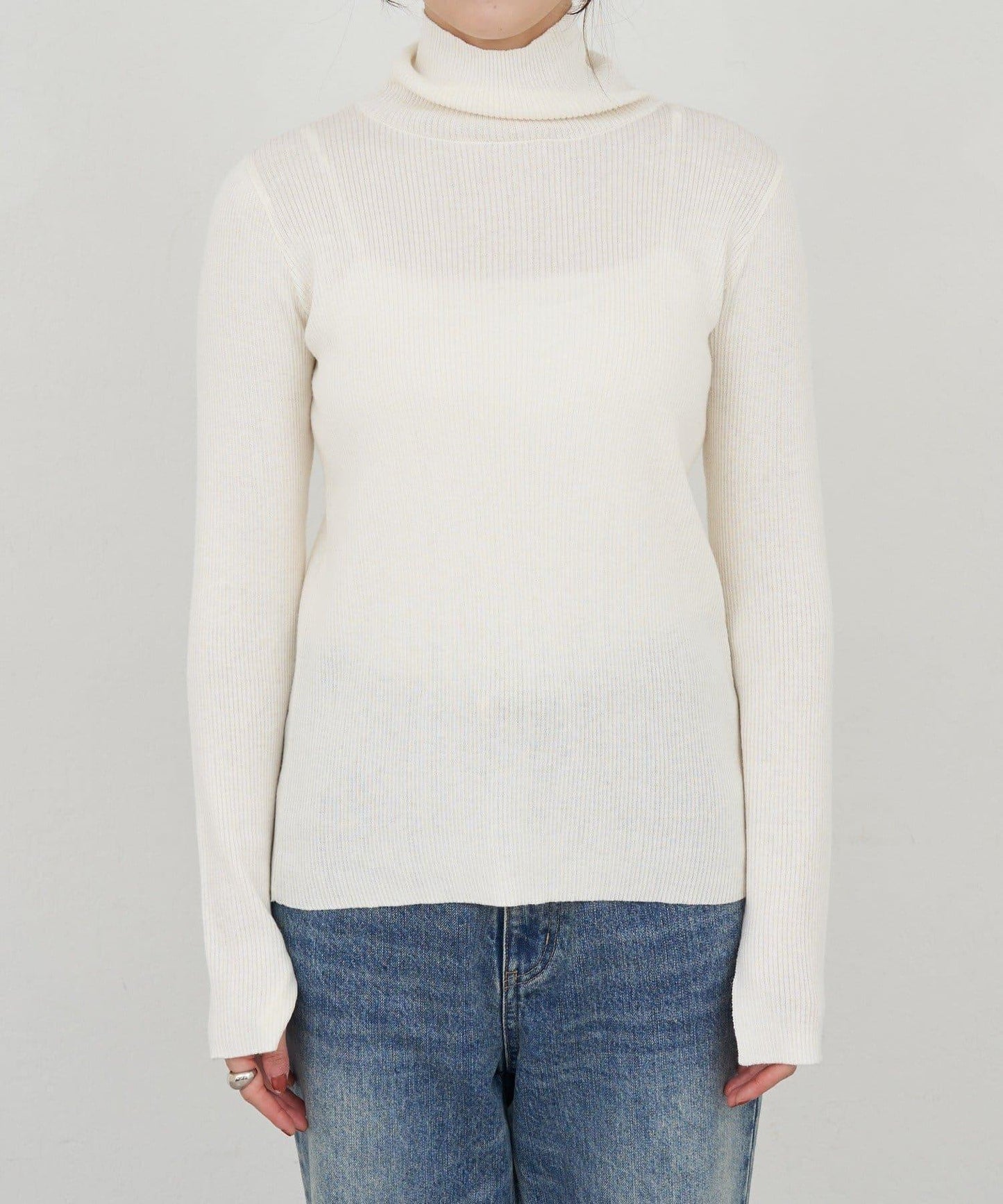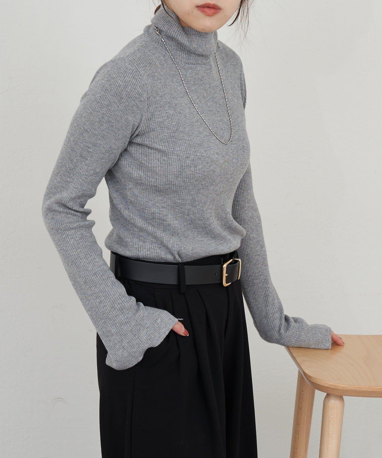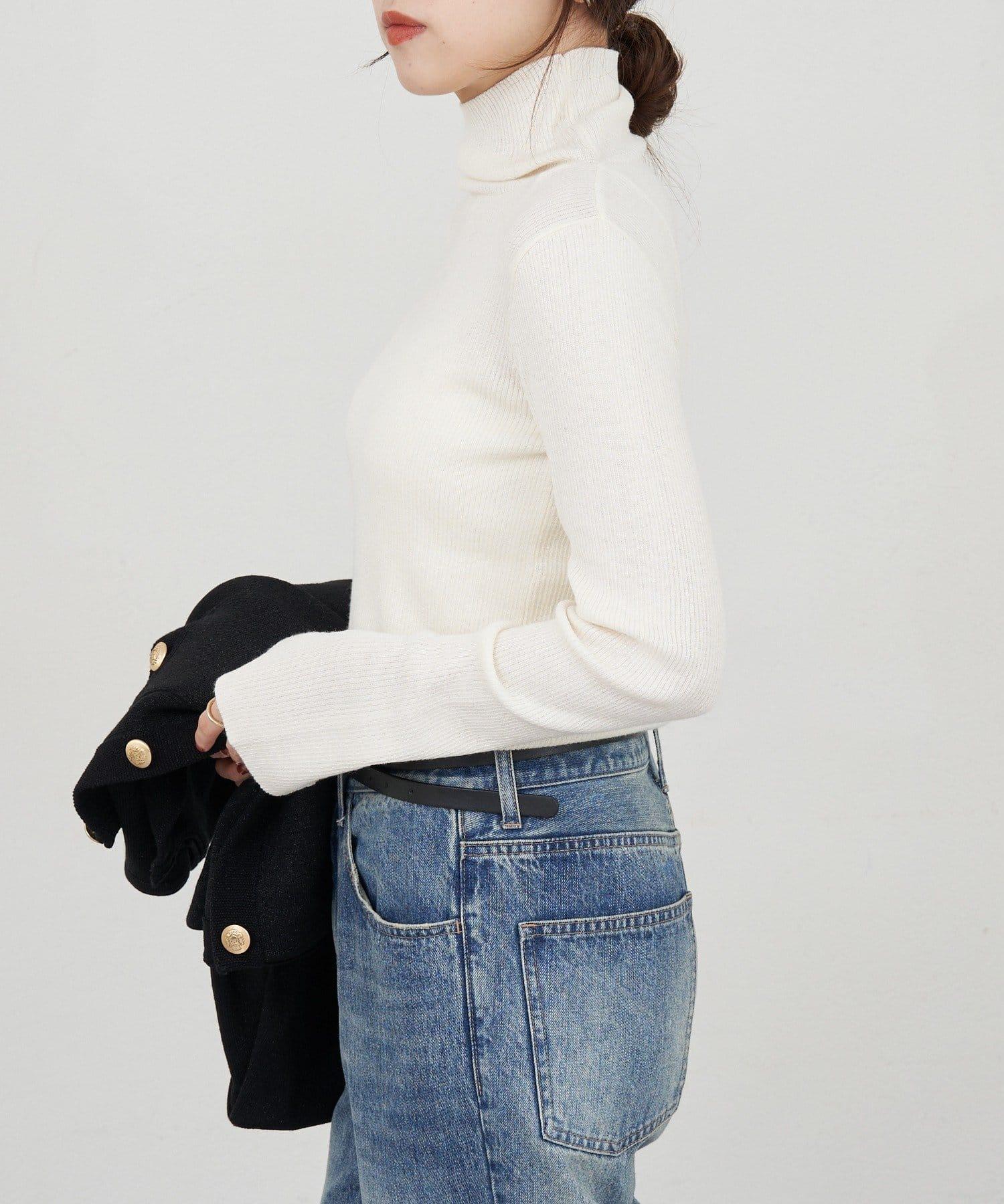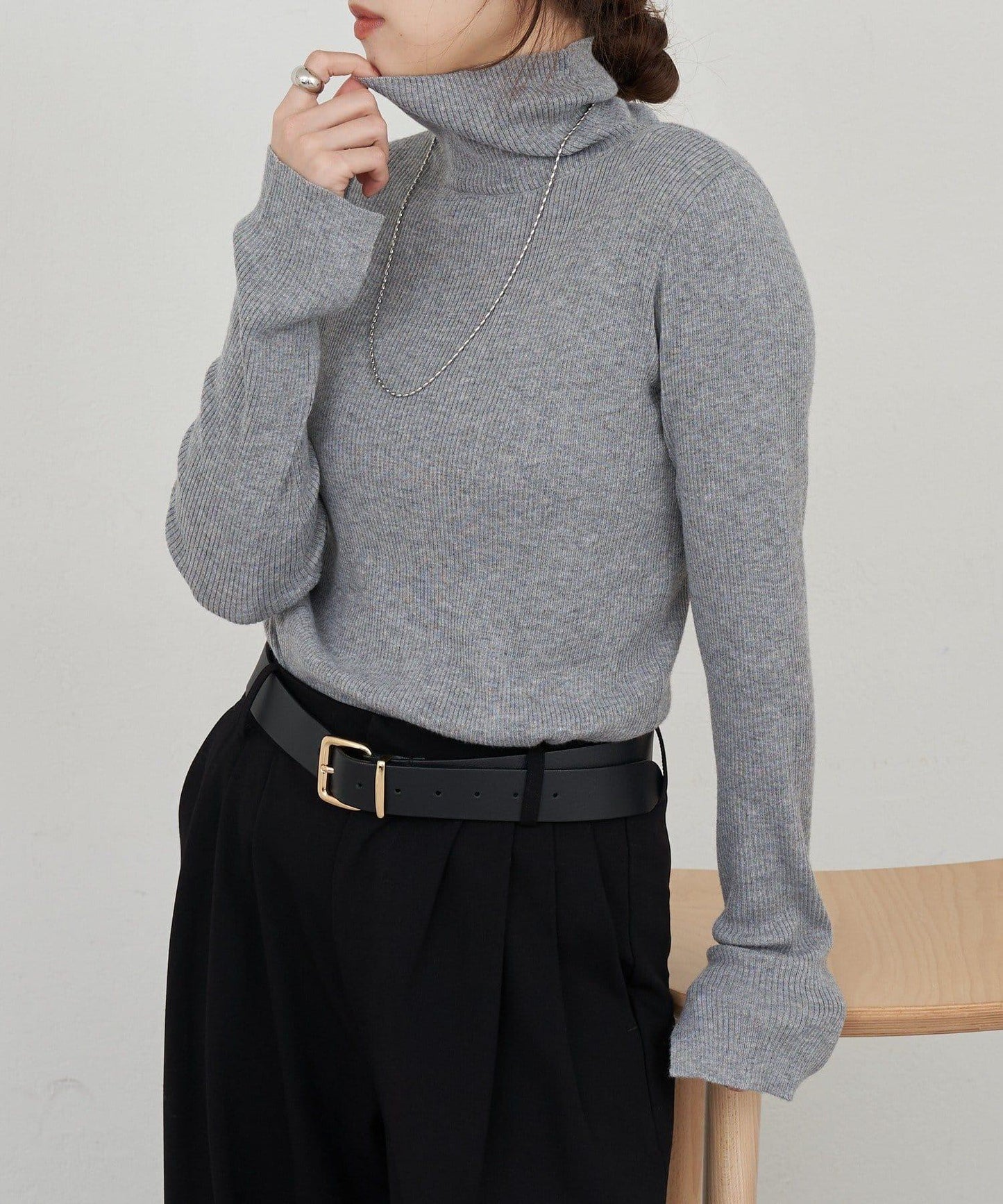 高領針織衫,簡潔有力。