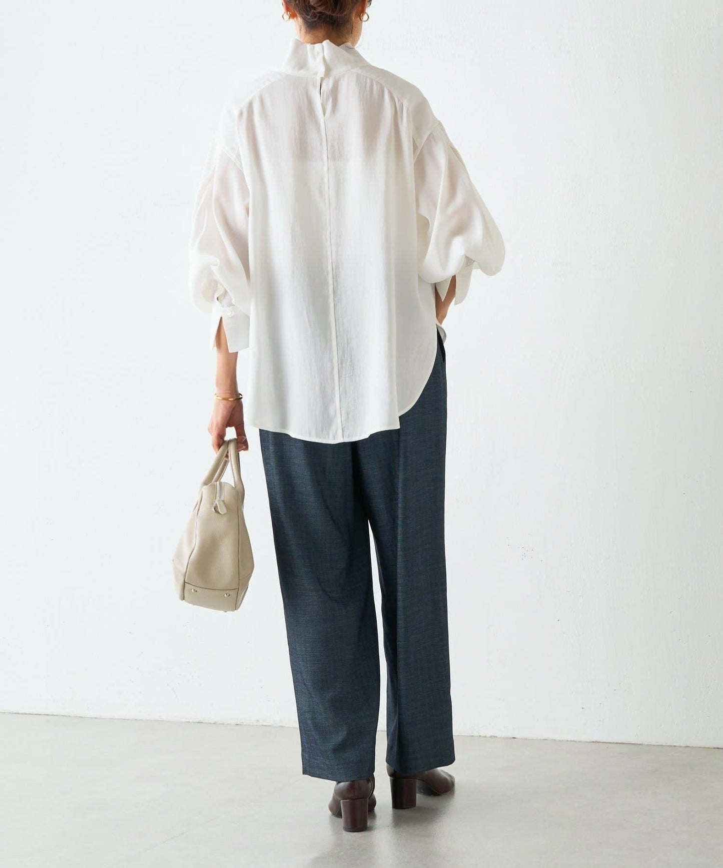 光滑的面料手感和圓潤的輪廓使其易於單穿。