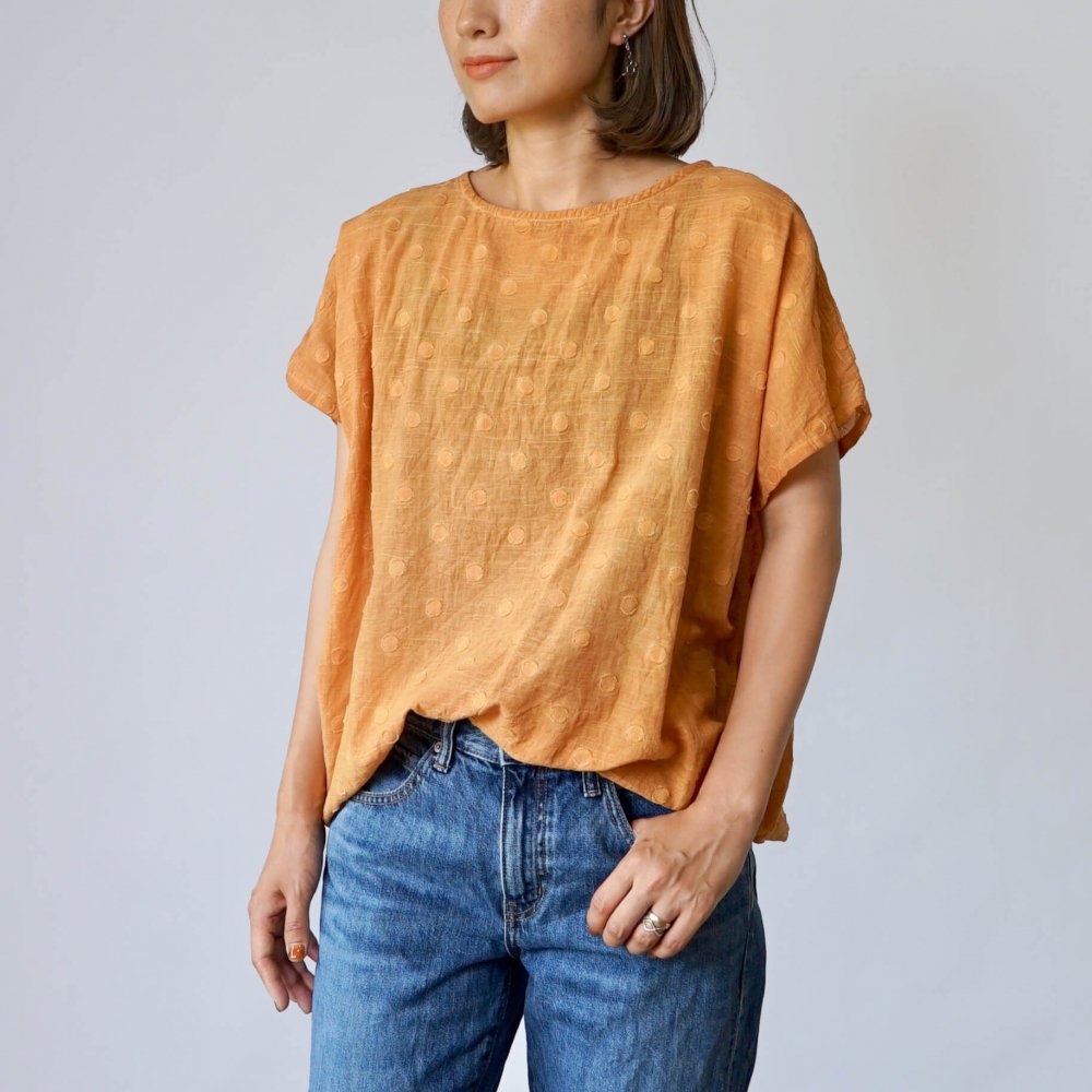 鬆軟波點T恤/橙色/遠州織物