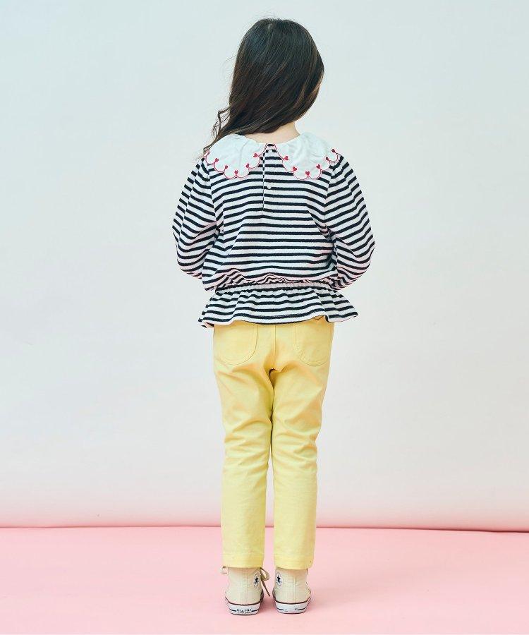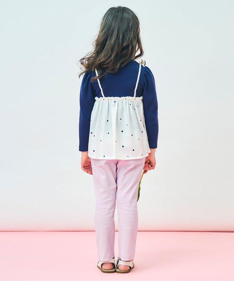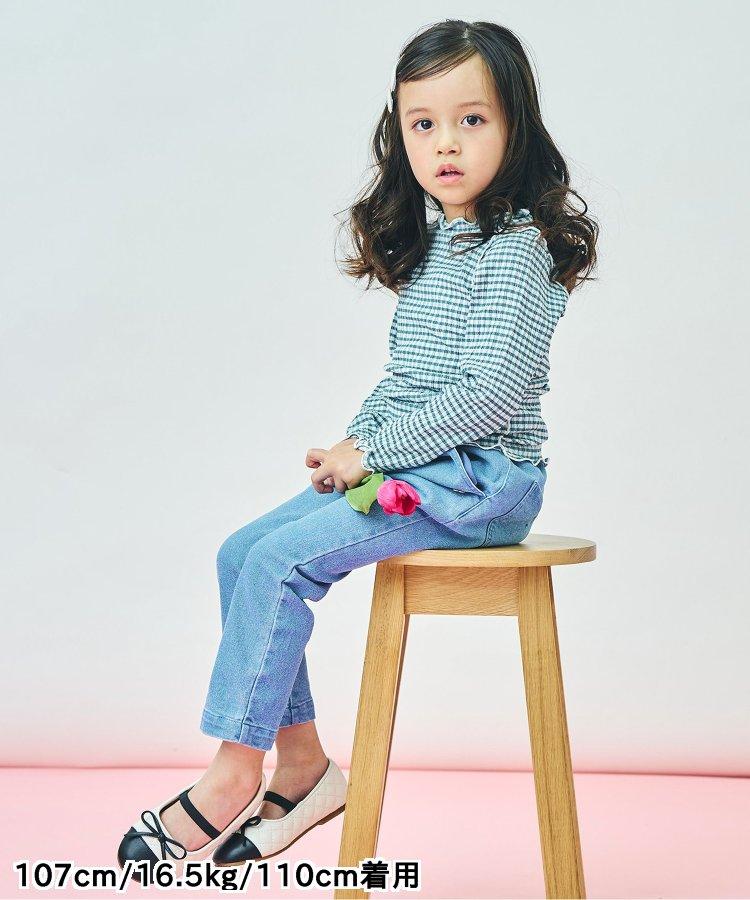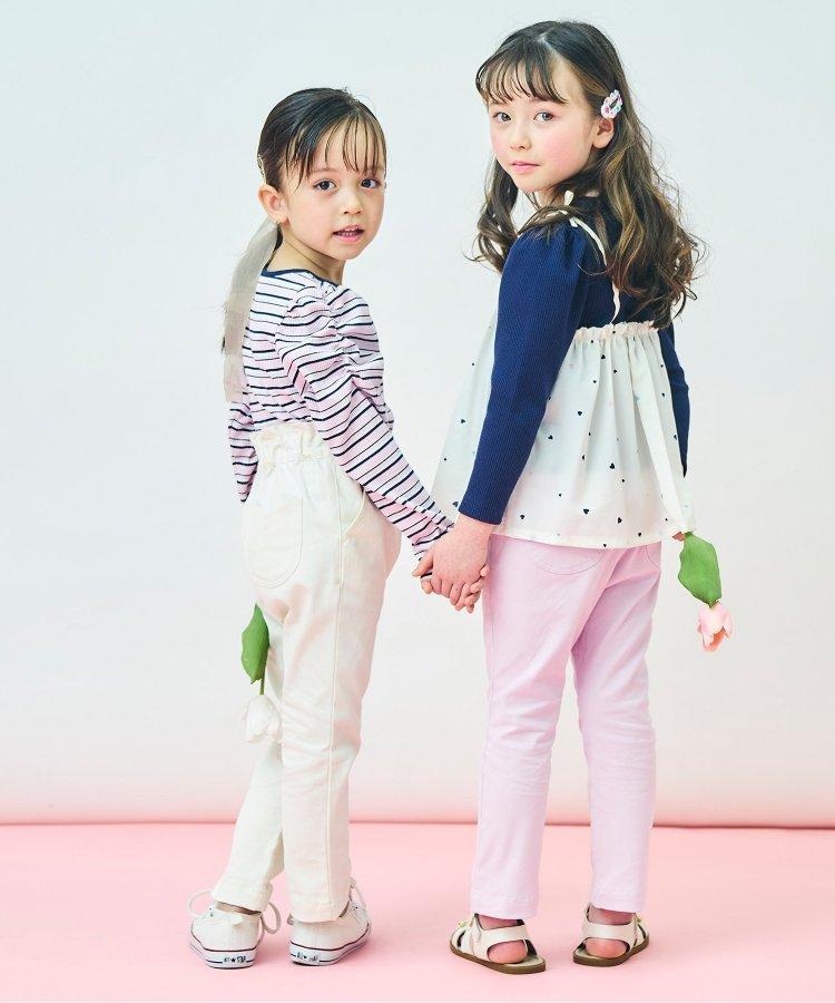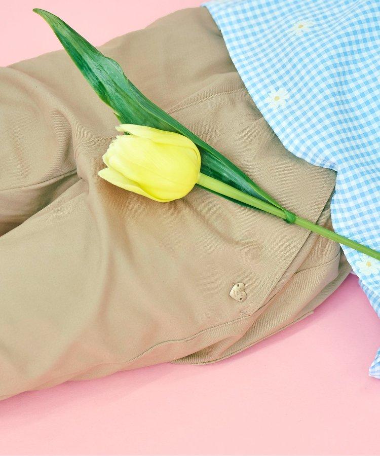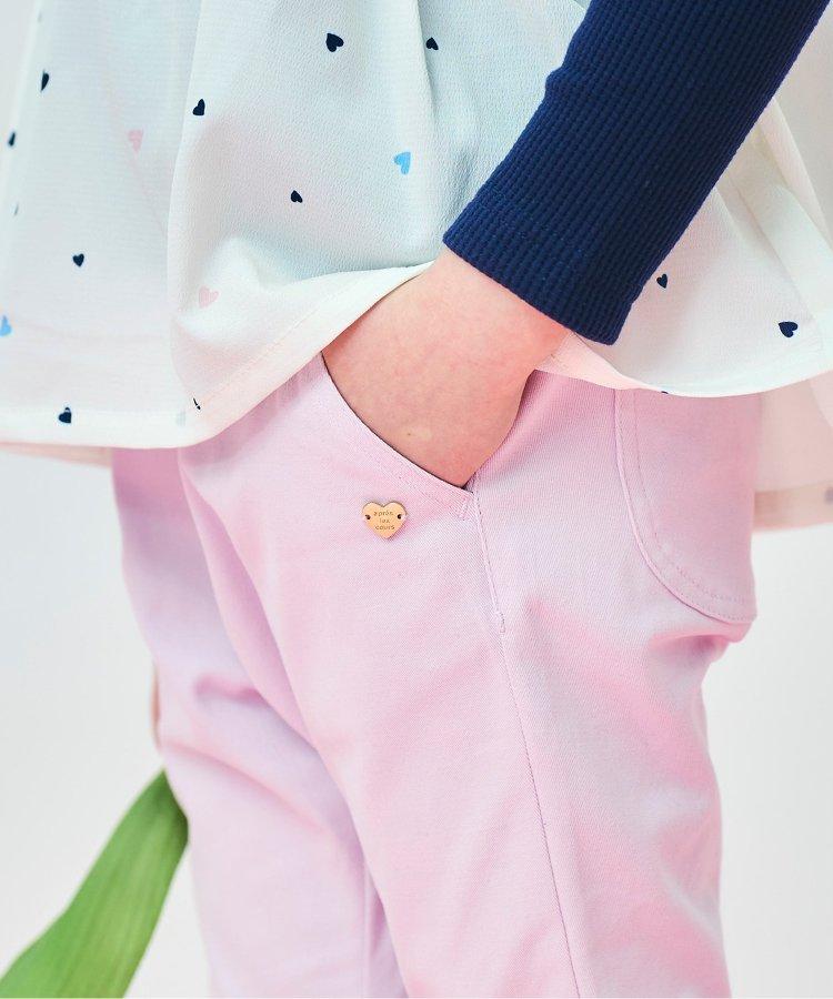 一條褲腳口的背面有心形刺繡,將下襬向後摺疊,就能看到心形刺繡♪。