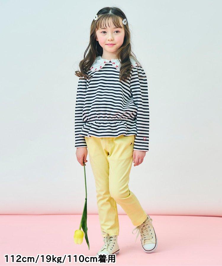 心形刺繡,即使下襬折回也能穿出可愛感。