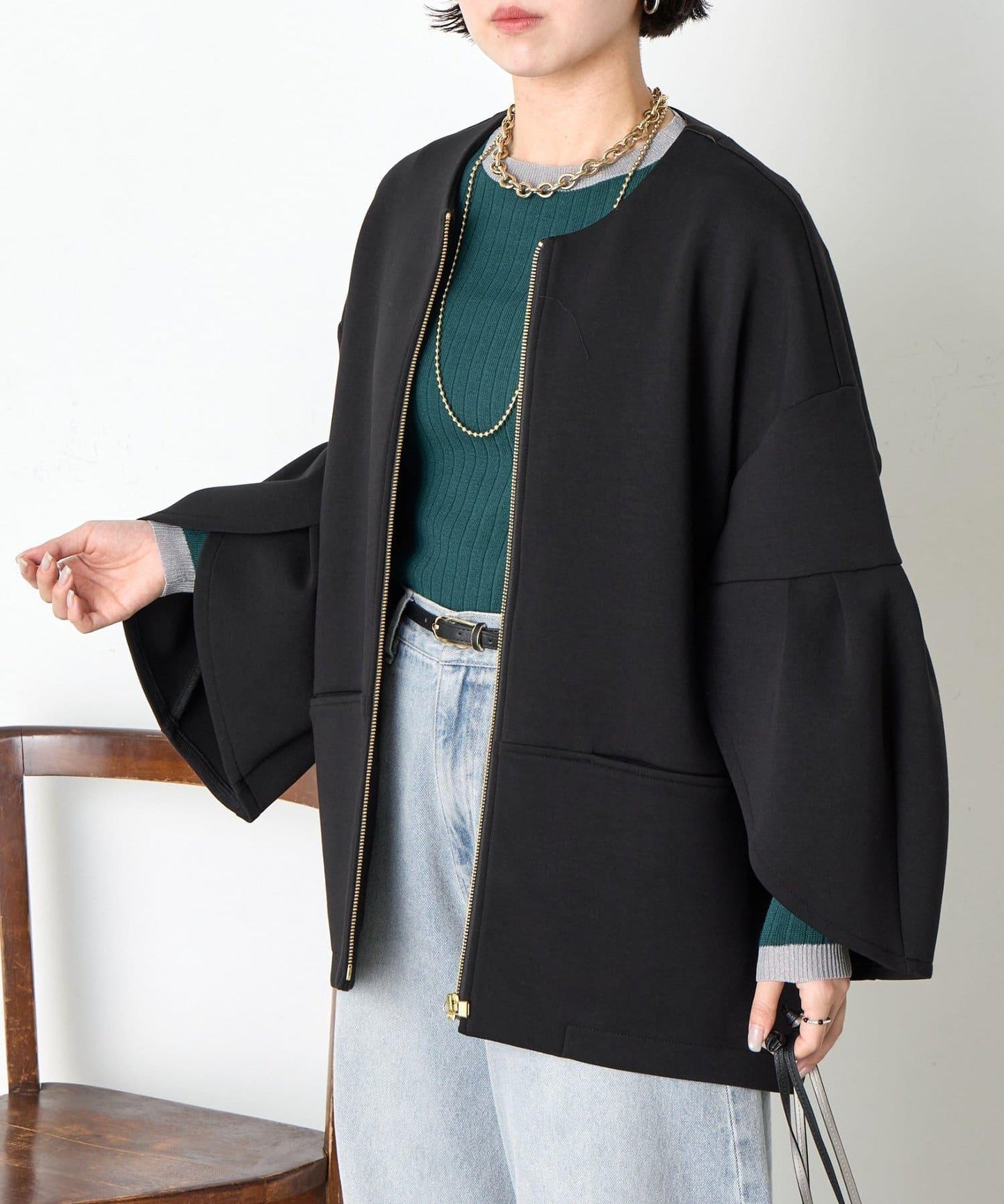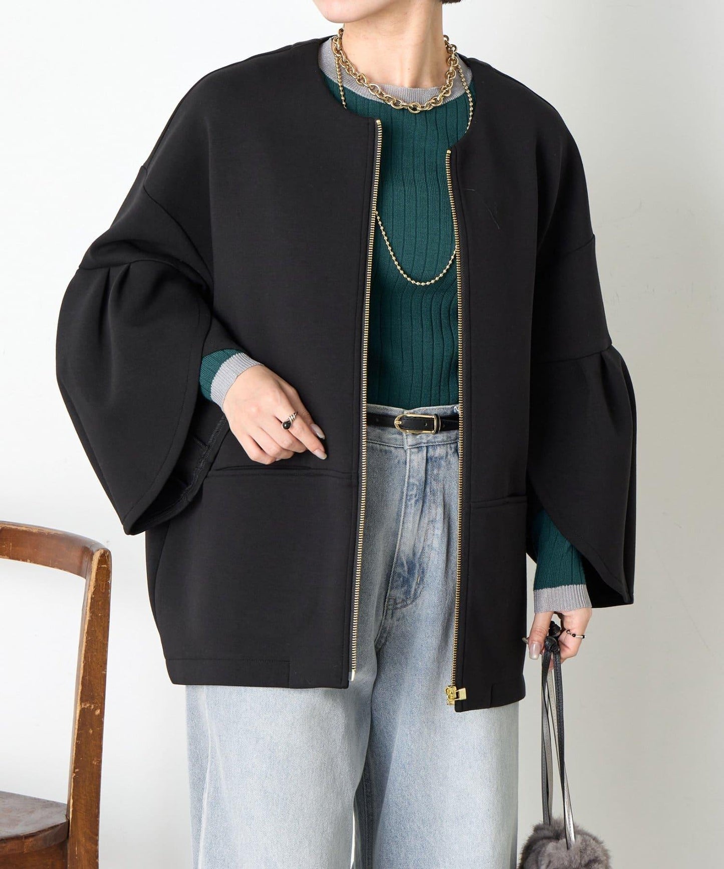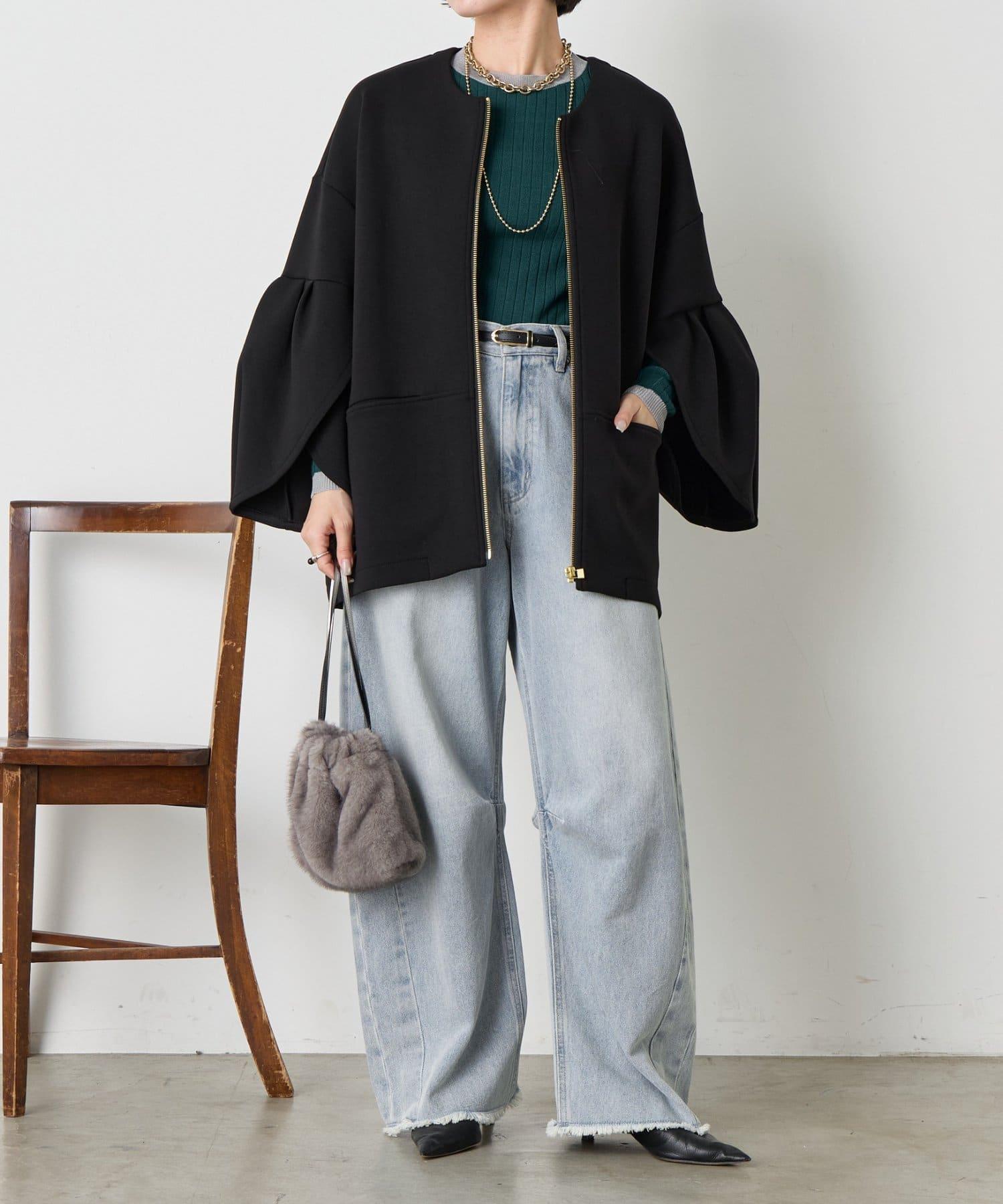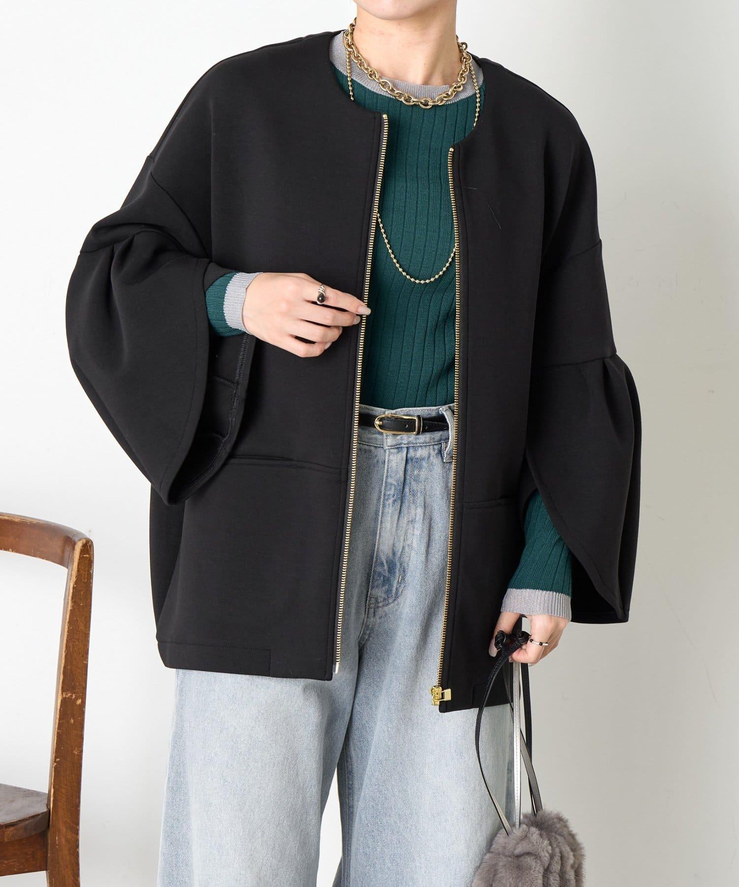 鬱金香袖拉鍊夾克