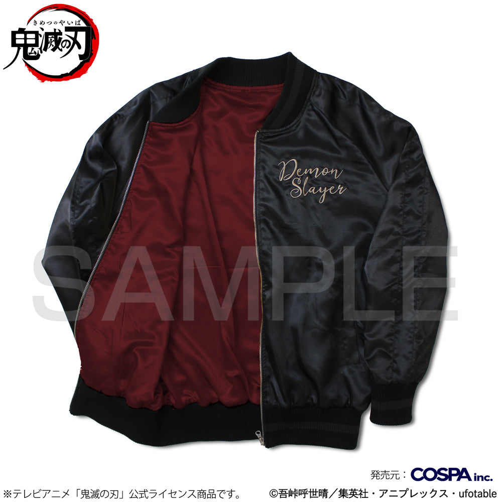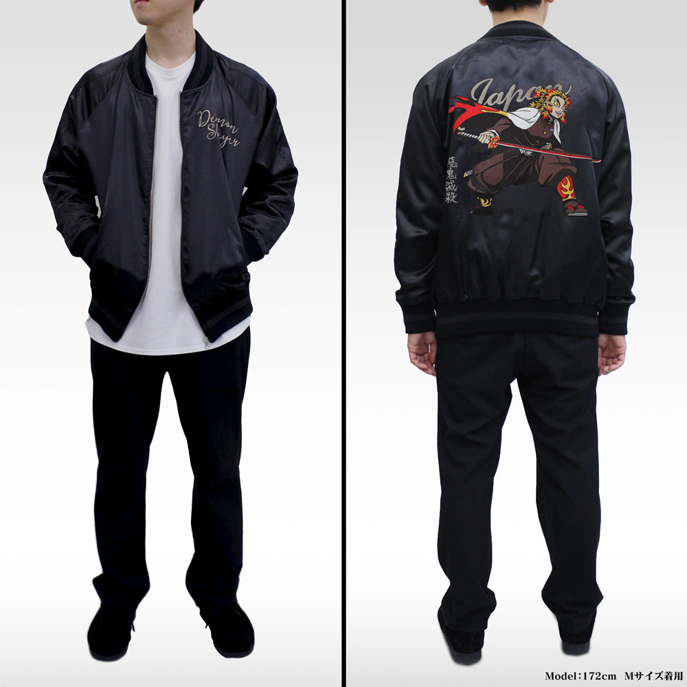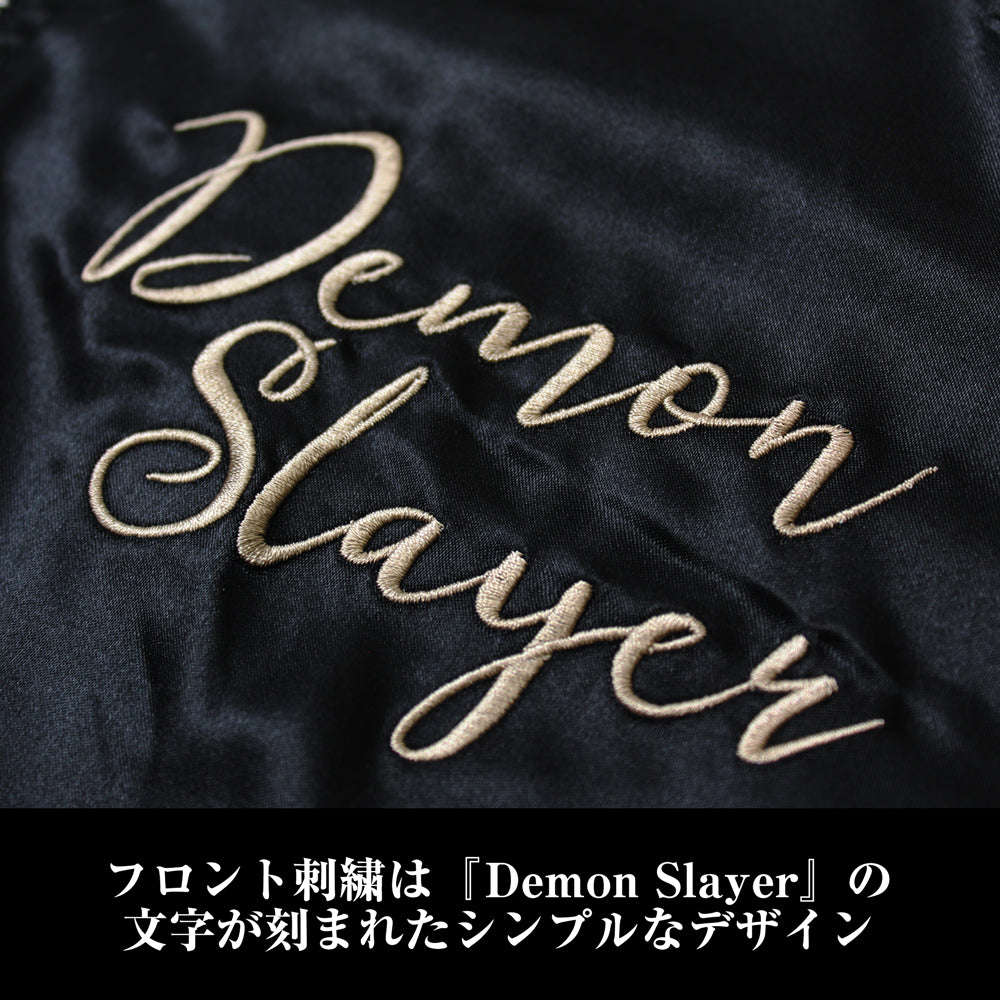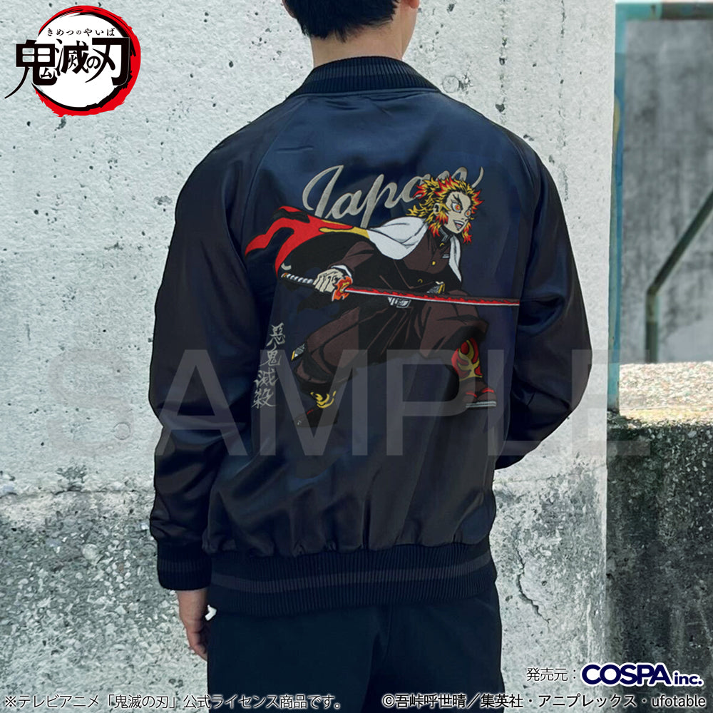 突出人物的刺繡設計具有復古味道,與鬼之刃的世界觀相吻合。筆直的 "JAPAN "字母也是 Sukajan 的典型設計。