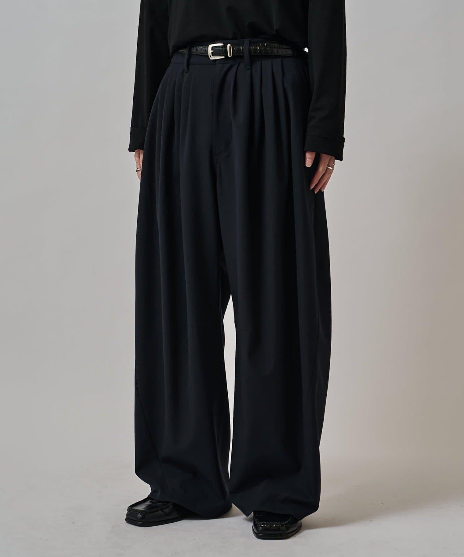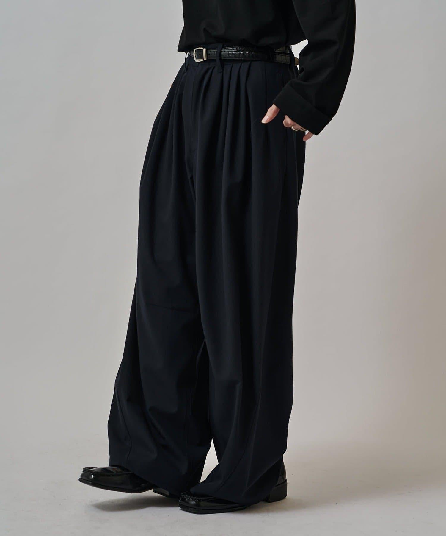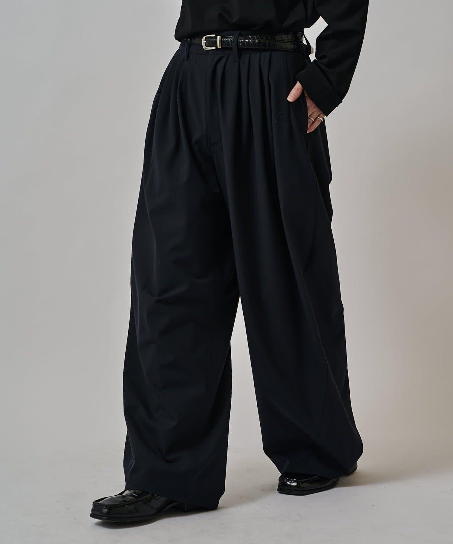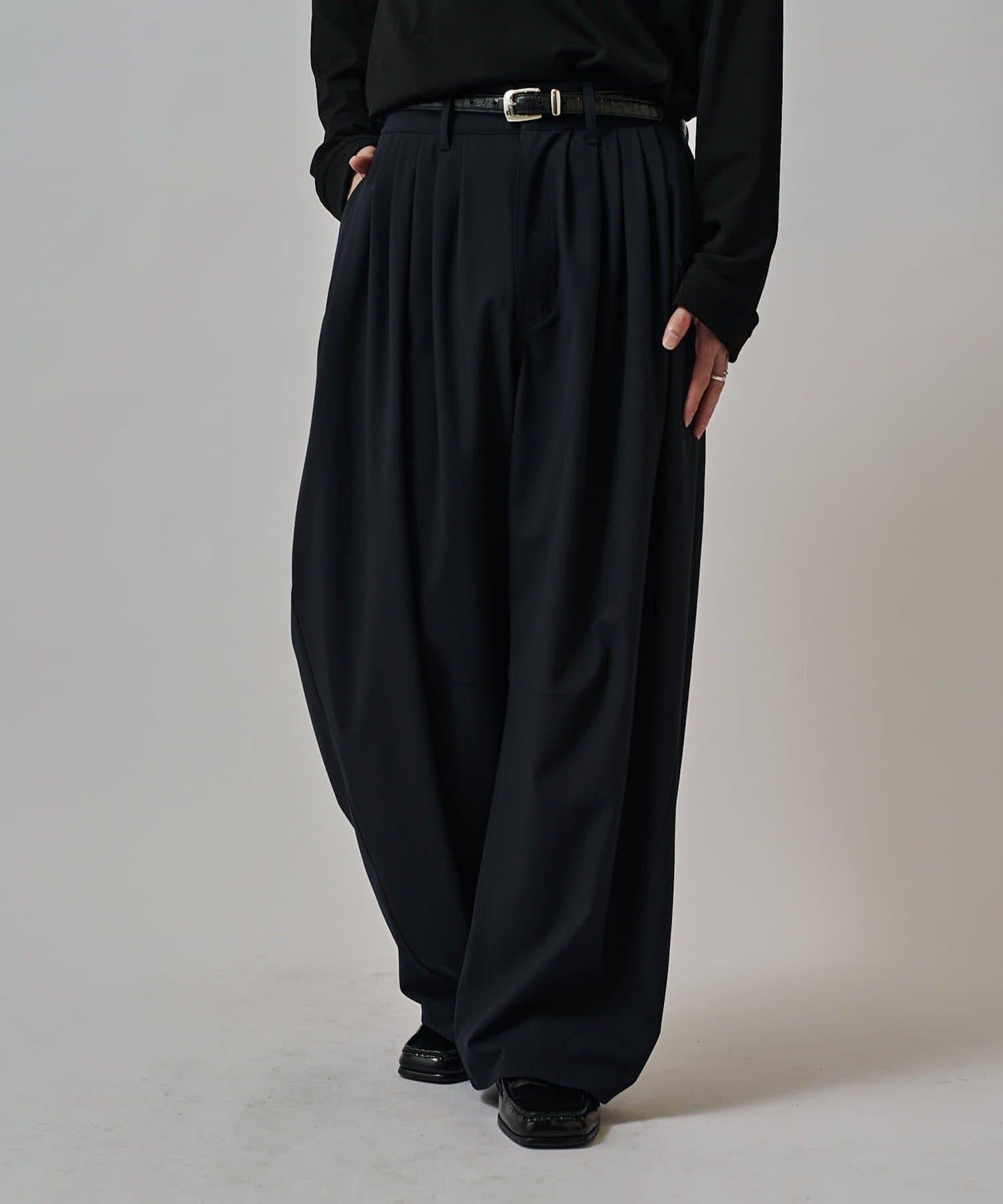 正如 "Oni Tuck "這個名字所暗示的那樣,與普通褲子相比,這款褲子的褶襉數量有所增加,從而賦予了褲子獨特的體積感。