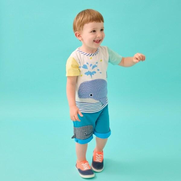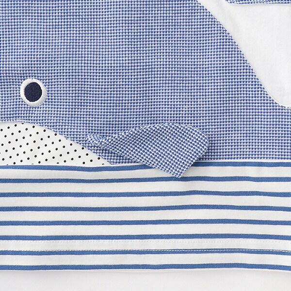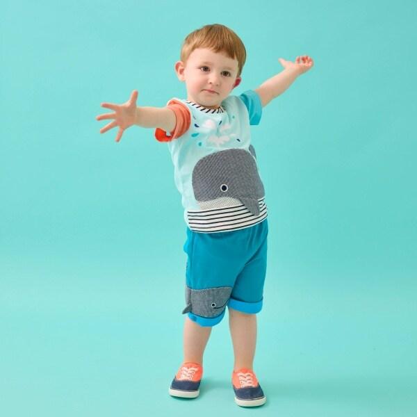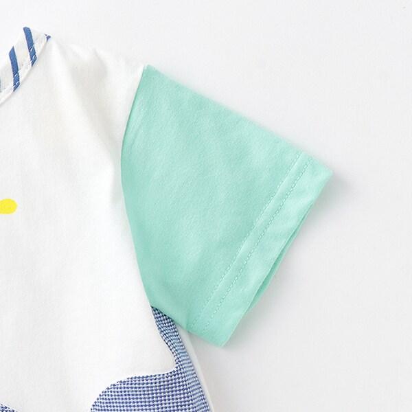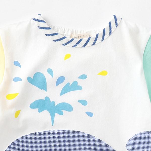 左右兩個袖子以顏色區分,設計成嬰兒歡快的圖案。