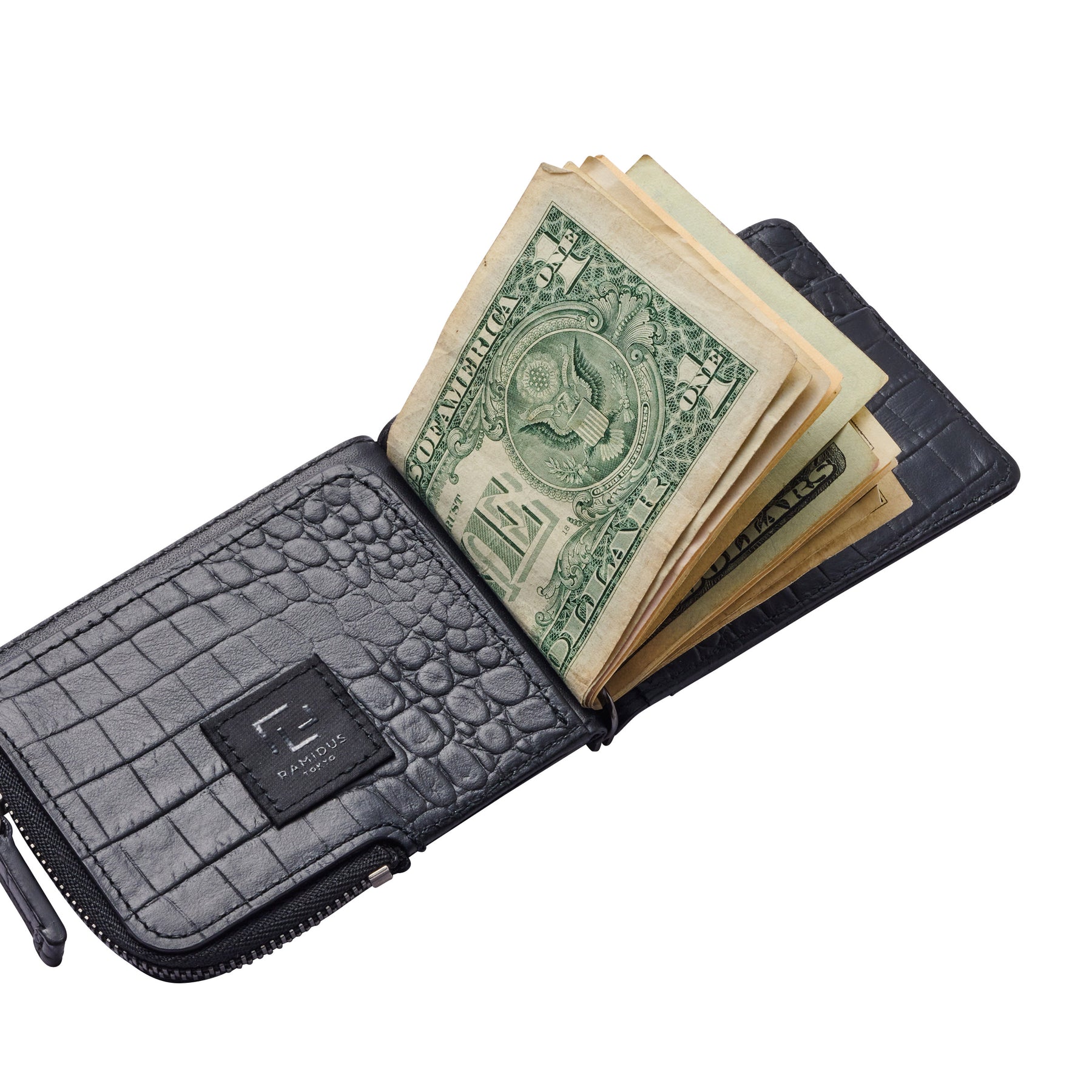 這款錢夾設計精巧,形狀適合紙幣大小。除紙幣外,還配有一個卡片隔層和一個拉鍊零錢袋。品牌徽標僅置於內側,追求皮革質感和簡約風格。包身輪廓圓潤,邊緣平滑。