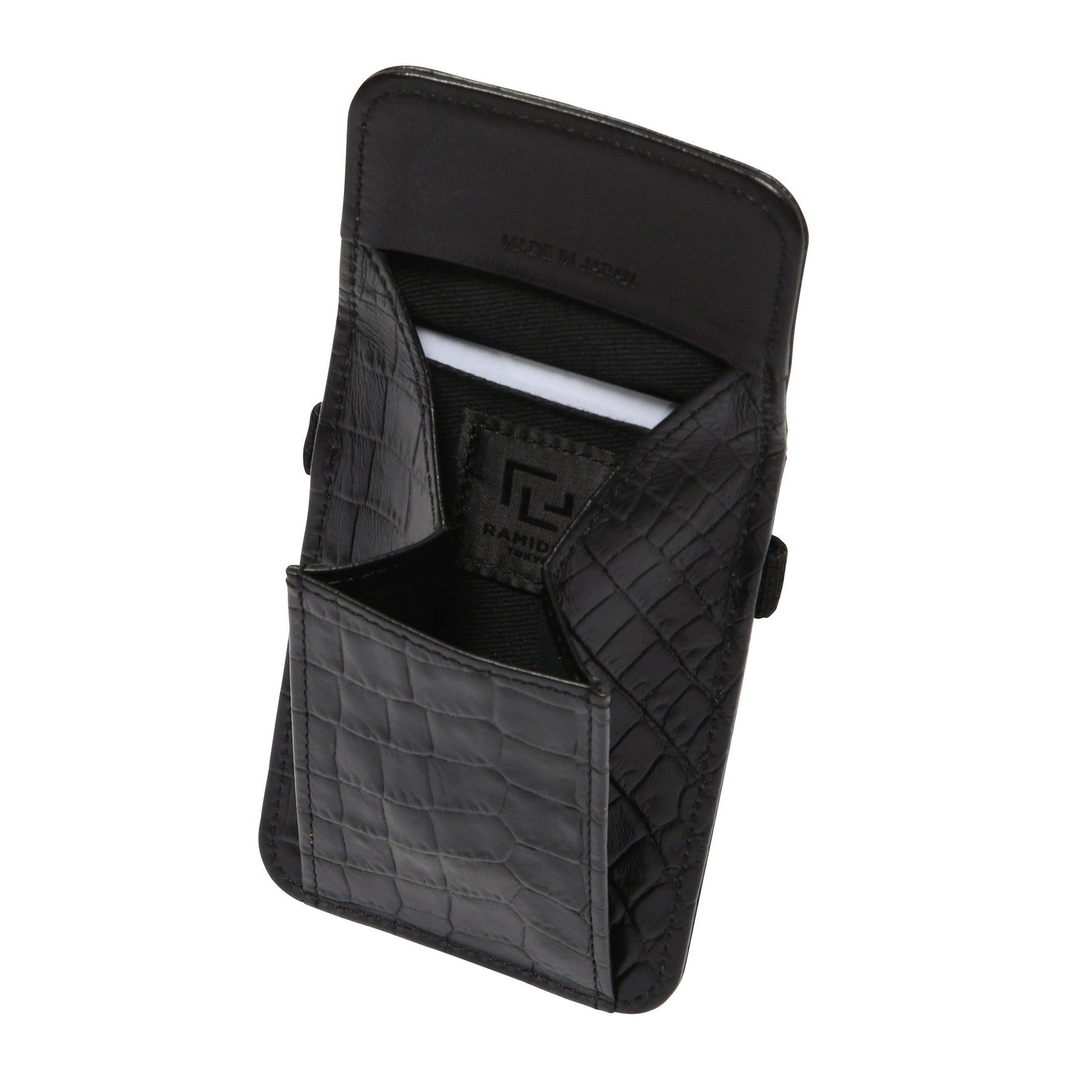 主體由 LWG 環保認證銀級製革廠提供的環保型無鉻無金屬鞣製意大利皮革製成。高品質皮革製成的零錢包,帶有精美的鱷魚紋。結構緊湊,卡片大小,除了主盒形零錢隔層外,還有三個卡片隔層。為了追求皮革的質感和簡約,品牌標誌僅置於內側。設計的特點是外觀圓潤,邊緣平滑。