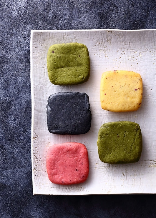 Wasanbon:準巧克力(植物油和脂肪,糖,全脂奶粉,乳糖,可可脂),紅薯,全蛋,海藻糖,纖維素,乳化劑,調味劑 / 黑芝麻:準巧克力(植物油和脂肪,糖,全脂奶粉,乳糖,可可脂),紅薯,全蛋,芝麻,海藻糖,纖維素,乳化劑,植物炭粉著色劑,調味劑/抹茶:準巧克力(植物脂肪,糖,全脂奶粉,乳糖,可可脂),紅薯,全蛋,抹茶加工產品(抹茶,小球藻),海藻糖,纖維素,乳化劑,調味劑/草莓:準巧克力(植物脂肪,糖,全脂奶粉,糖,可可脂),紅薯,全蛋、草莓醬、海藻糖、纖維素、色素(lac)、乳化劑、酸味劑、調味劑(含有雞蛋、牛奶成分、芝麻和大豆)。