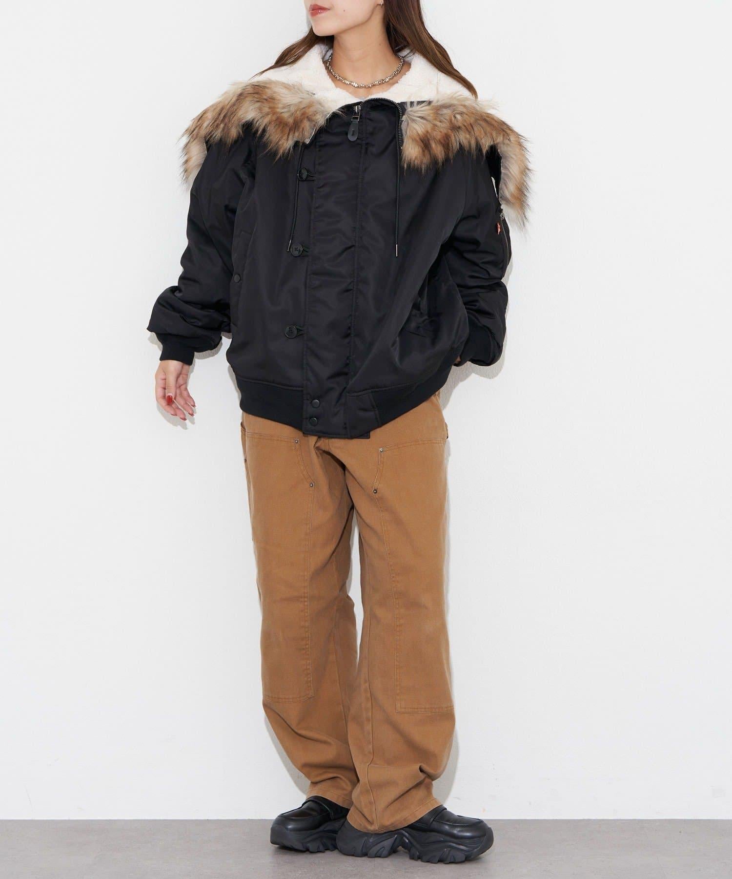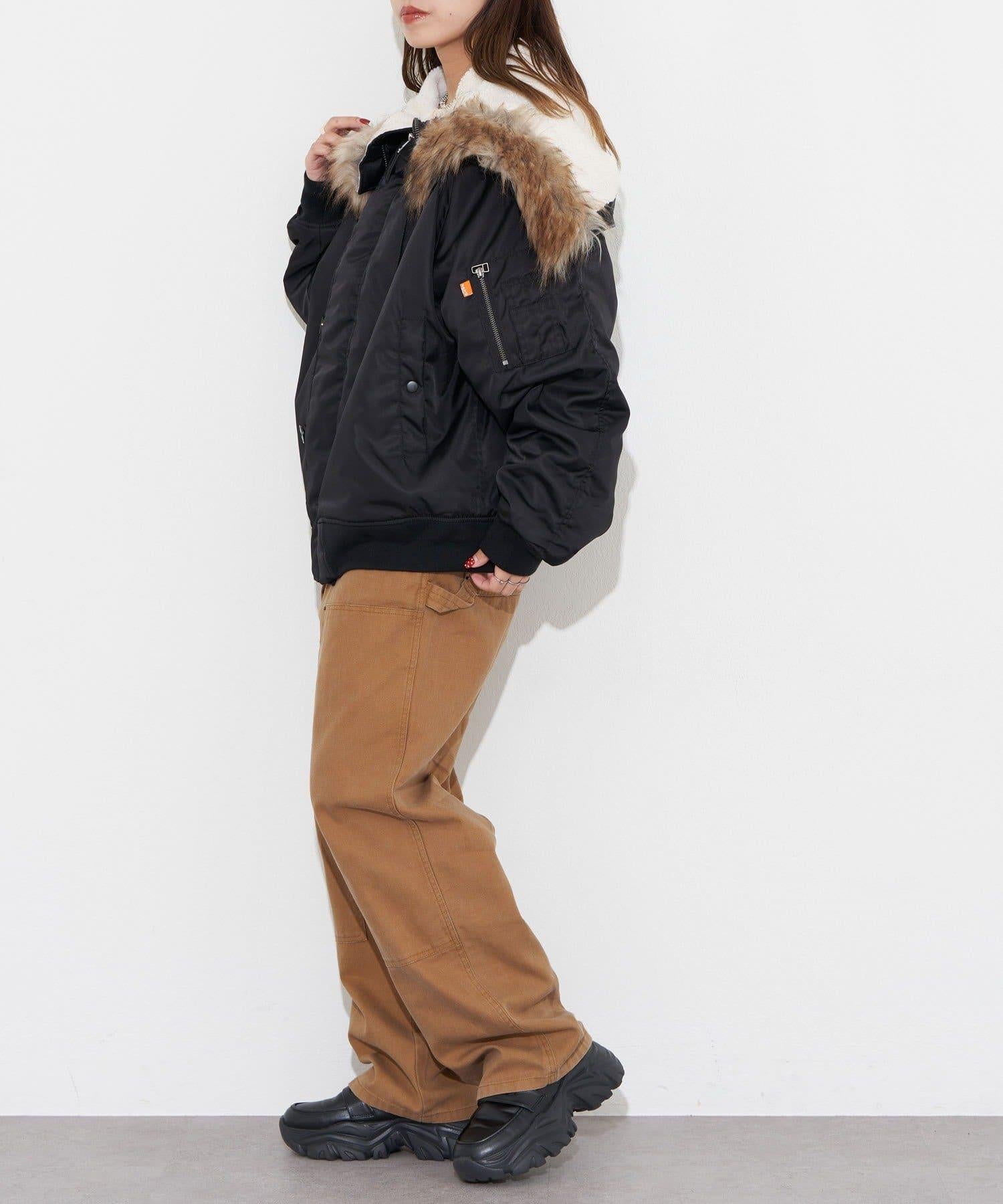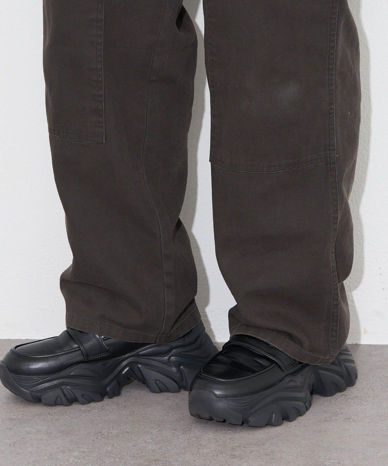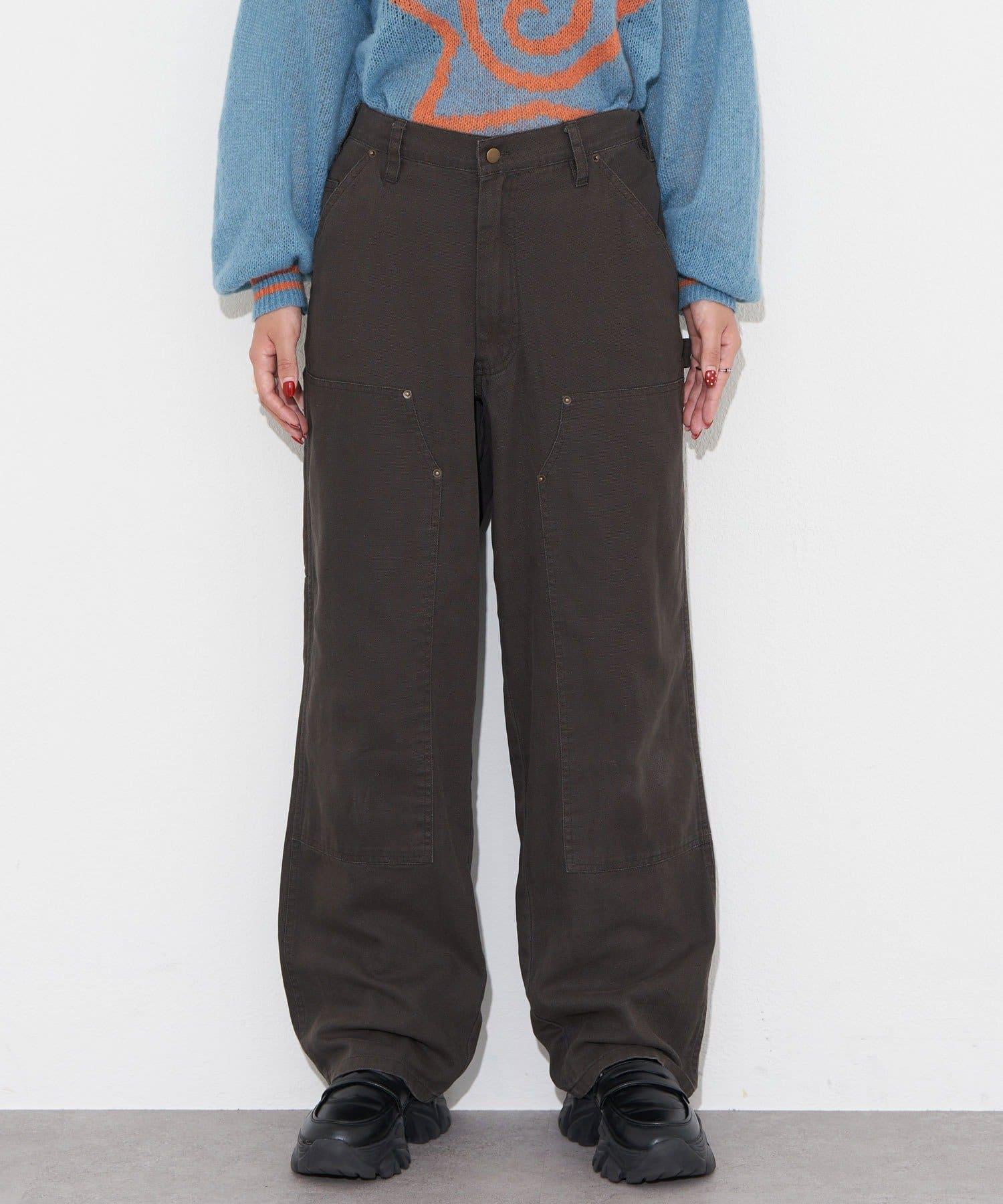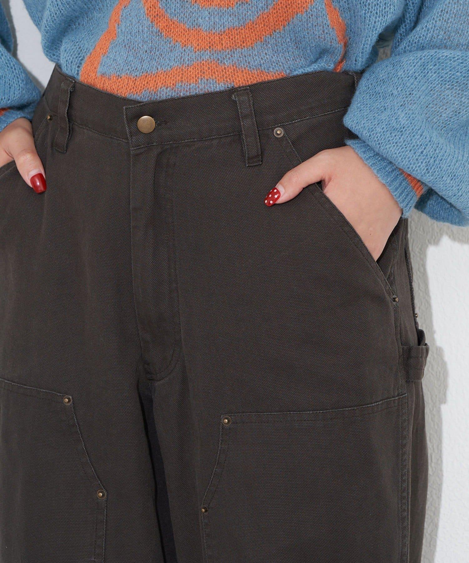 工裝風格的雙膝長褲,採用堅韌的鴨絨面料製成。