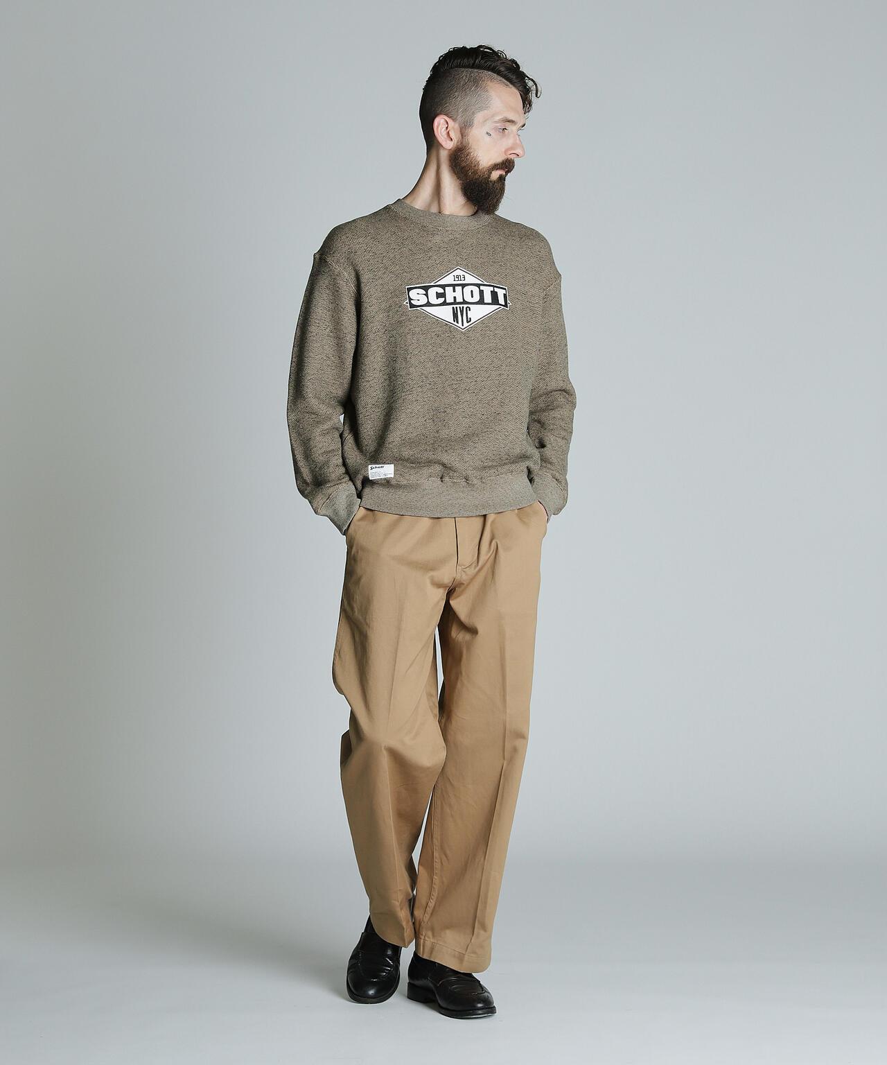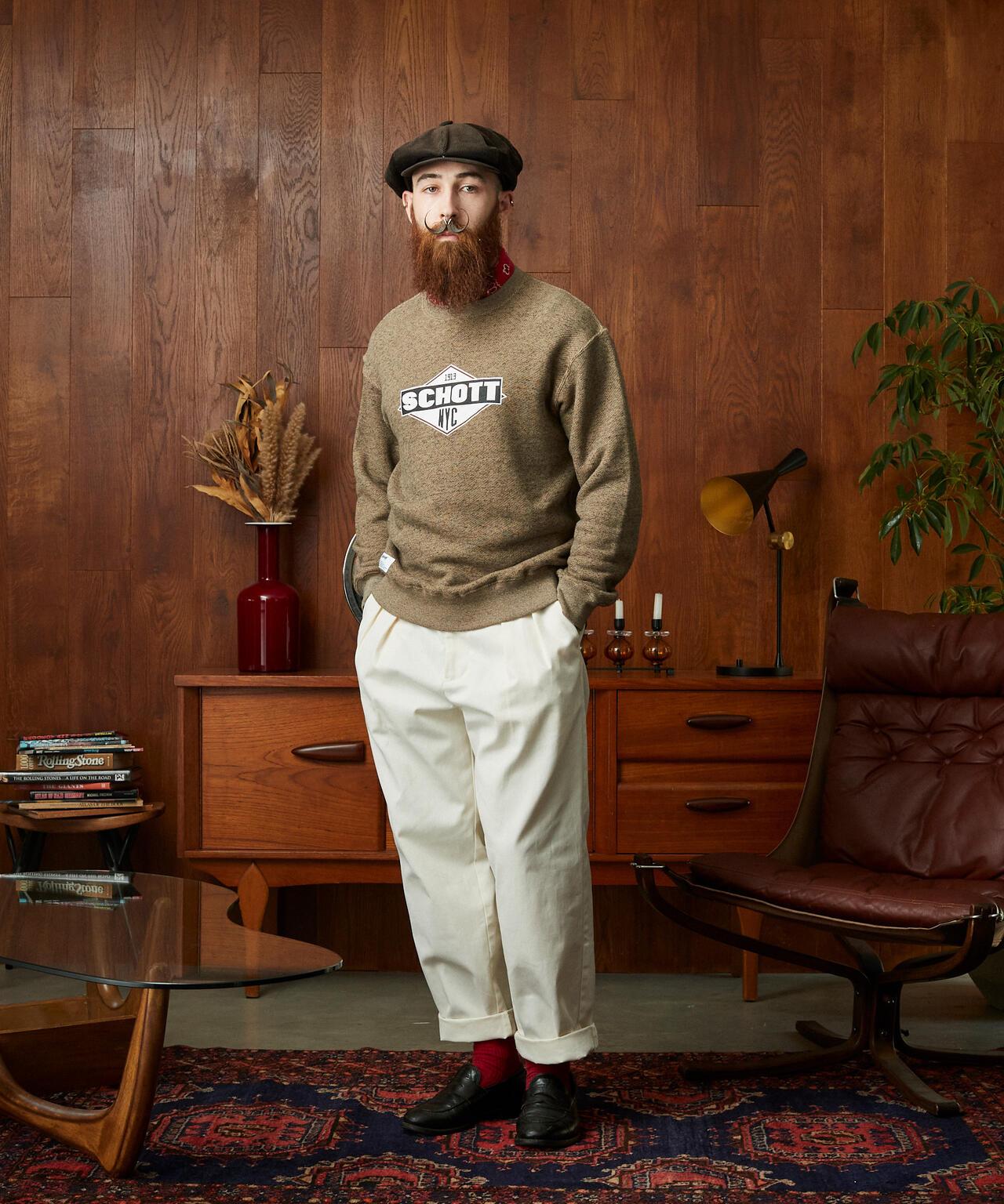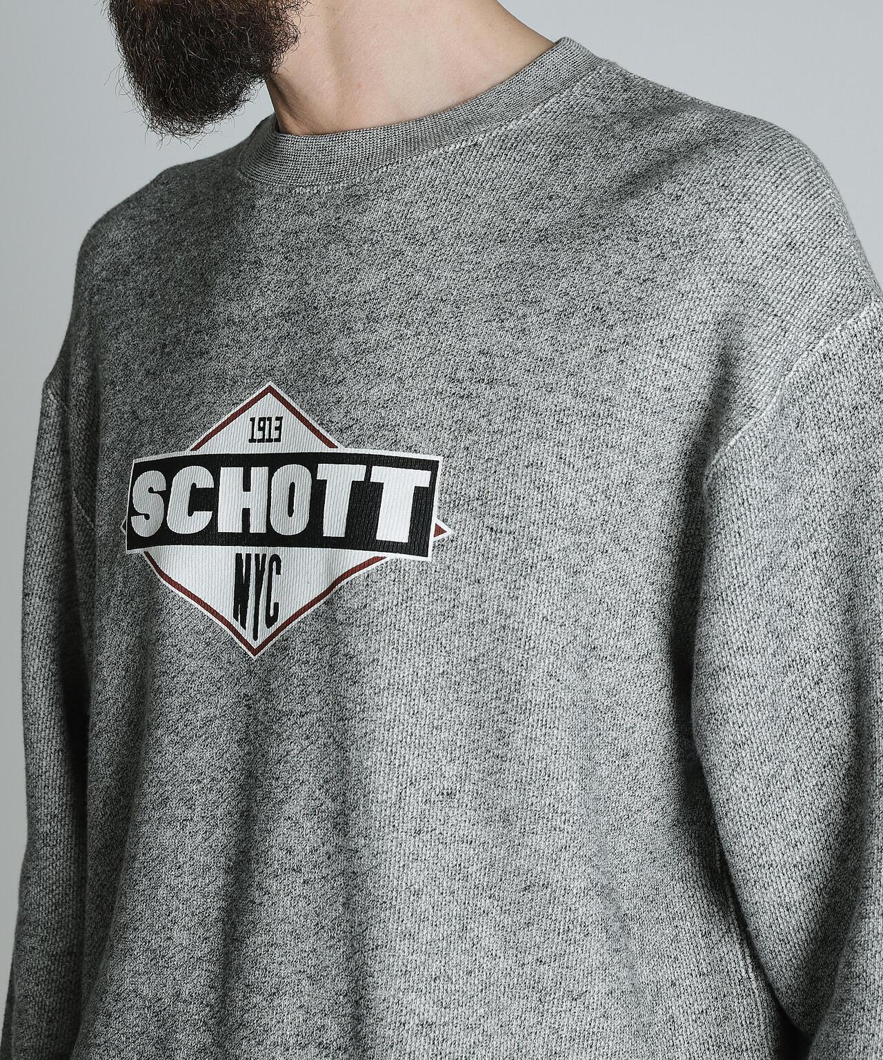 由於針織物表面的扭曲編織,這款運動衫具有獨特的芝麻和鹽的感覺。俗稱 "魔鬼背毛 "的超厚紗線襯裡將棉花的質感發揮得淋漓盡致。該產品有意採用橡膠印花,通過反覆穿著和洗滌,衣身和印花將融為一體,變幻出👍的產品。肖特的歷史可以說是騎手夾克的代名詞,1913 年由歐文-肖特(Irving Schott)和傑克-肖特(Jack Schott)兄弟在紐約創立。公司👍初是一家生產雨衣的工廠,1928 年推出了世界上👍件前拉鍊騎手夾克--肖特騎手夾克。