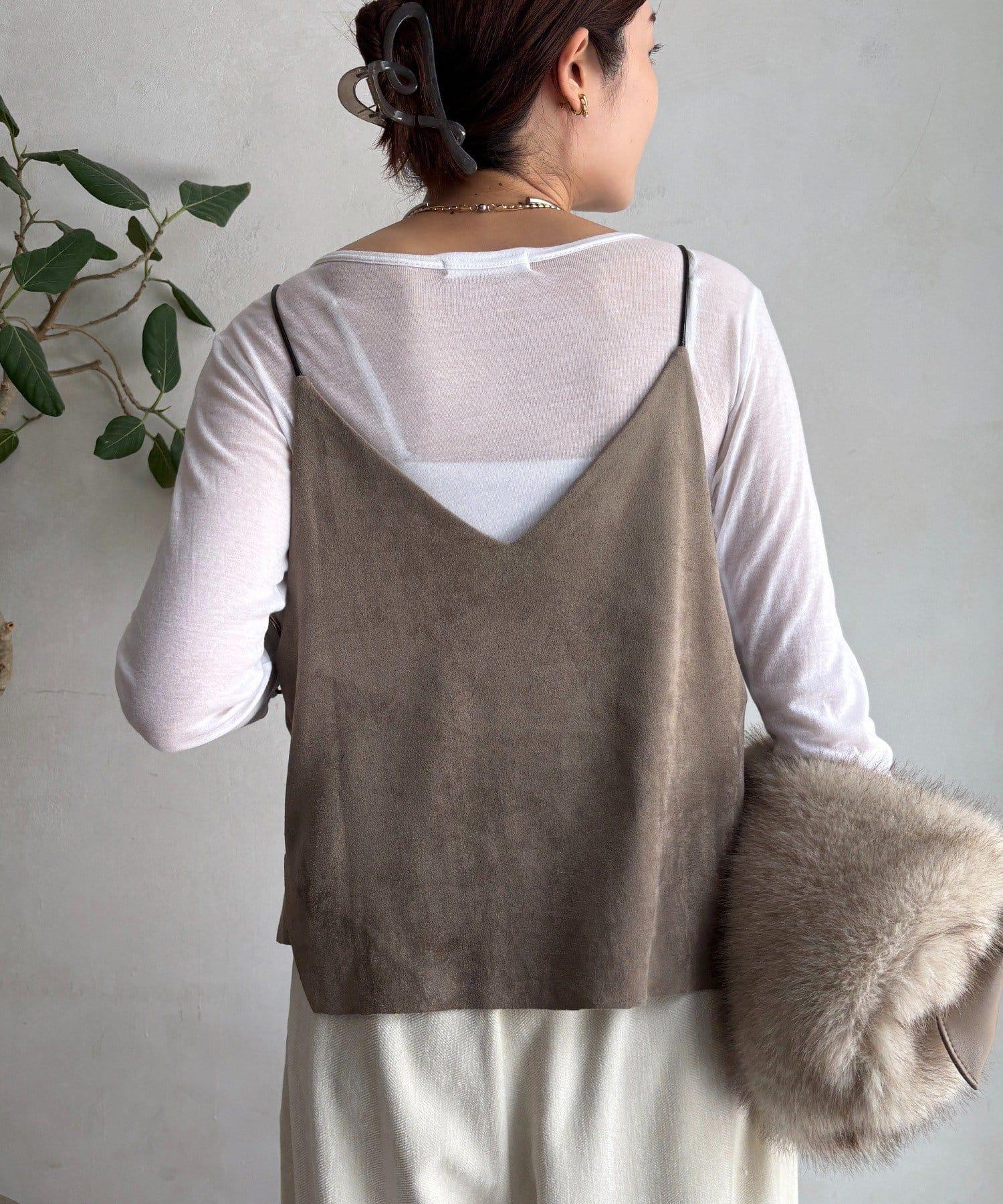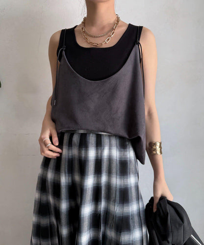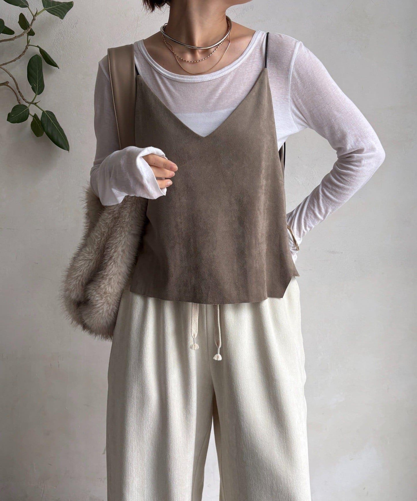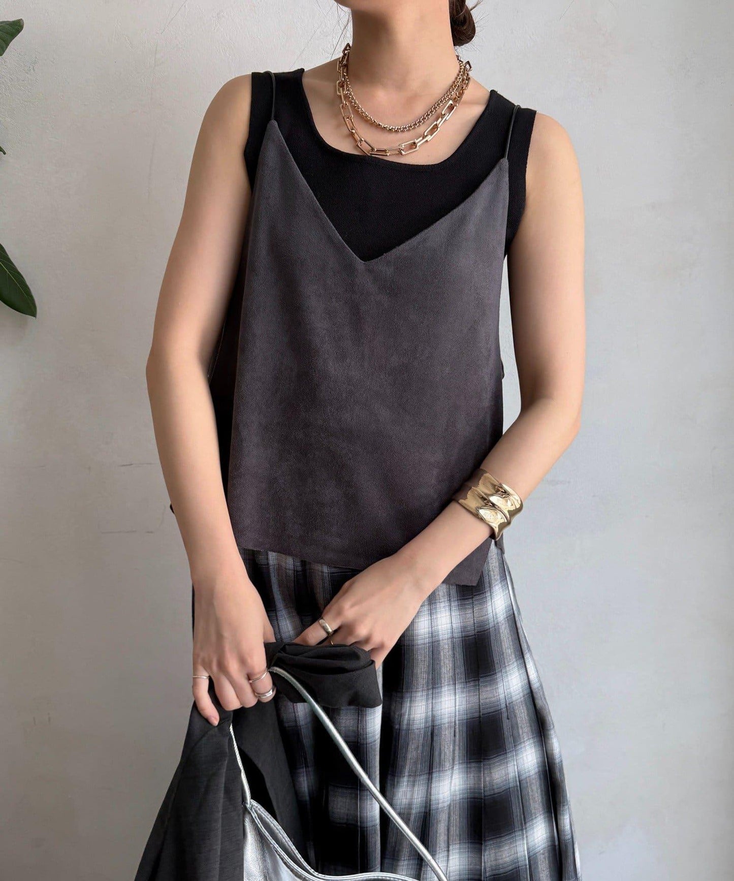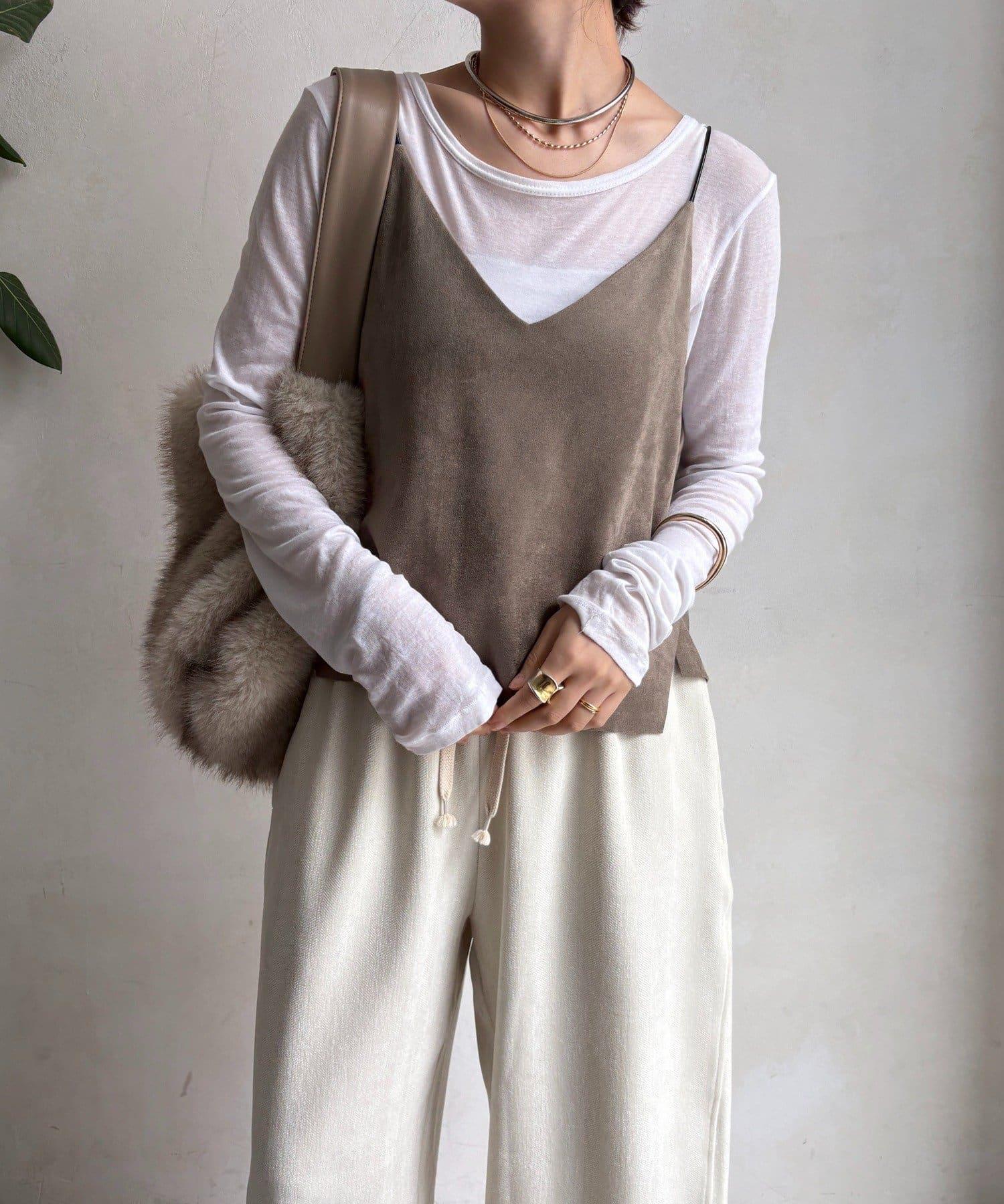 麂皮半身裙,只需在普通上衣外面疊穿,就能讓層次感更加豐富。