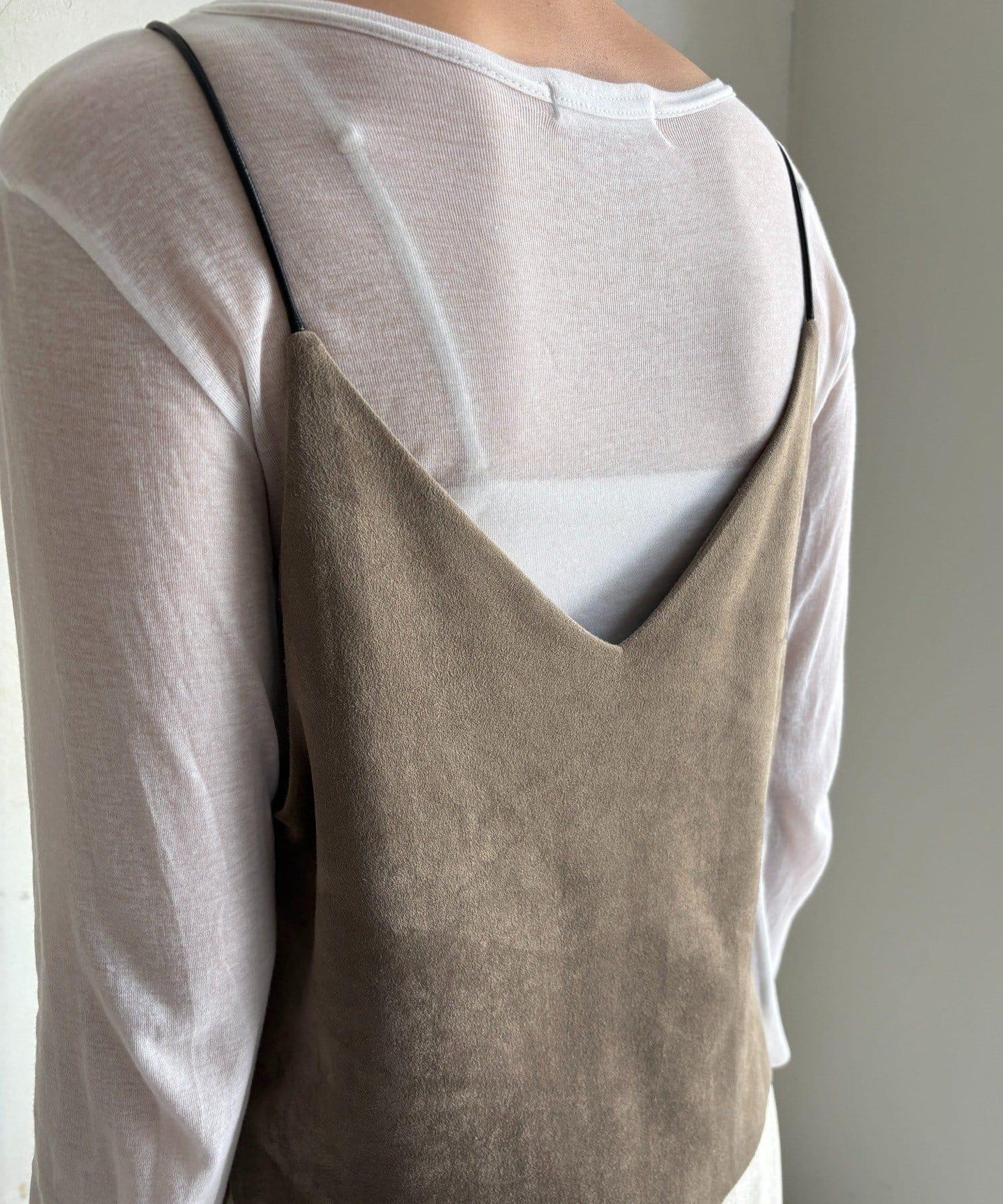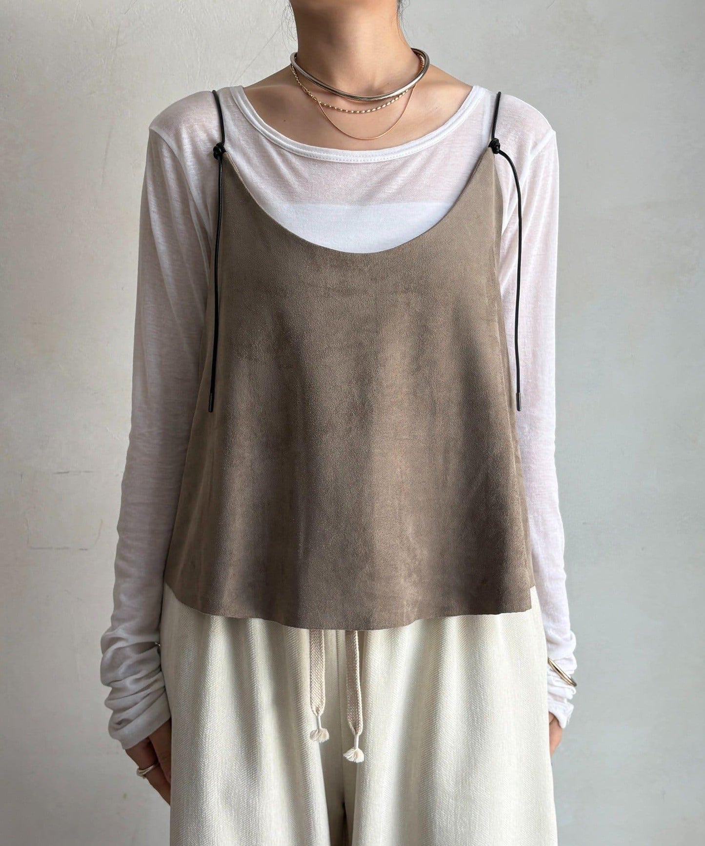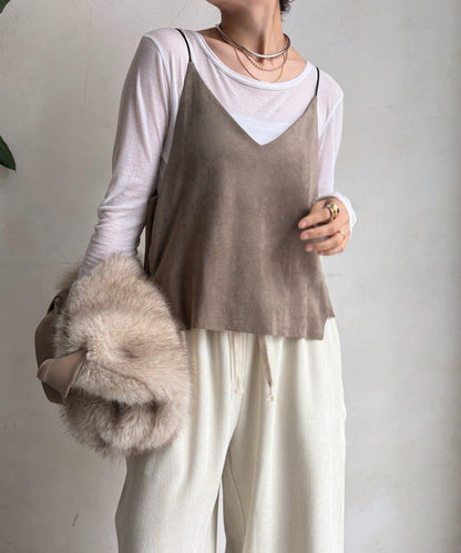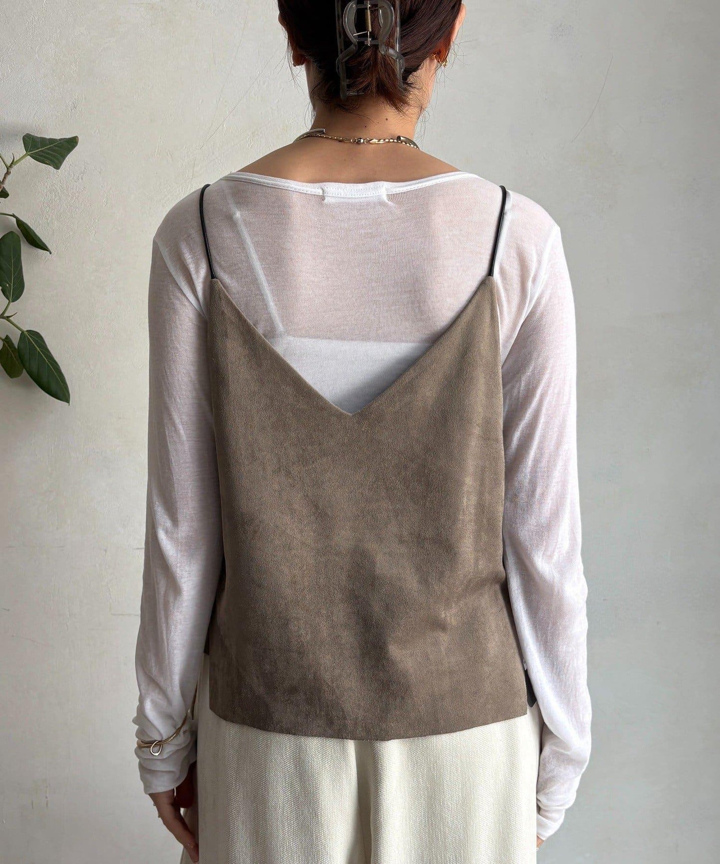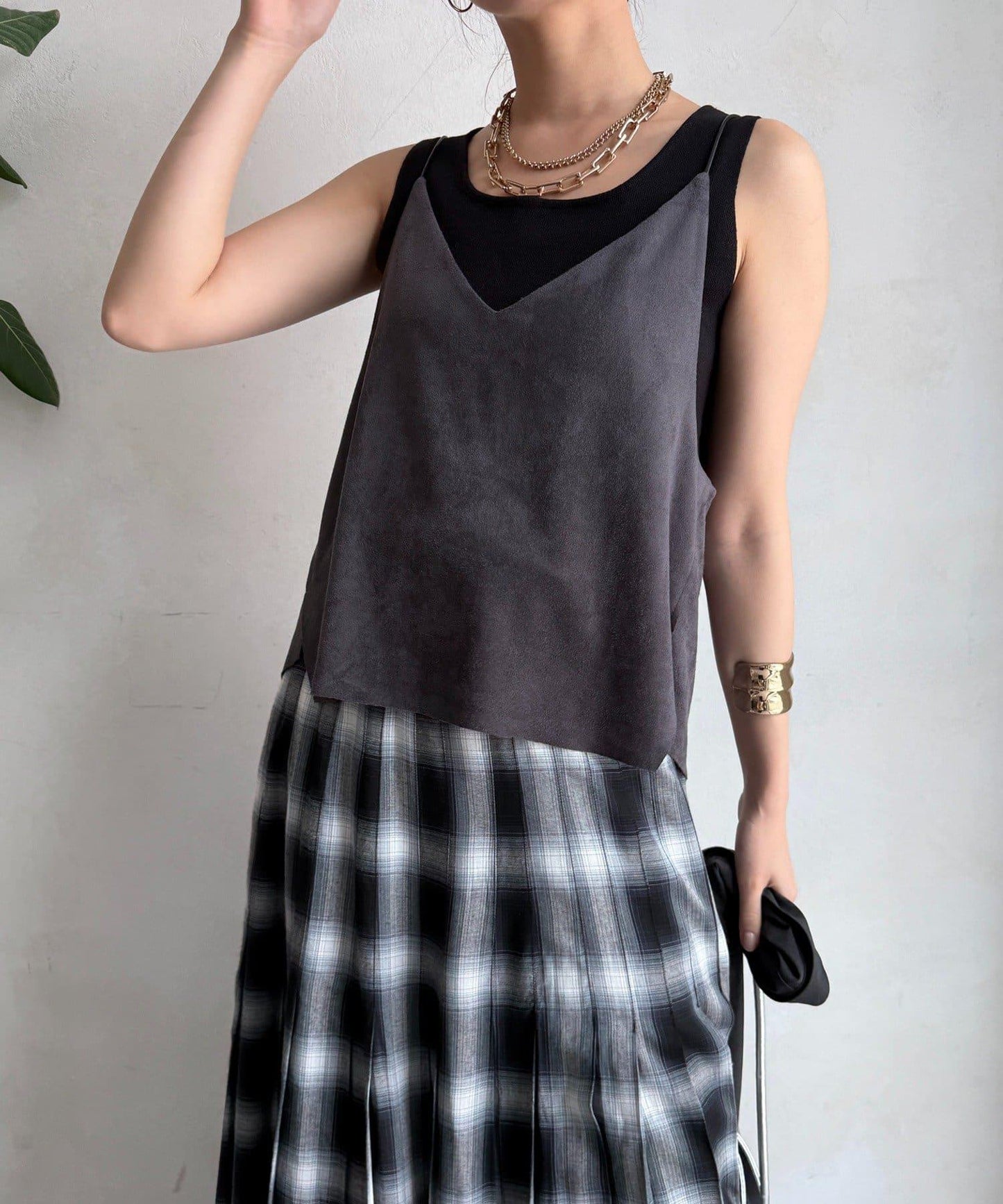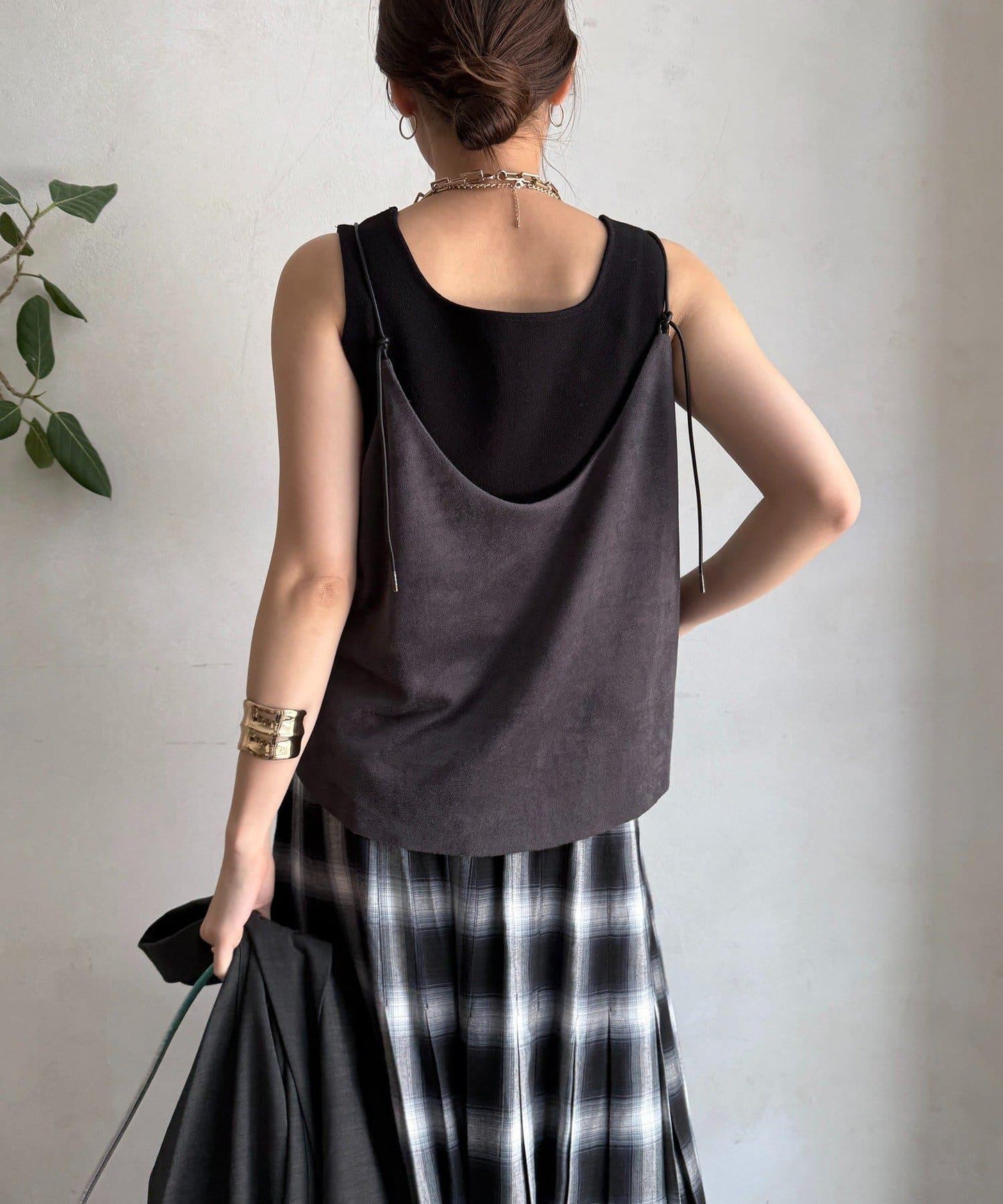 麂皮半身裙,只需在普通上衣外面疊穿,就能讓層次感更加豐富。
