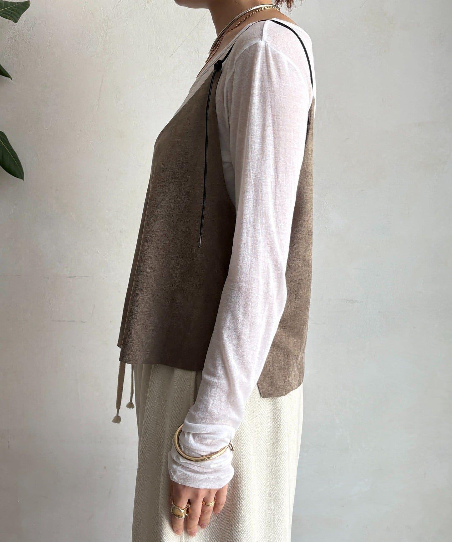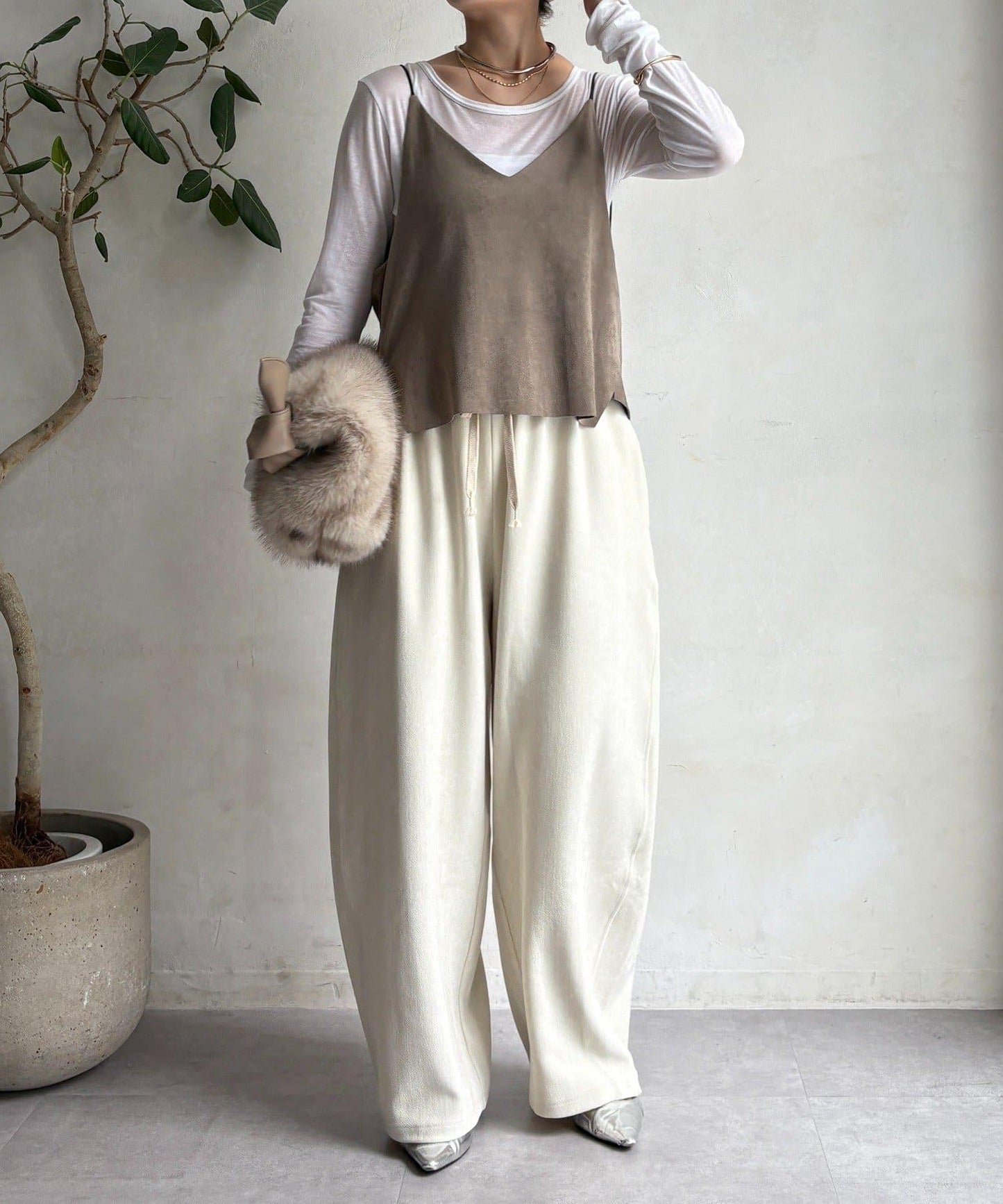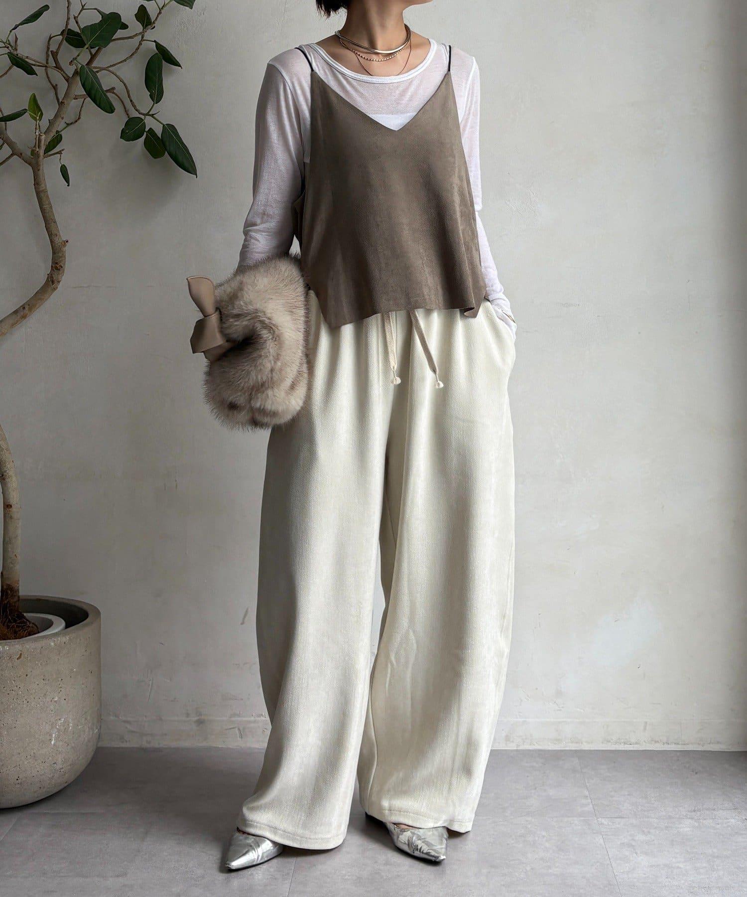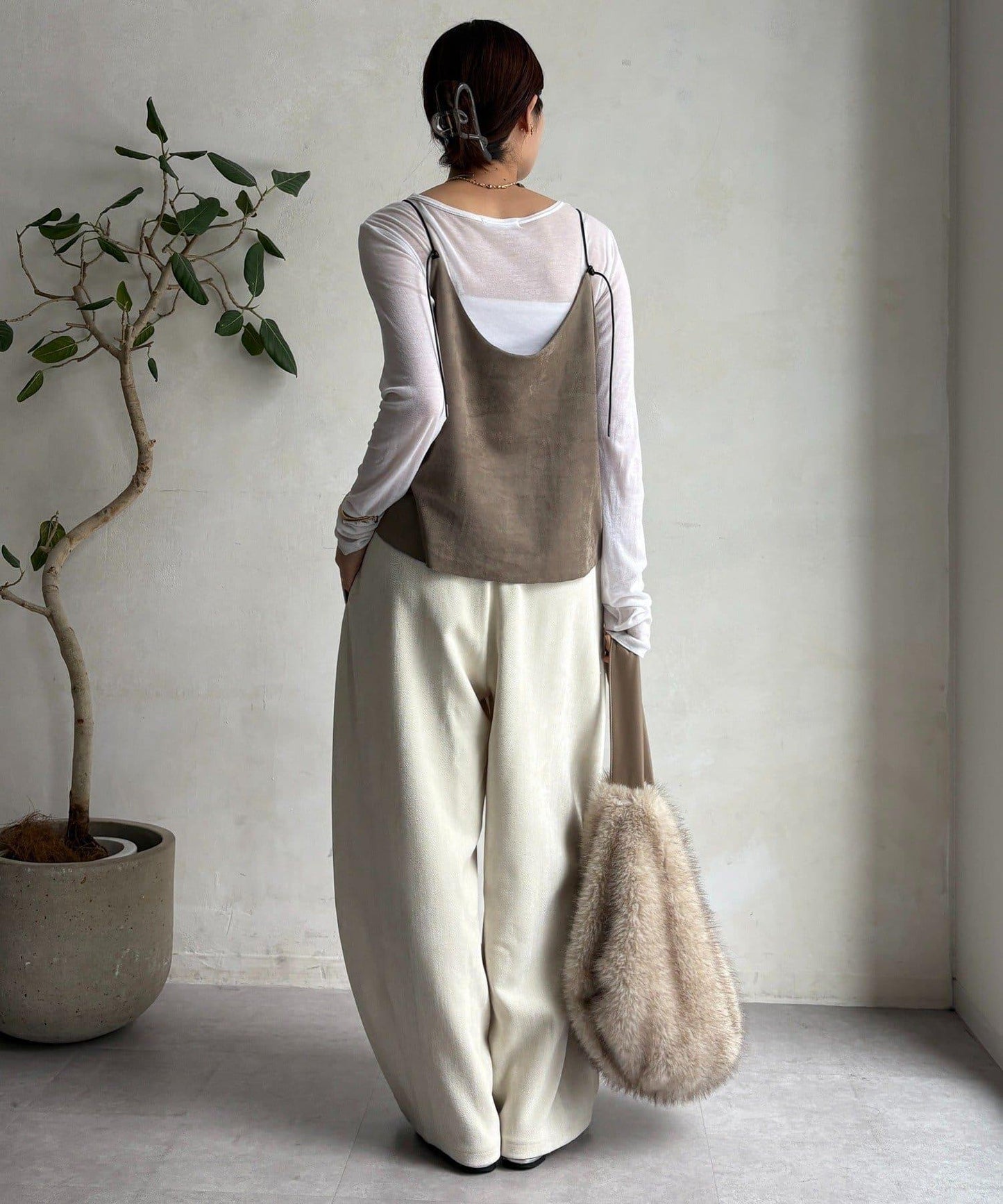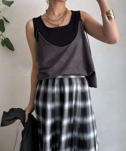 麂皮半身裙,只需在普通上衣外面疊穿,就能讓層次感更加豐富。