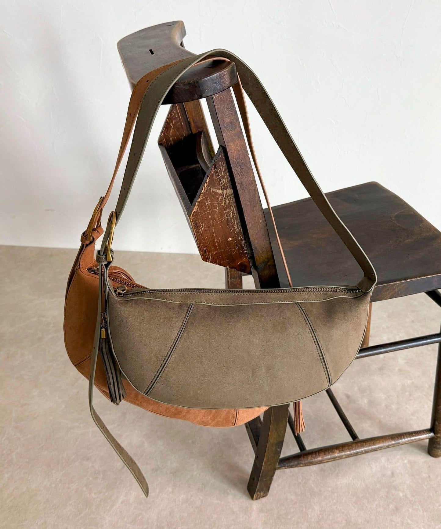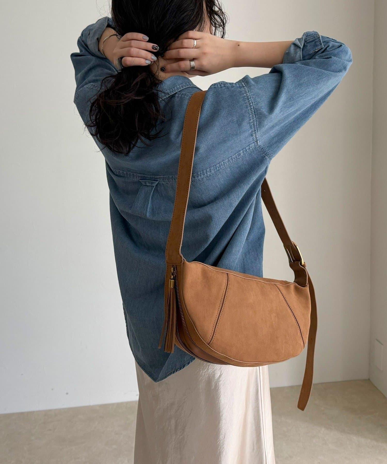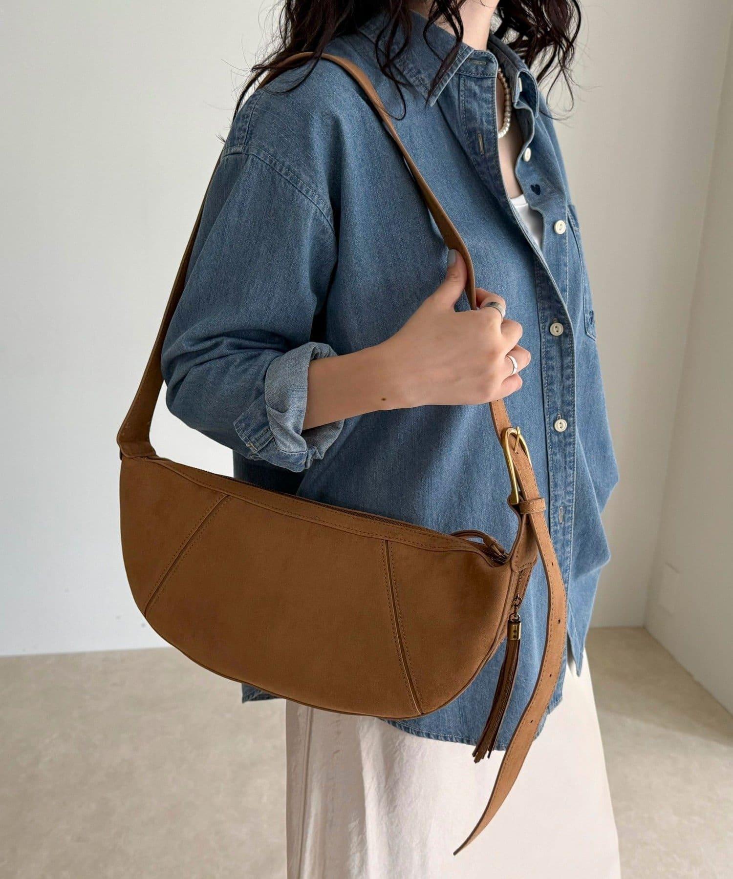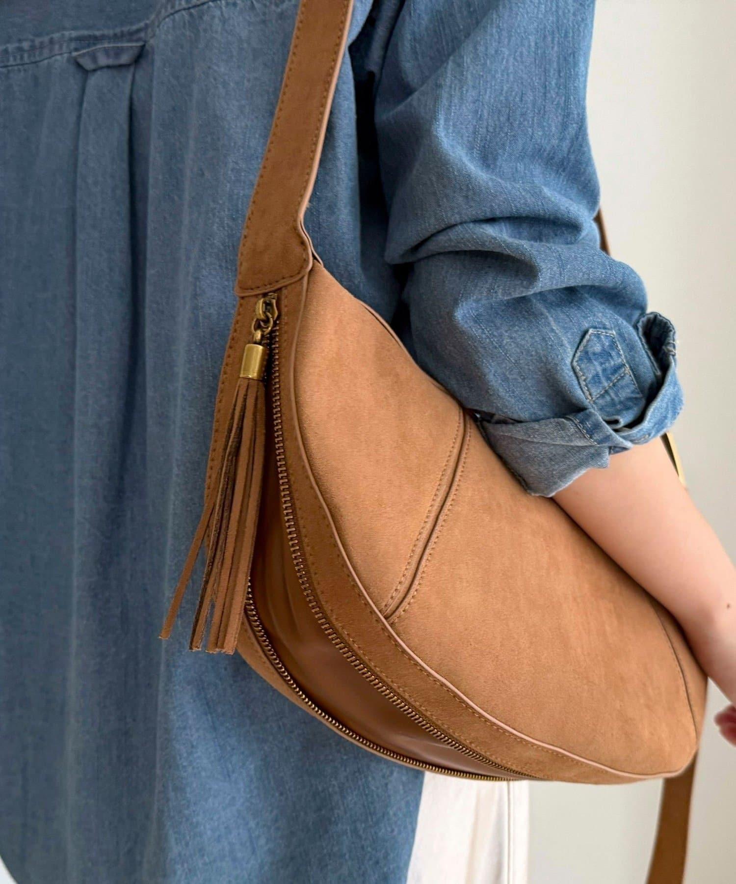這款單肩包採用柔軟的麂皮材質製成,既優雅又溫暖。
