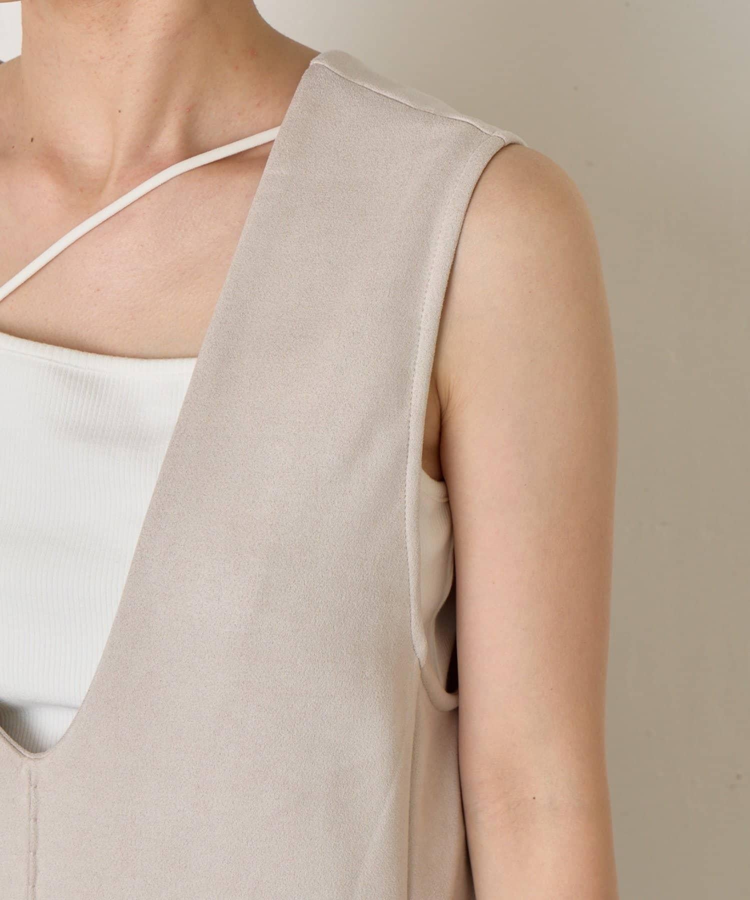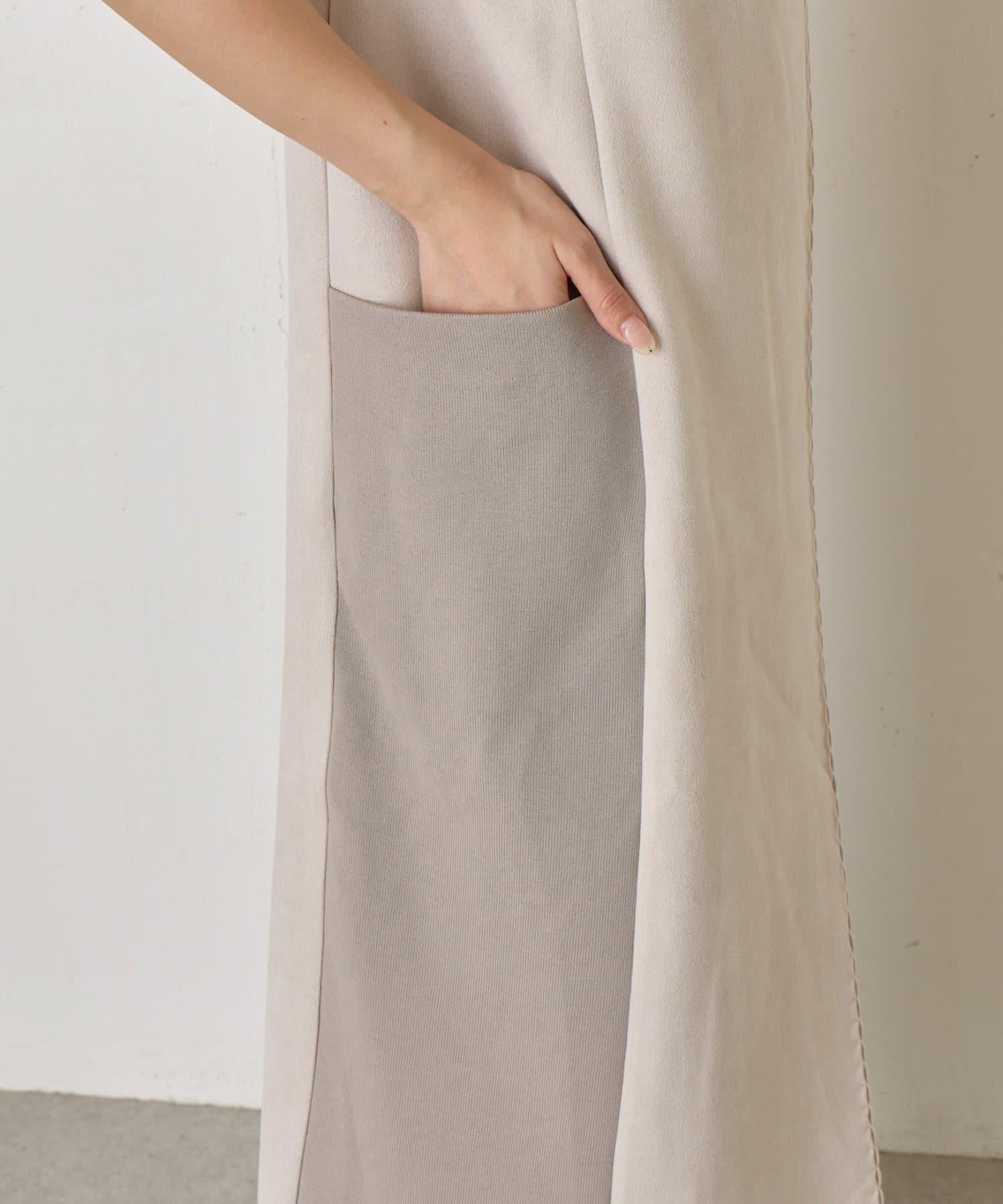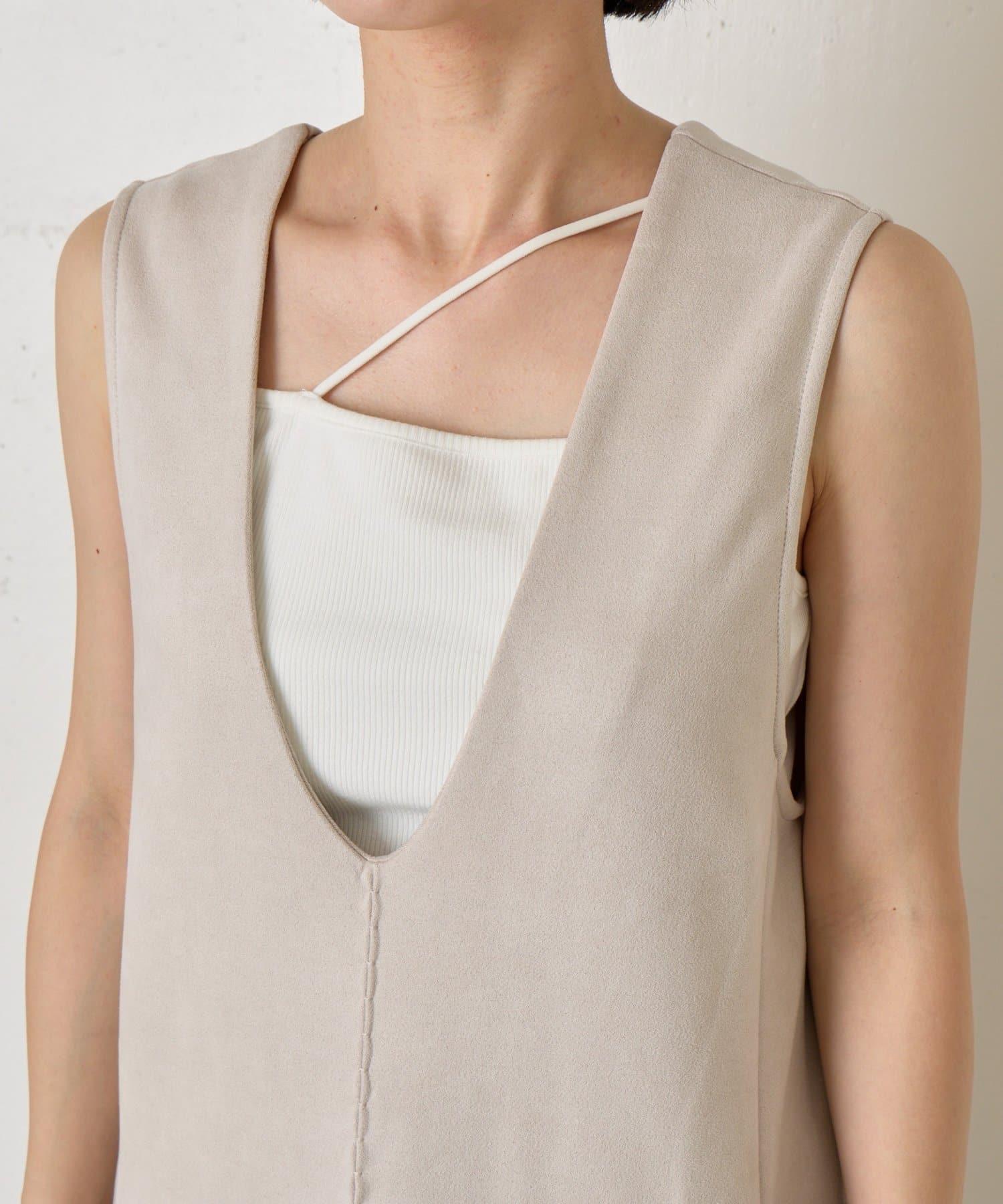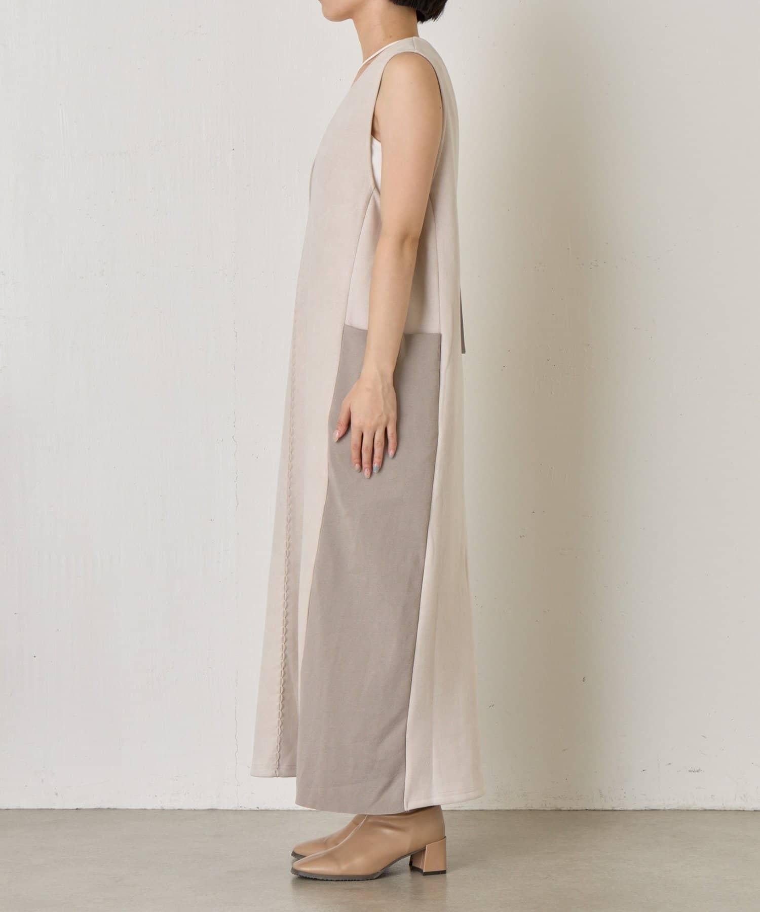 麂皮拼接羅紋吊帶連衣裙
