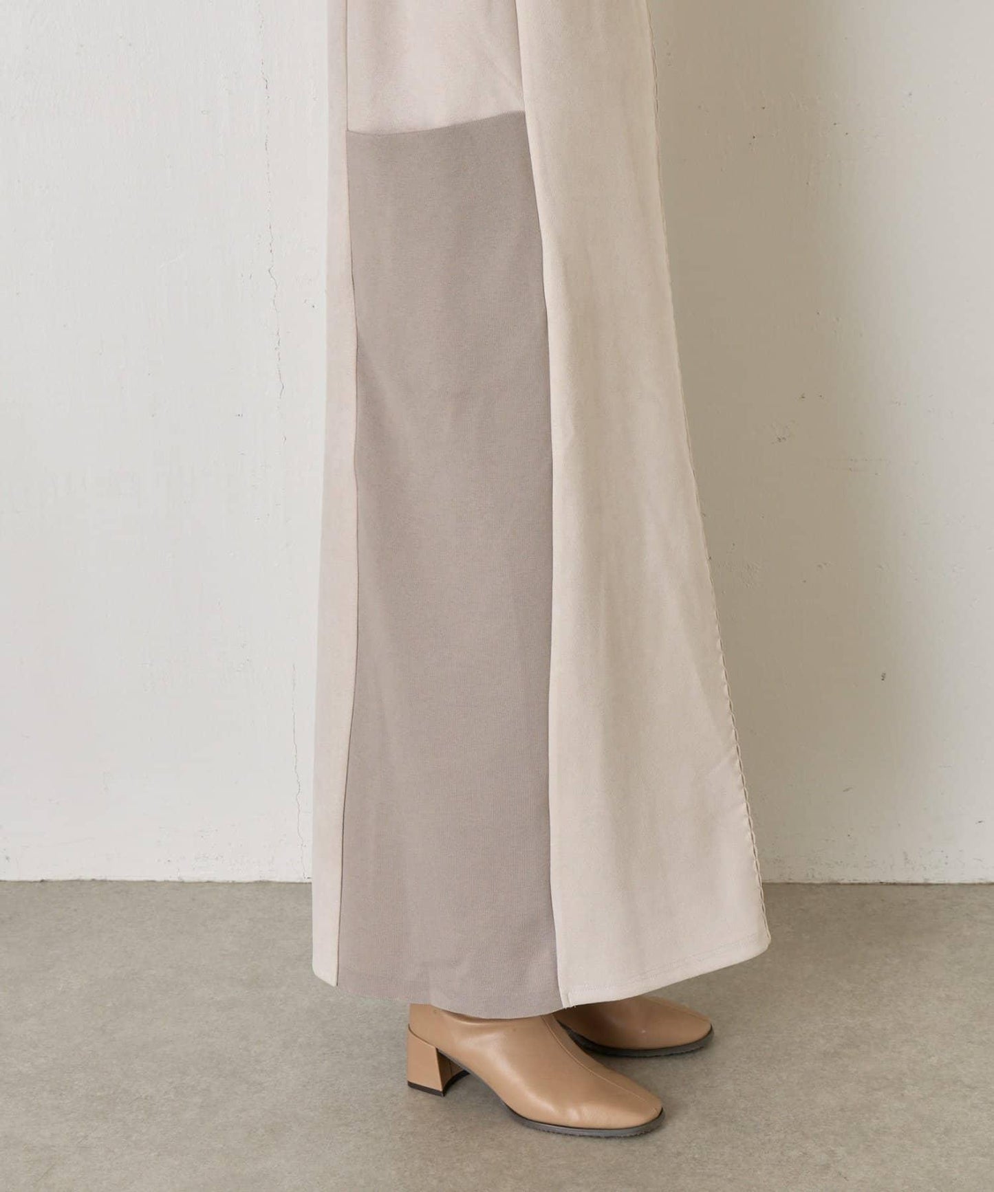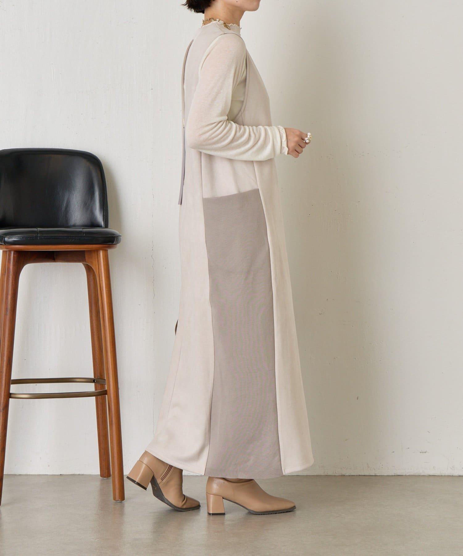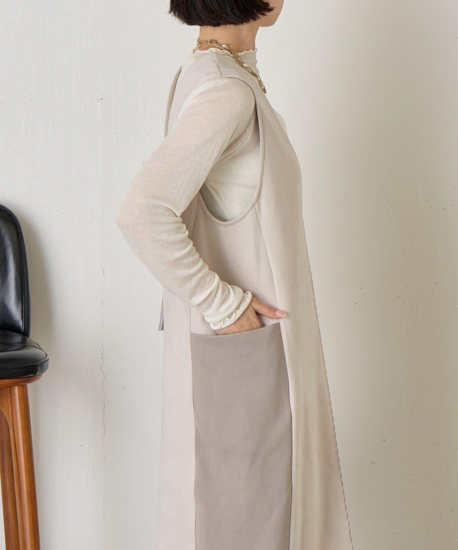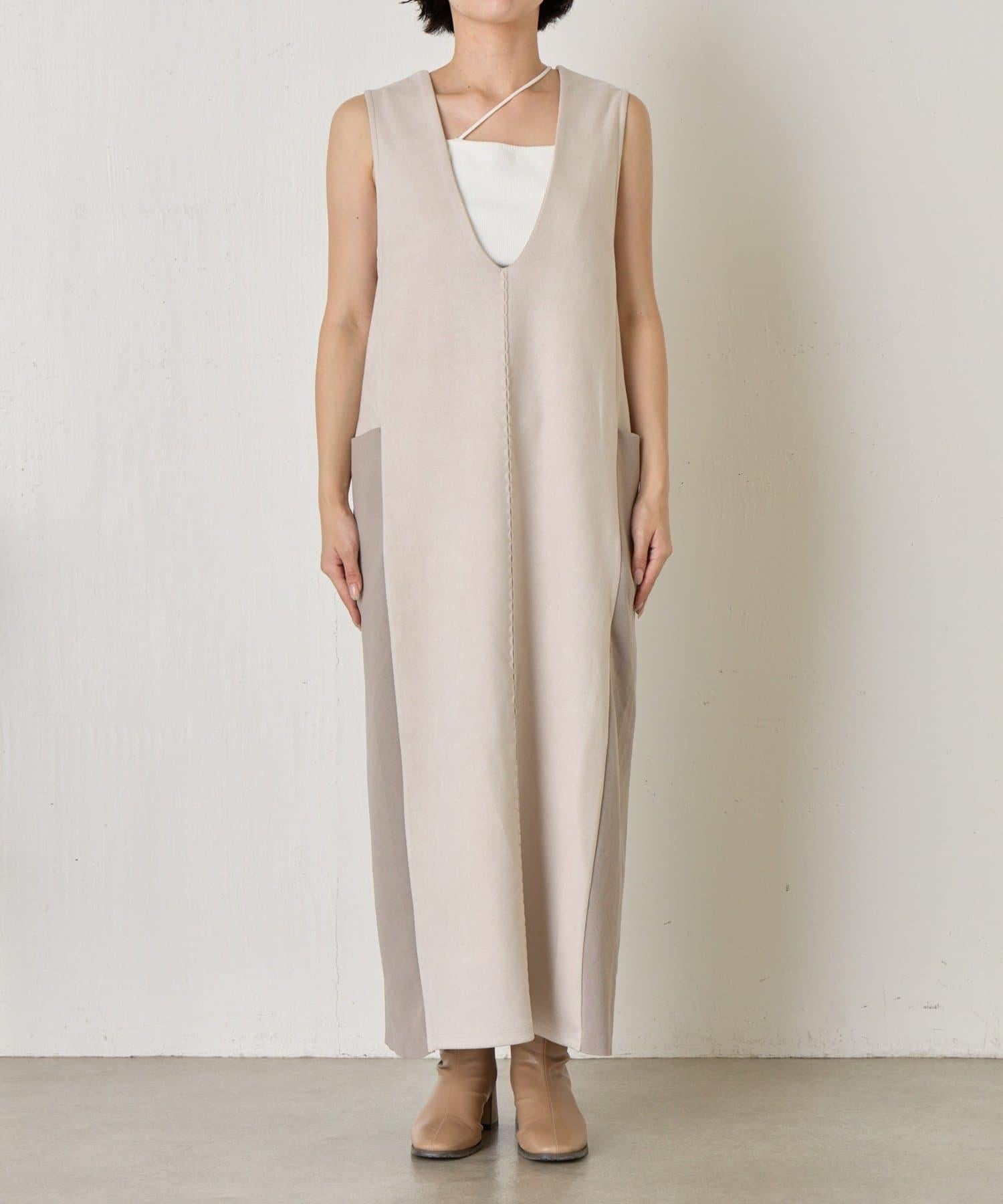 麂皮拼接羅紋吊帶連衣裙