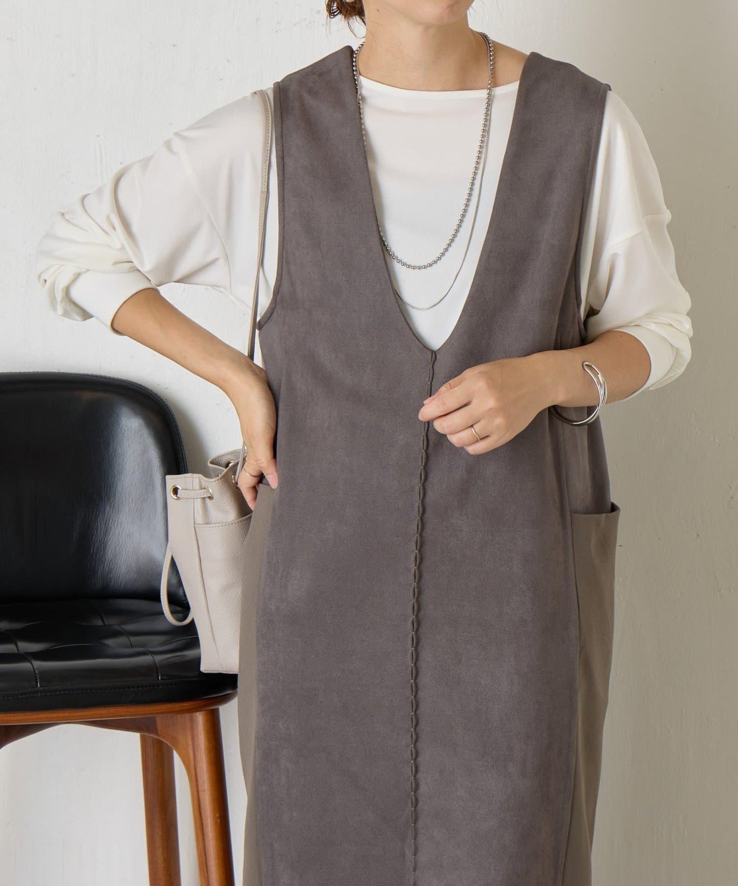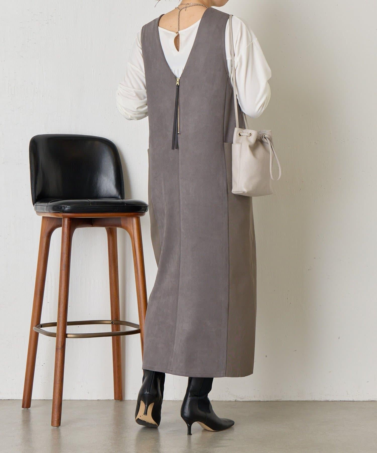 這款連衣裙採用麂皮絨面料,增強了季節感。