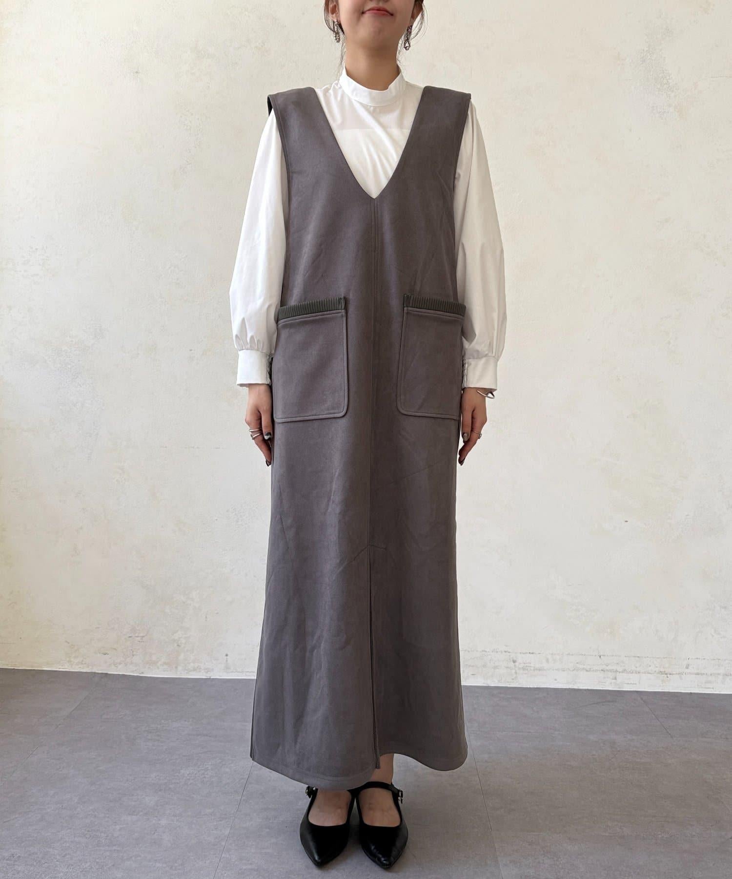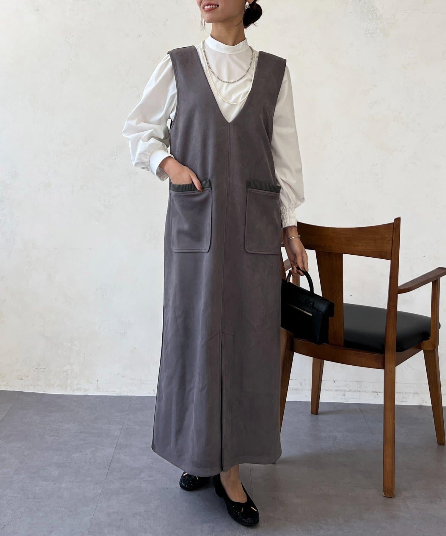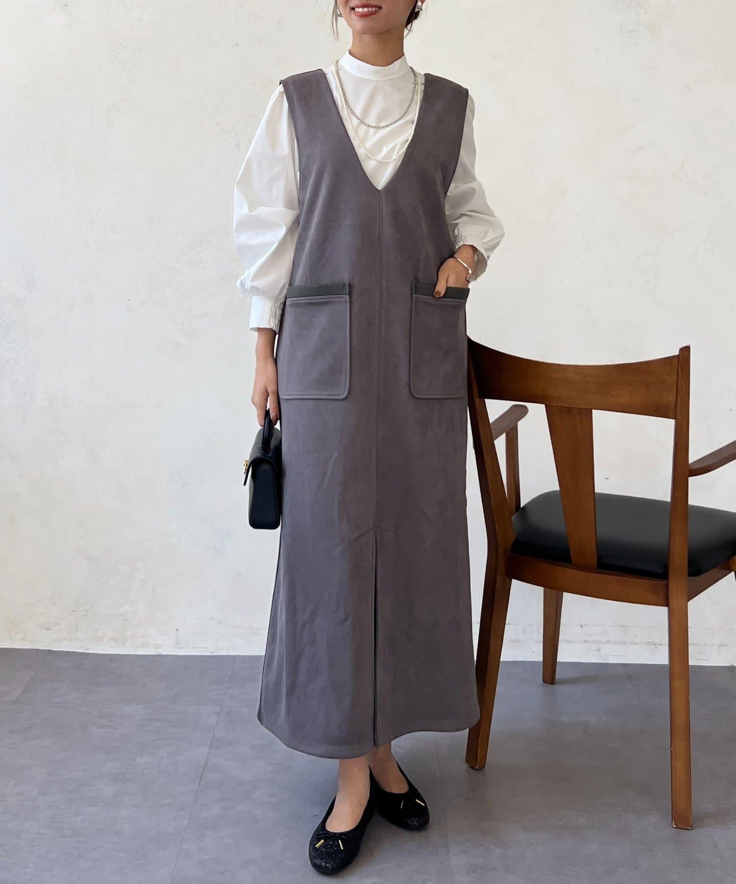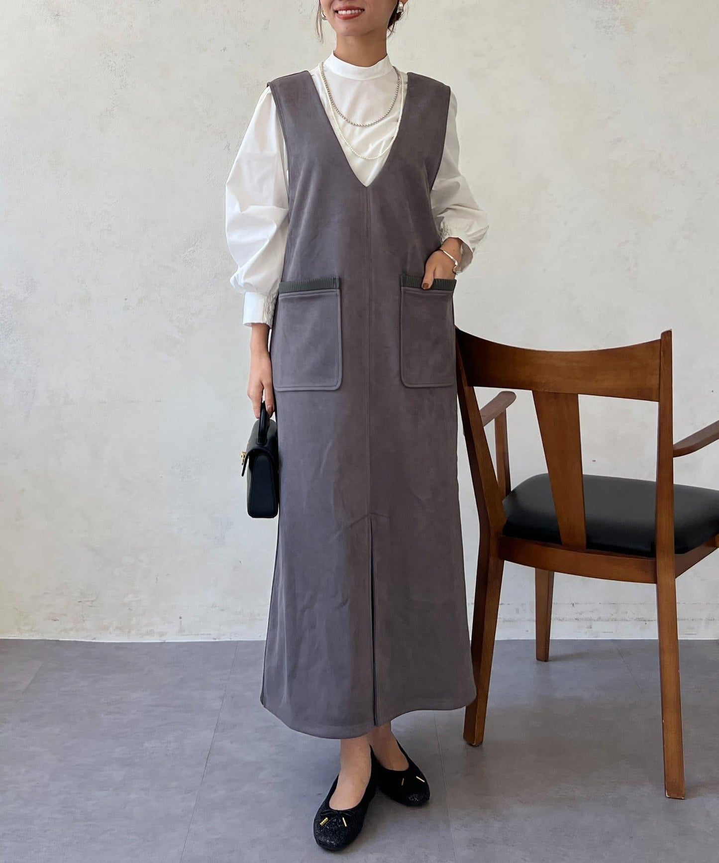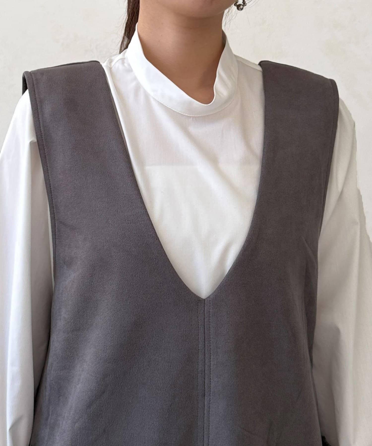 V 形剪裁的領口使臉部看起來更乾淨,給人留下美好的印象。