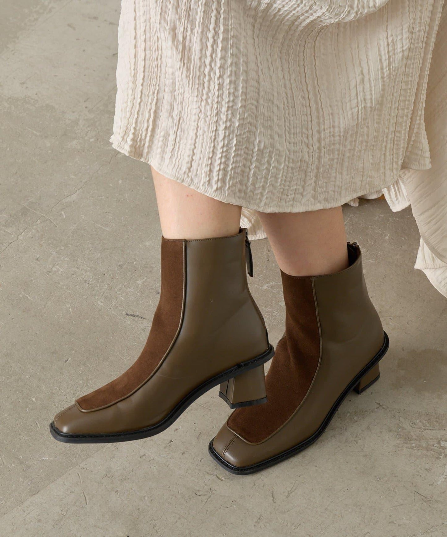 一雙合成革和麂皮相結合的短靴,讓您感受到季節的氣息。