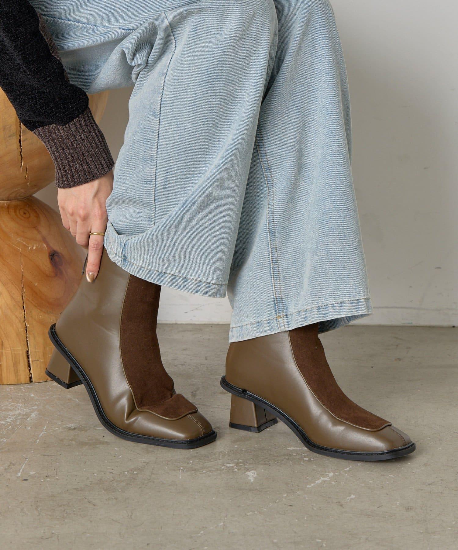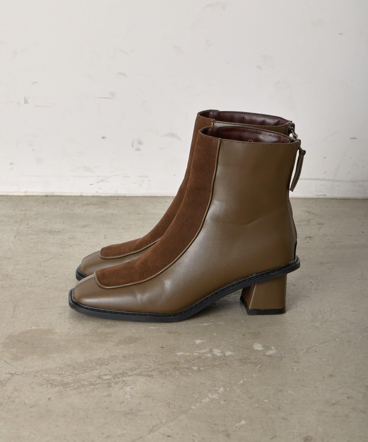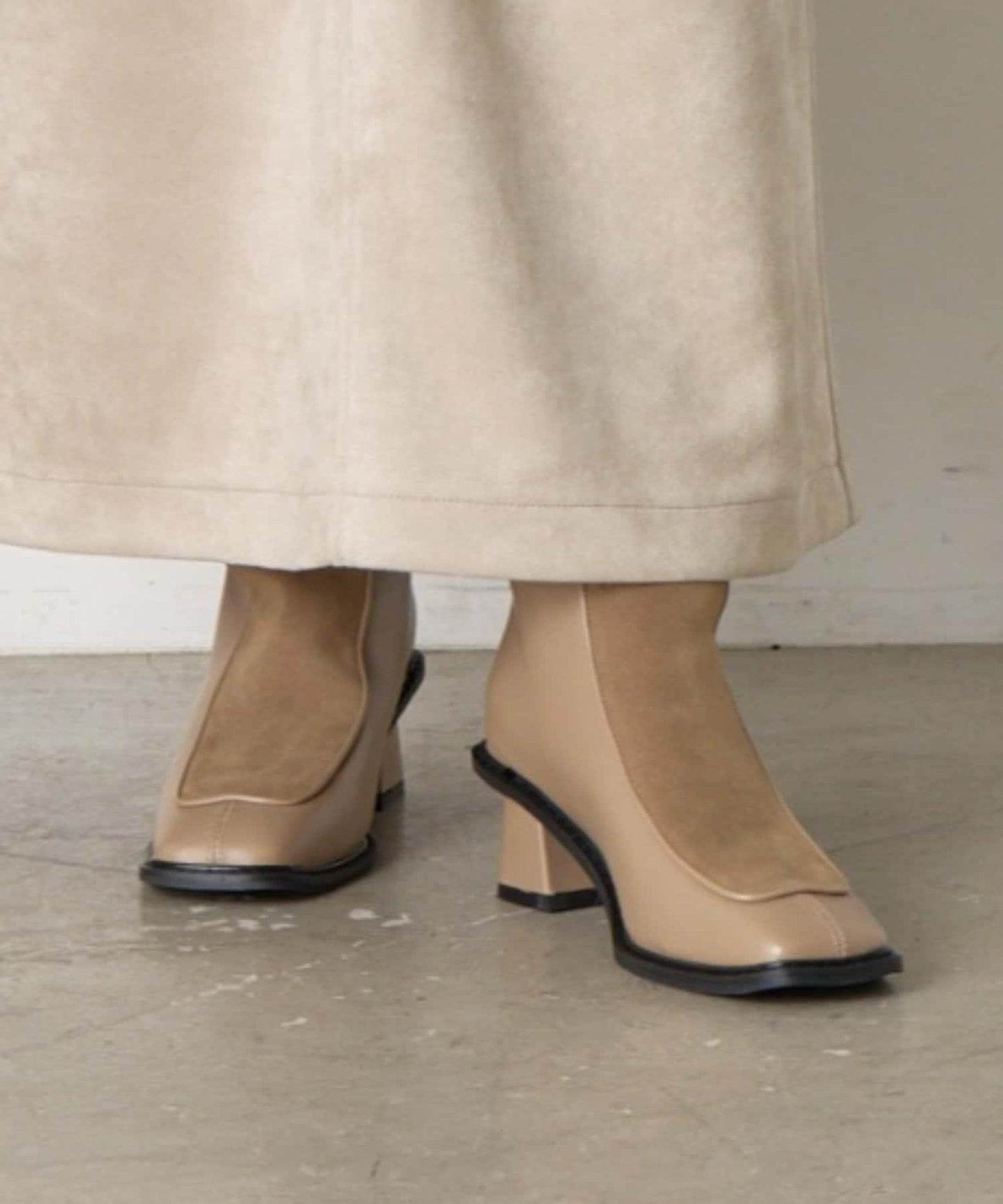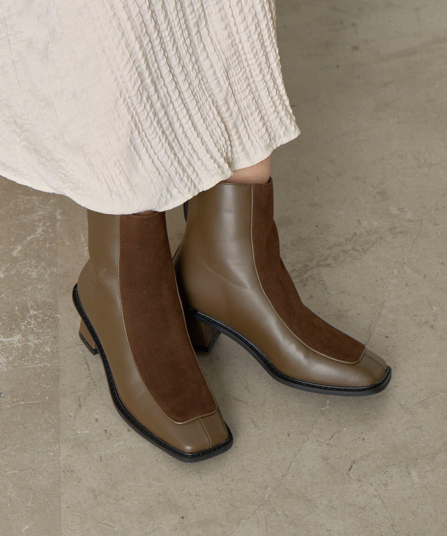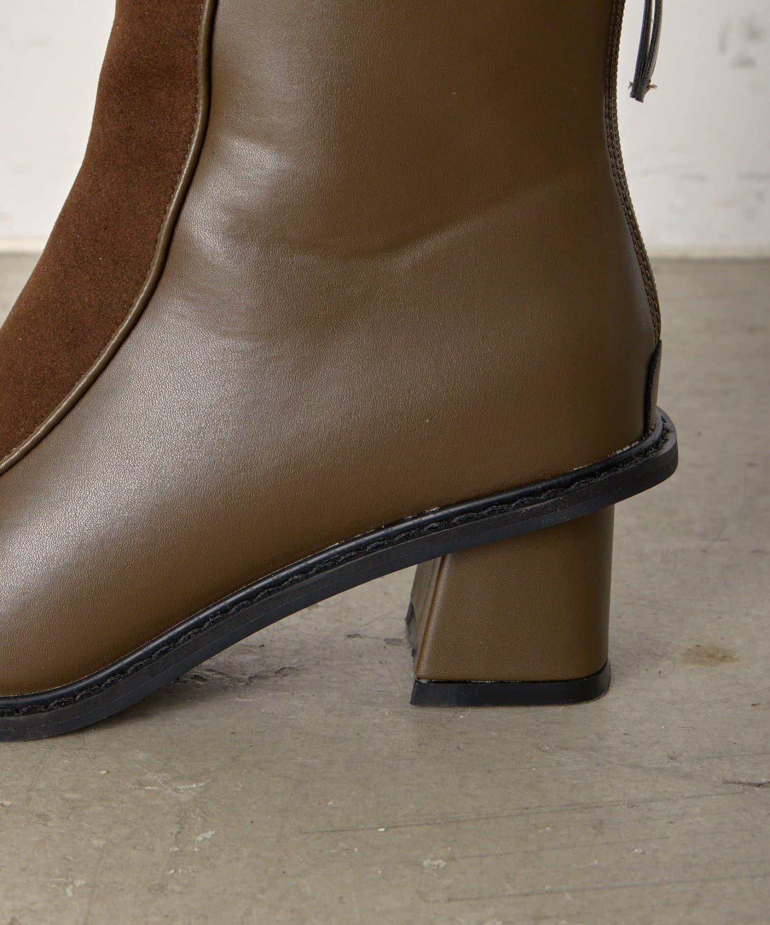 麂皮拼接配色靴