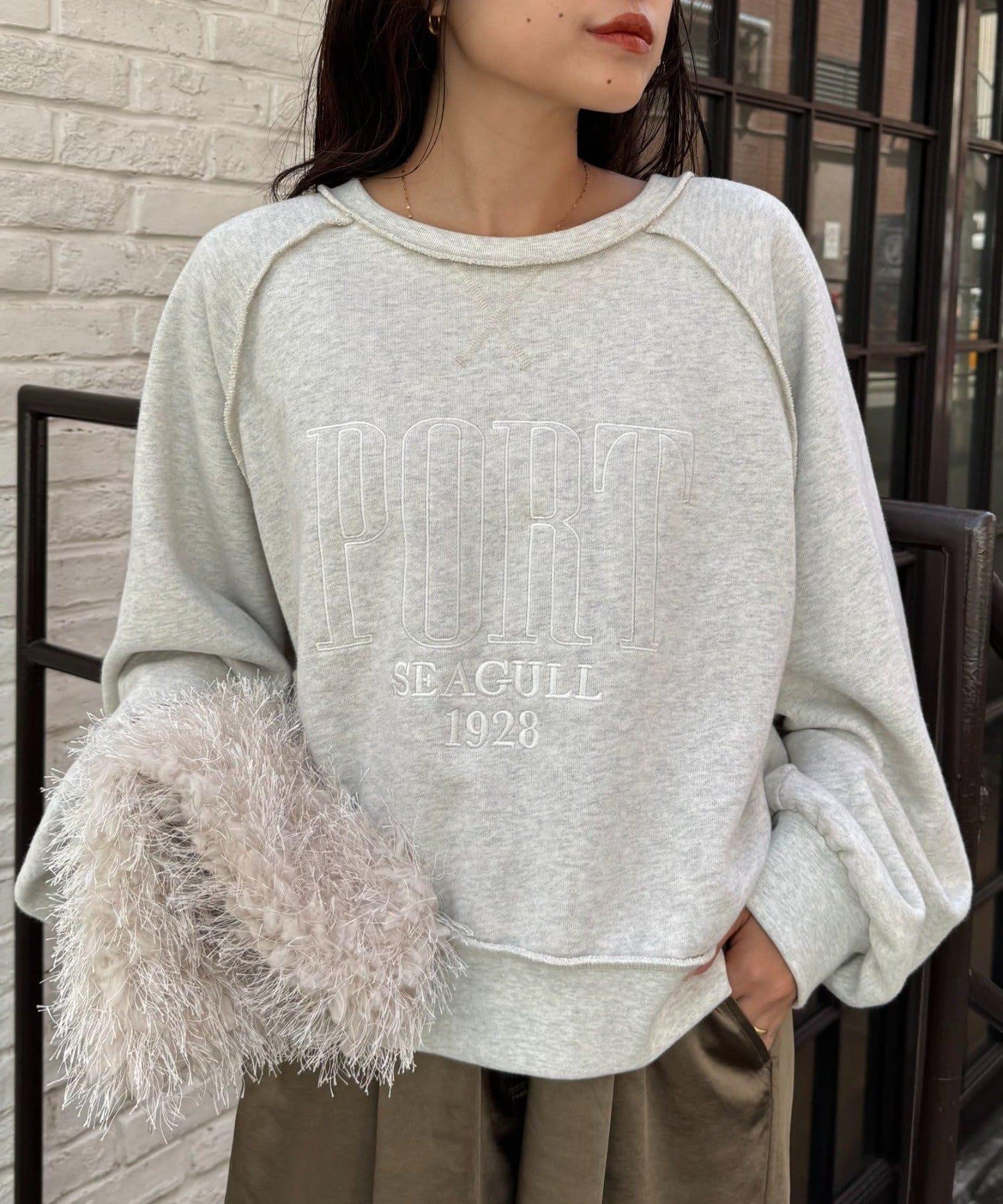 預約商品麂皮絨感內襯毛圈字母刺繡衛衣