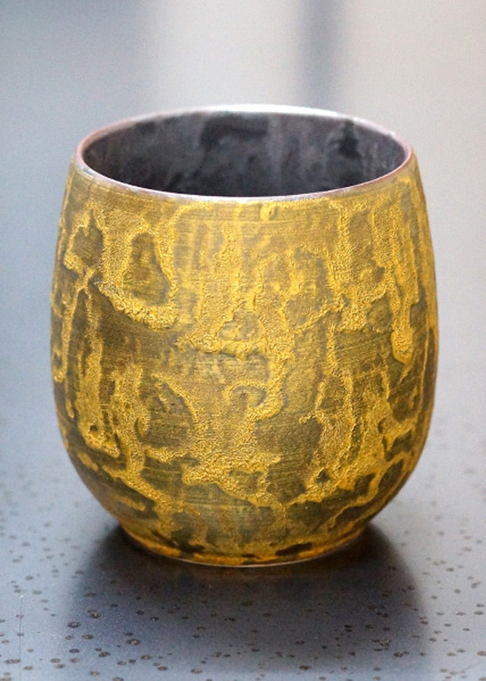金色給人一種華麗的印象,就像使用了金箔一樣。奢華的顏色,根據不同的視角和光線給人以不同的印象,這是這個杯子的迷人之處,我們希望您會喜歡拿在手裡。
