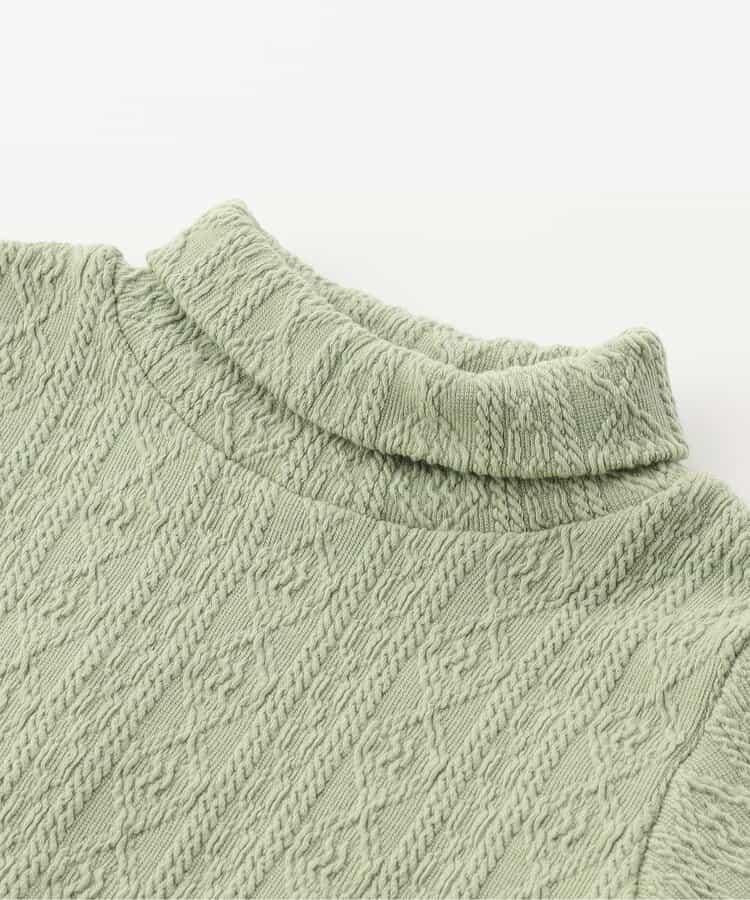 Seraph 的長袖 T 恤 "電纜提花高領上衣 "以其簡潔的面料和柔和的色彩,推薦給崇尚自然品味的時尚人士!