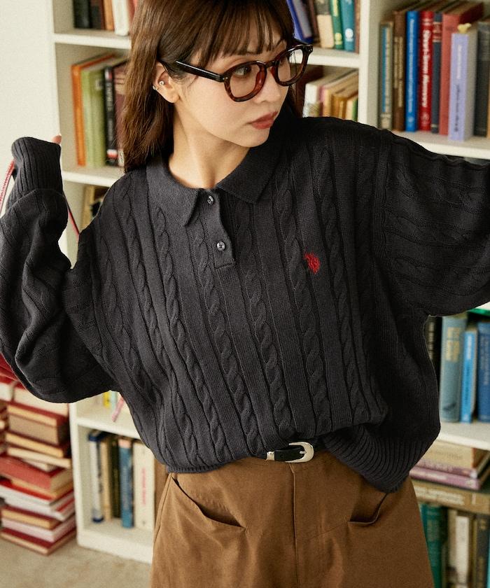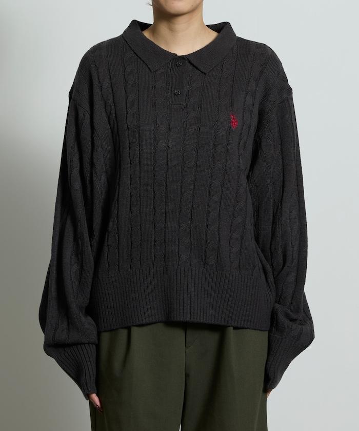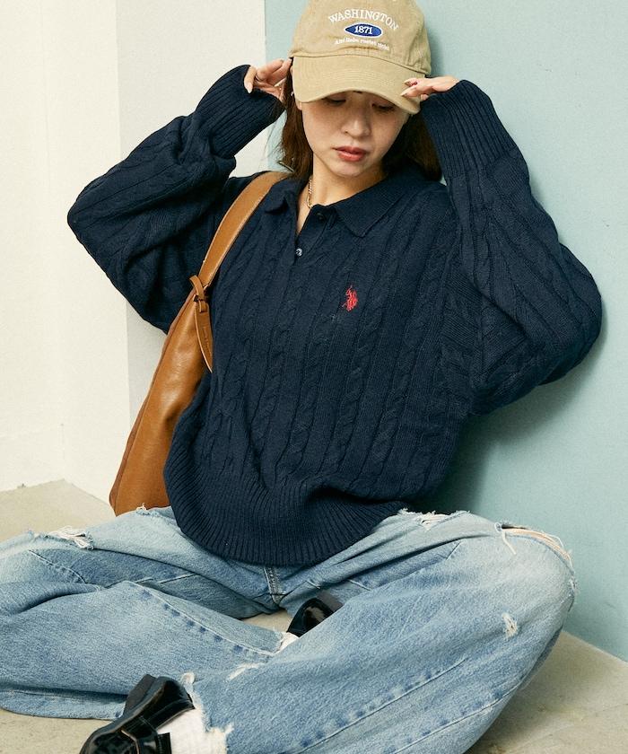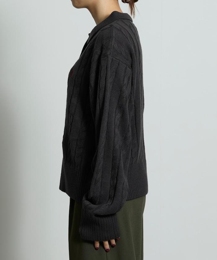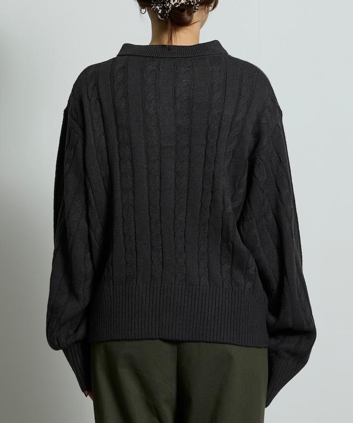 麻花針織翻領套頭衫