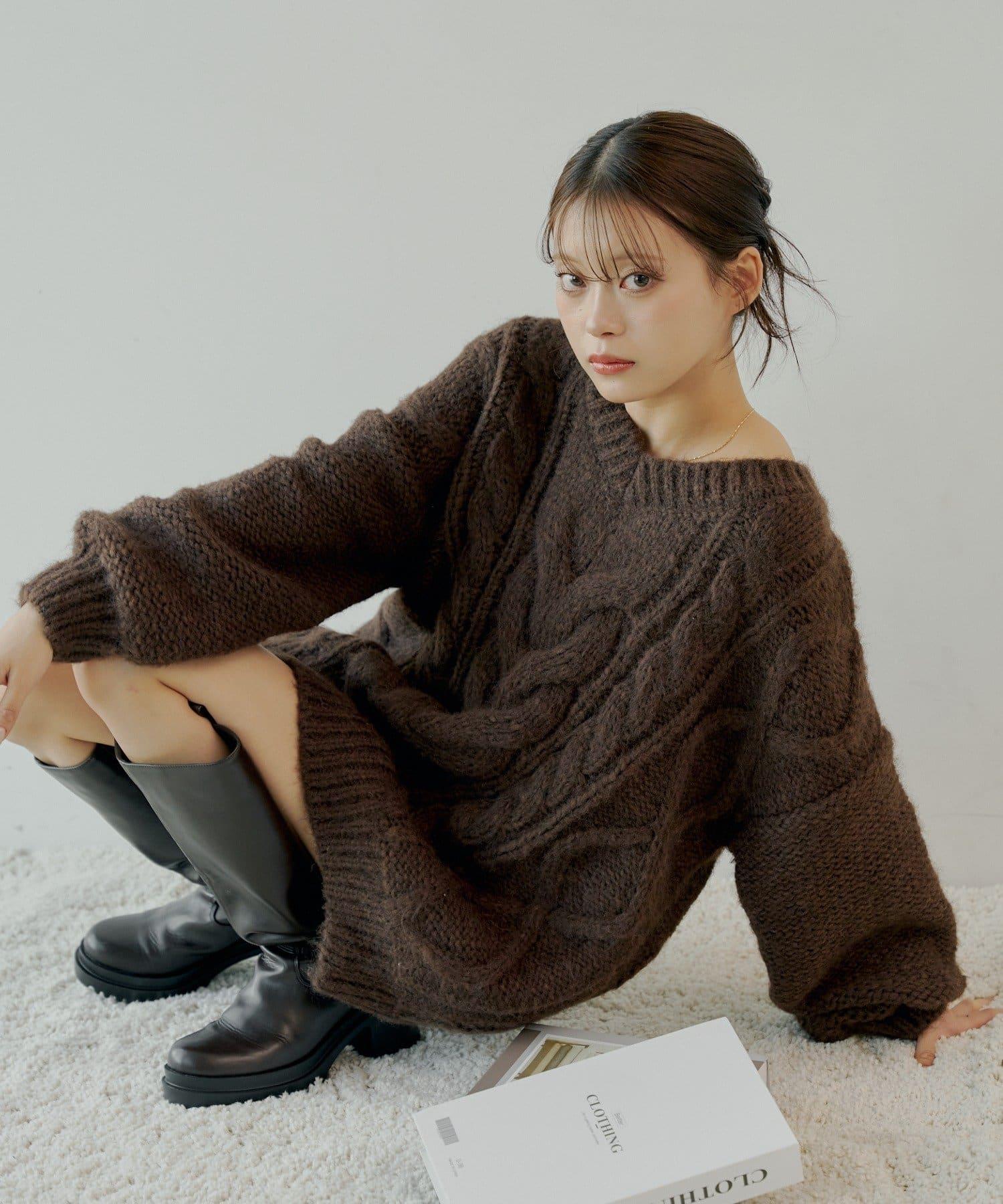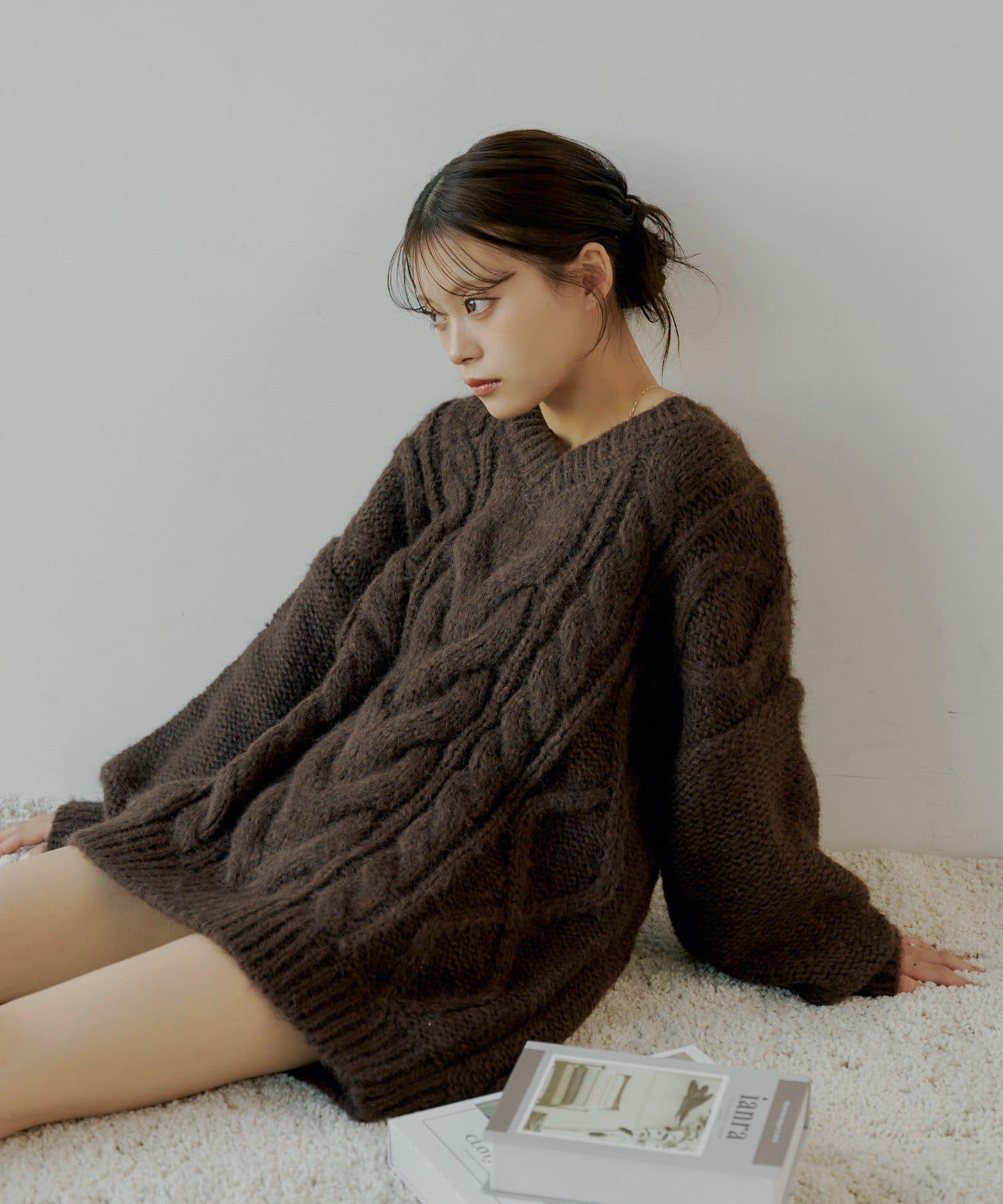 簡潔有力的電纜針織為協調的造型增添了亮點。