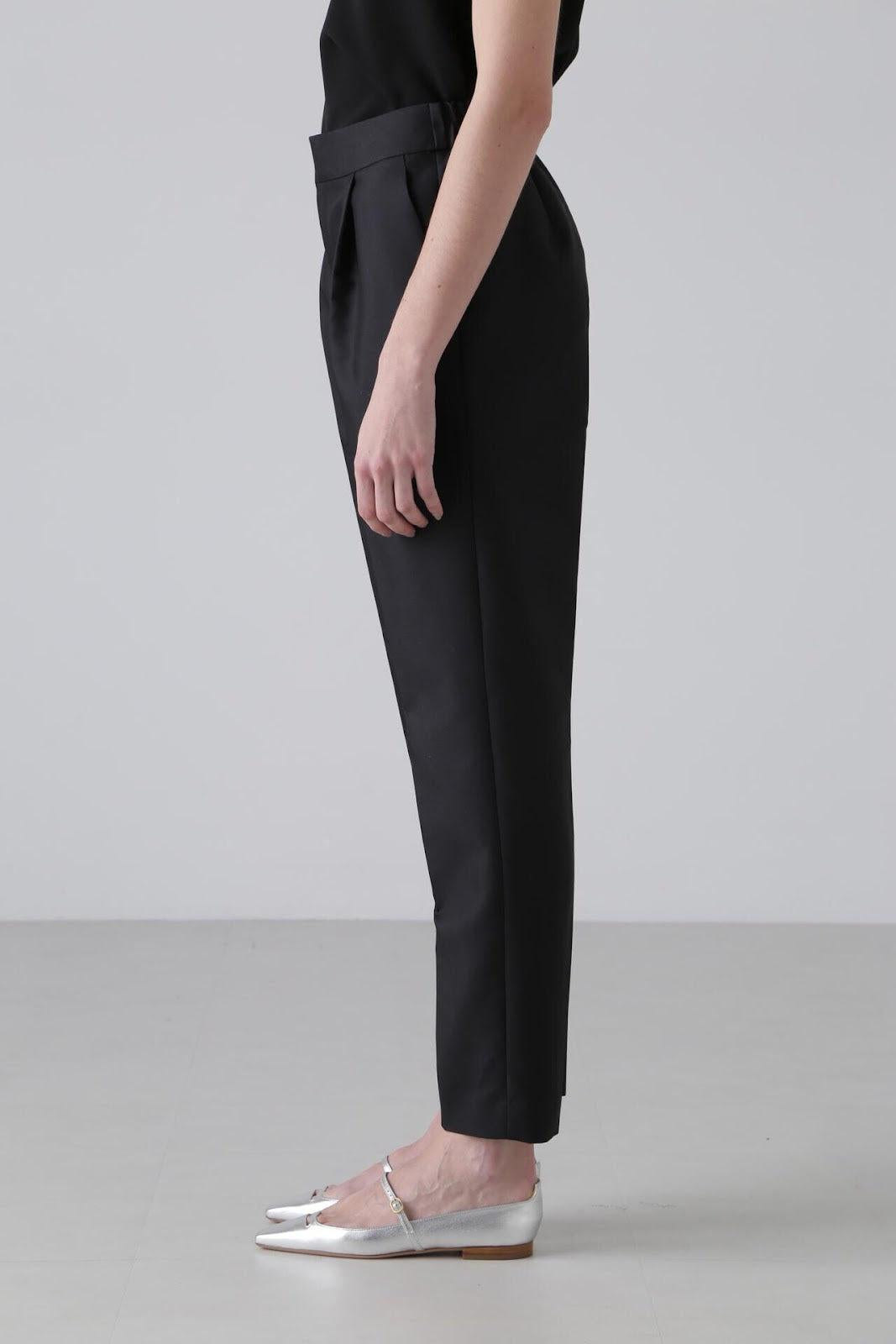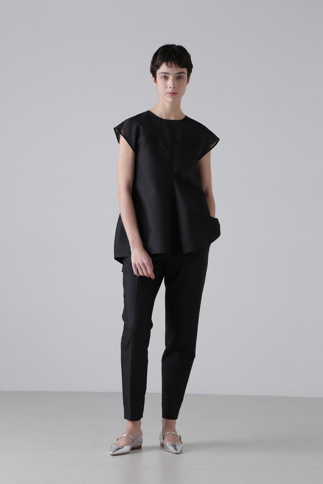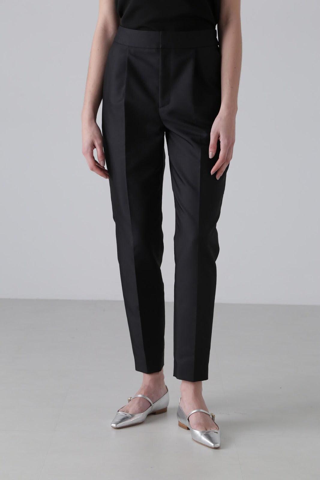 高密度雙面布長褲,優雅回彈 這款錐形長褲採用漂亮的一字領剪裁,將面料的回彈性發揮得淋漓盡致。也可與同款上衣(貨號:531-5110353)搭配穿著。該面料由細支高捻棉和聚酯纖維高密度雙層編織而成,絨毛很少,表面非常光潔,張力適中。