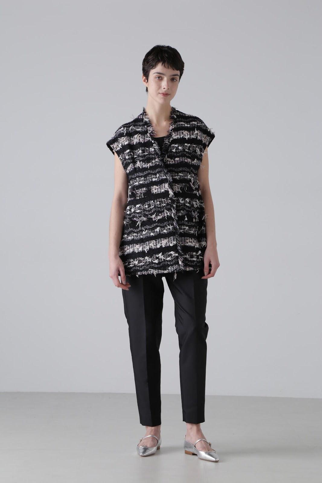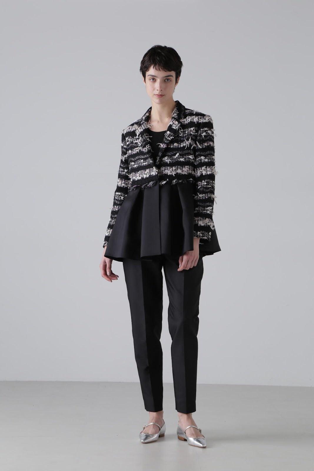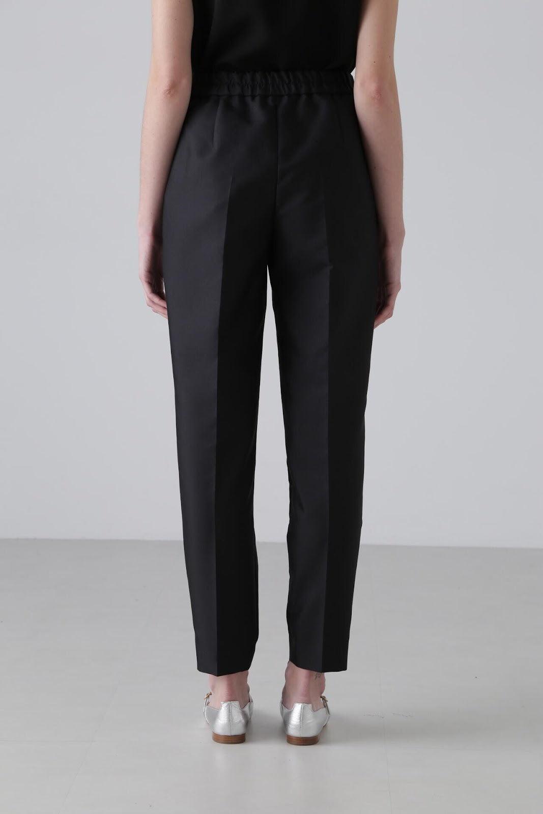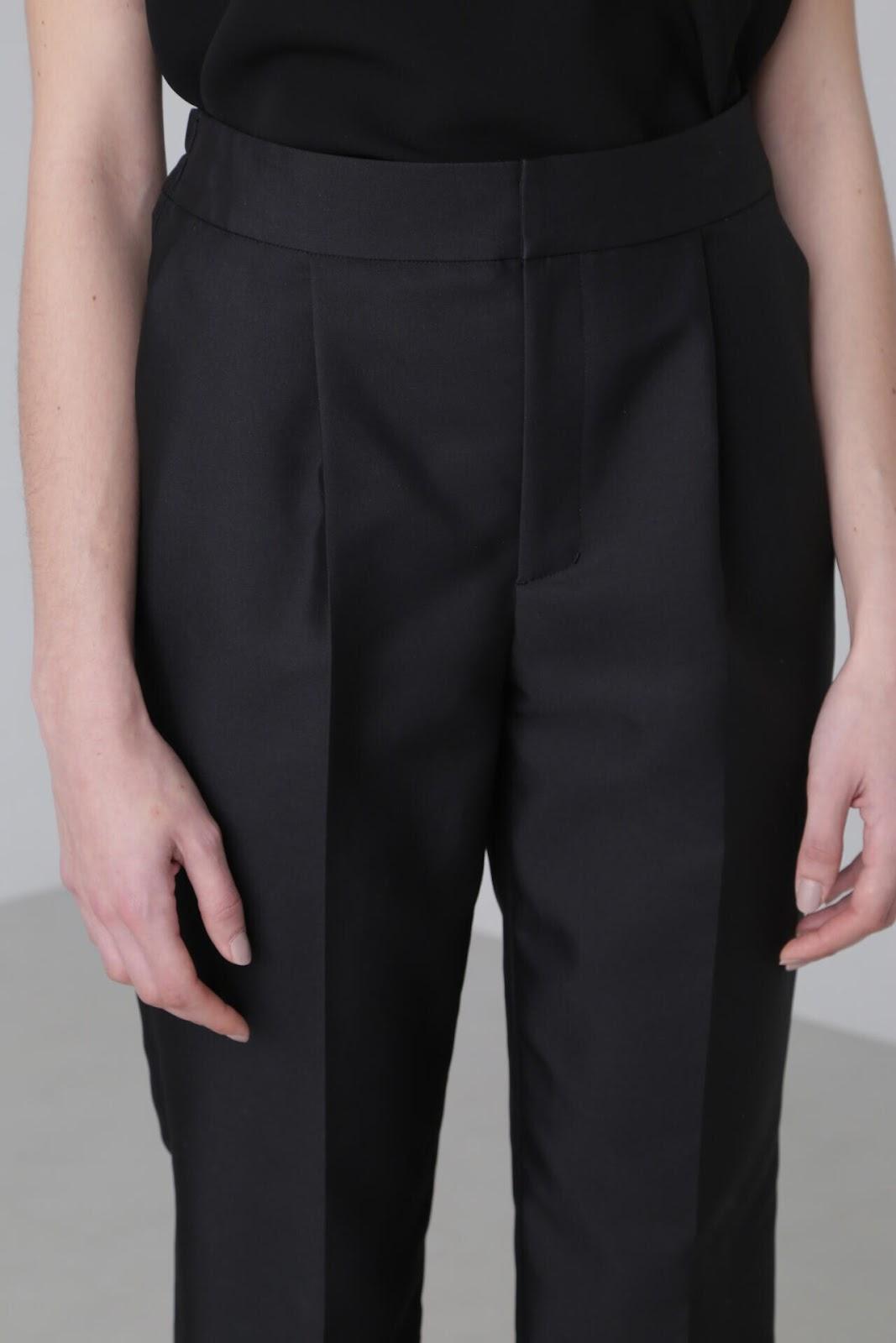 高密度雙面布長褲,優雅回彈 這款錐形長褲採用漂亮的一字領剪裁,將面料的回彈性發揮得淋漓盡致。也可與同款上衣(貨號:531-5110353)搭配穿著。該面料由細支高捻棉和聚酯纖維高密度雙層編織而成,絨毛很少,表面非常光潔,張力適中。