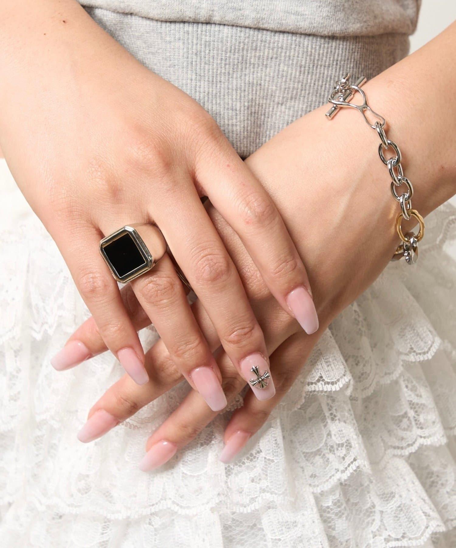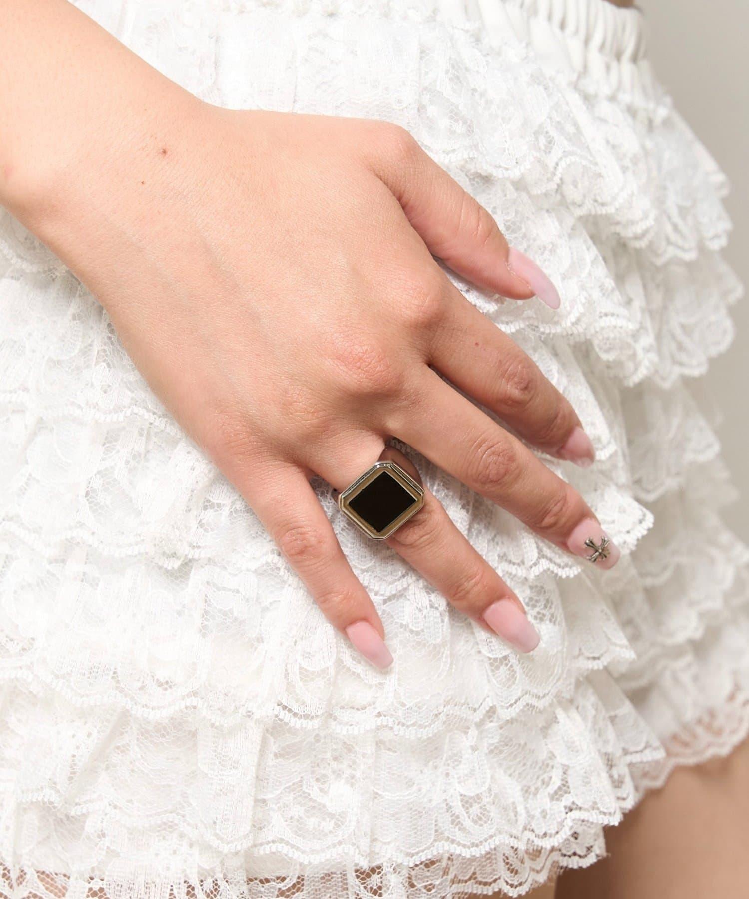 戒指中央的黑色正方形營造出一種精緻的氛圍。