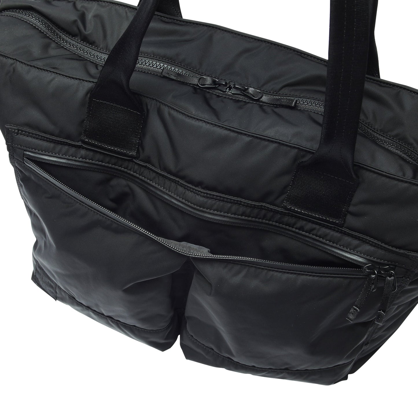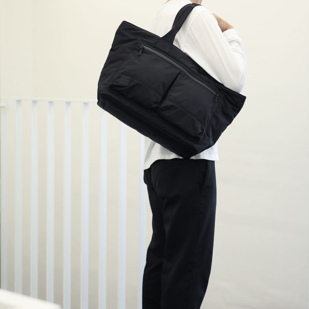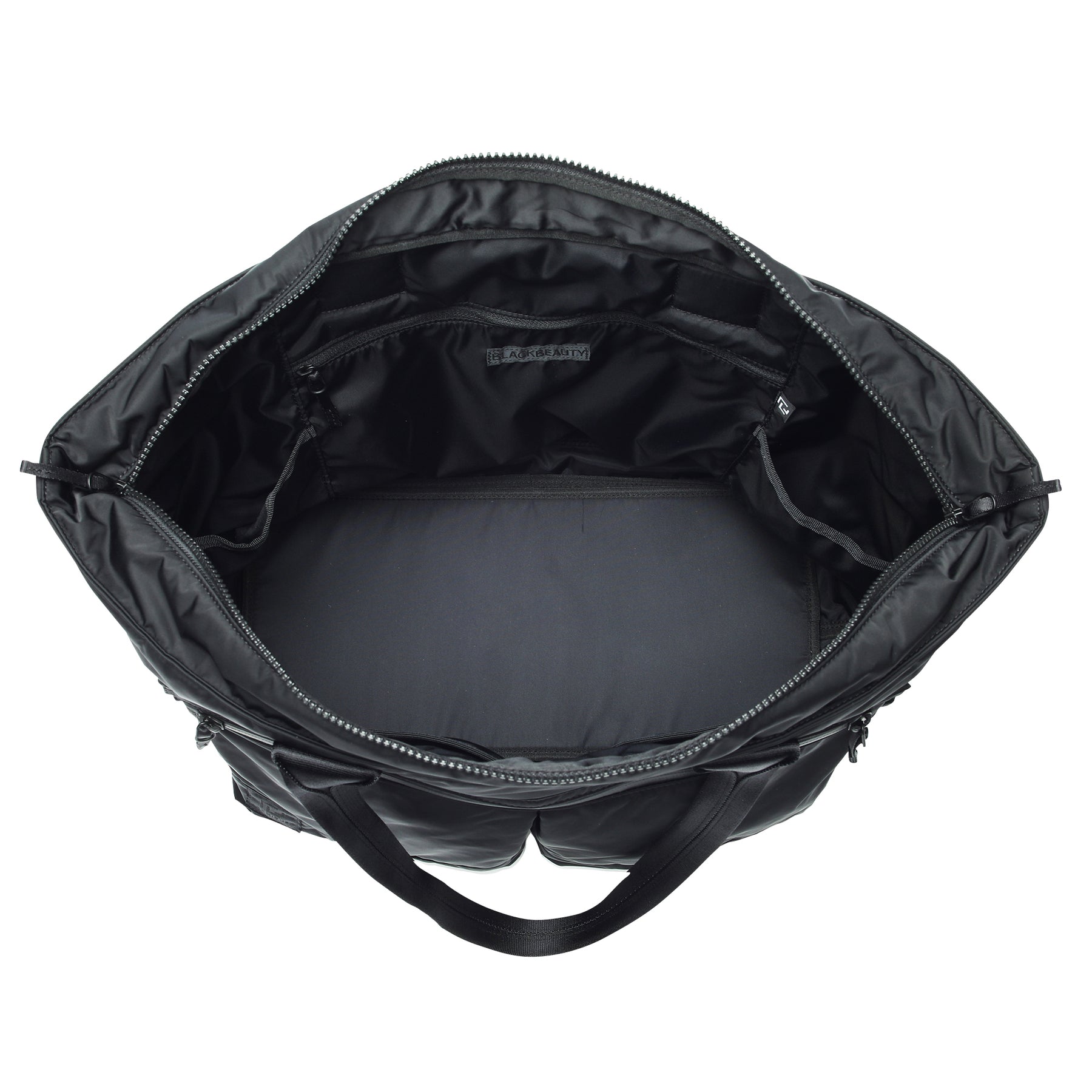 標準尺寸的手提包,採用輕質防水的聚酯纖維。它有一個討人喜歡的梯形輪廓,肩掛式手柄和方便的口袋。