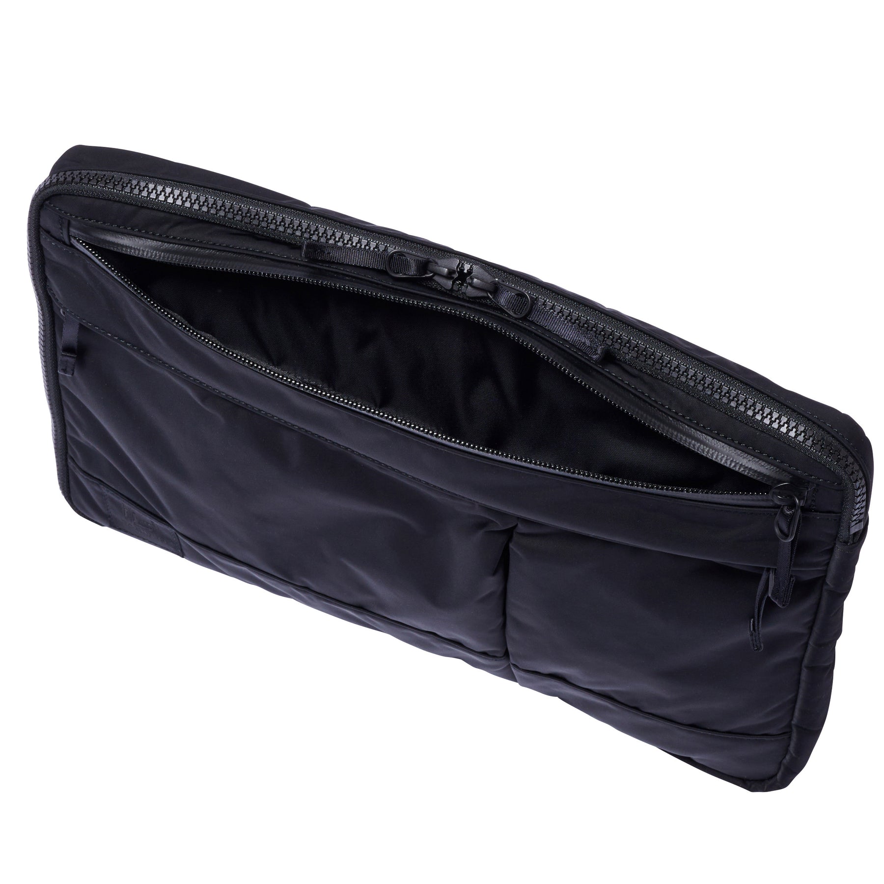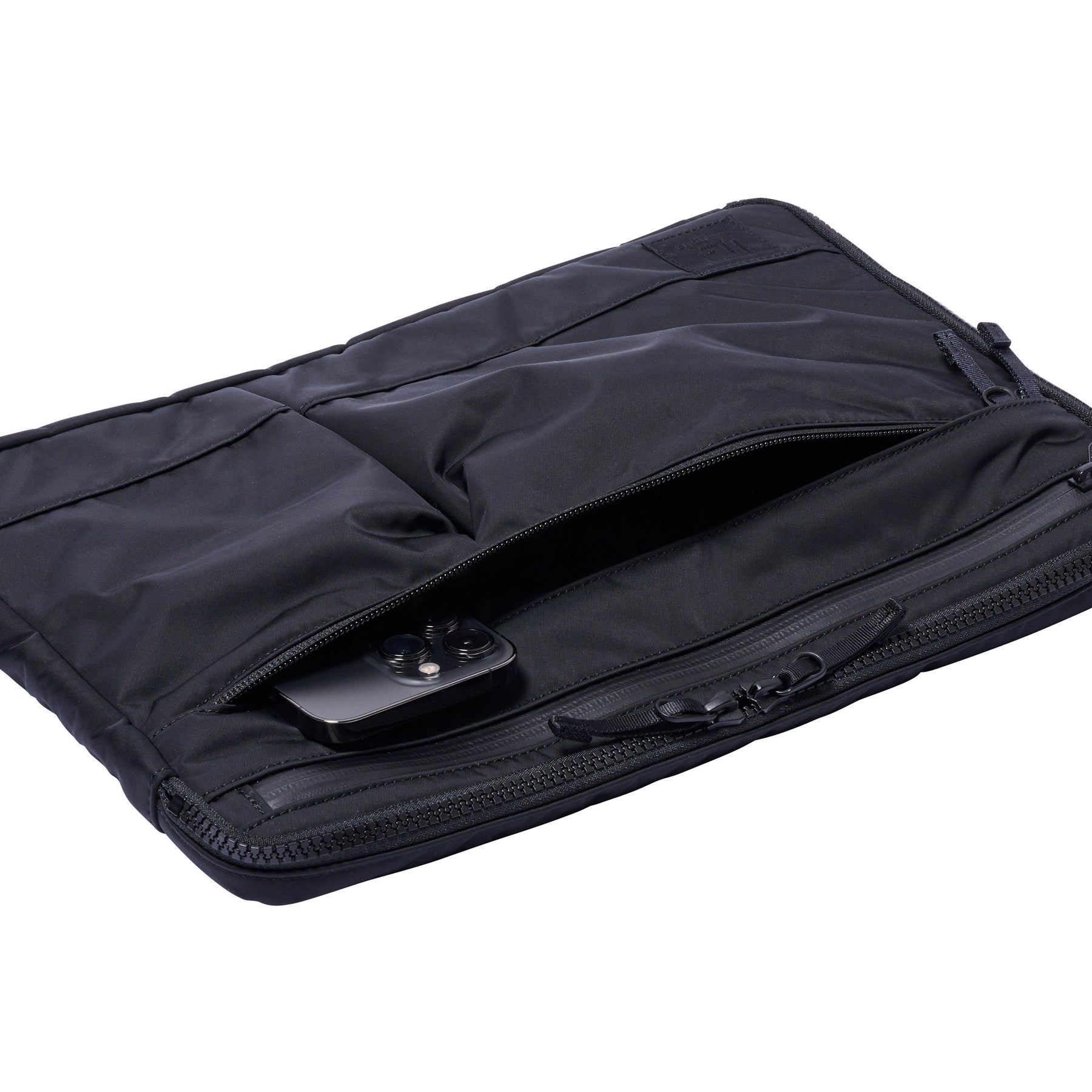 L 形主口袋,L 形封口,可放置👍 13 英寸的筆記本電腦。三個不同大小的前袋,用於存放緊湊型轉塔、電纜和電池適配器等配件。