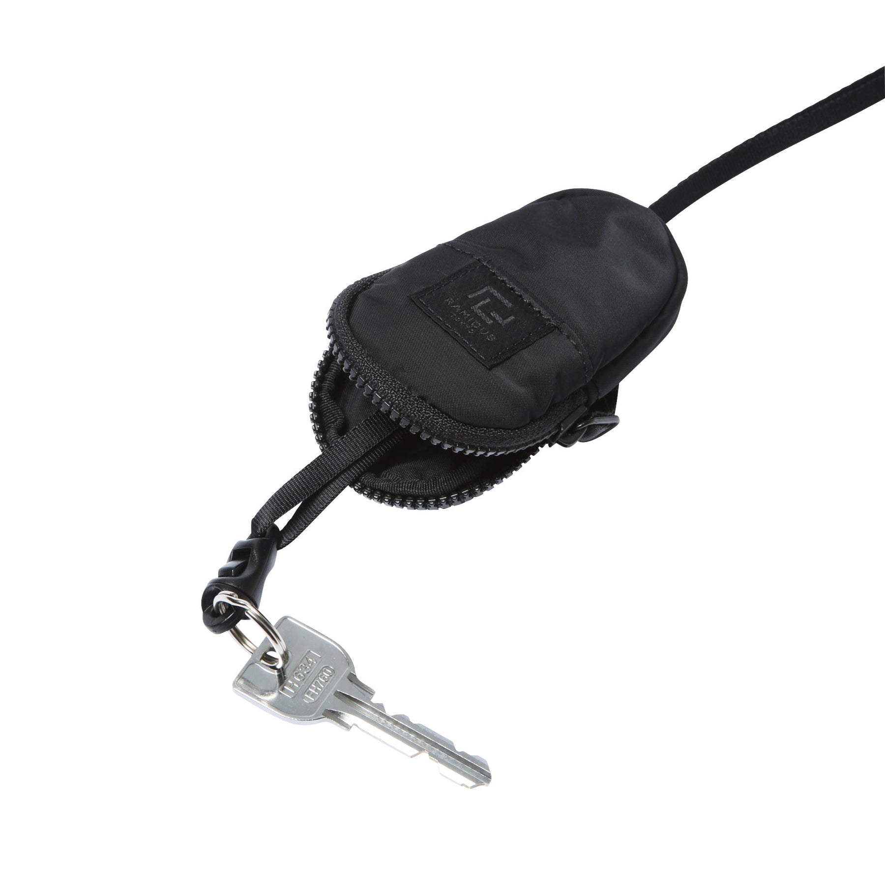 頸部安裝的鑰匙箱,底部有拉鍊封口。鑰匙環可以與主體分離,以便順利插入和取出鑰匙。脖子上的繩子也可以作為包包的掛件鑰匙盒使用,把它纏在包包的把手上。