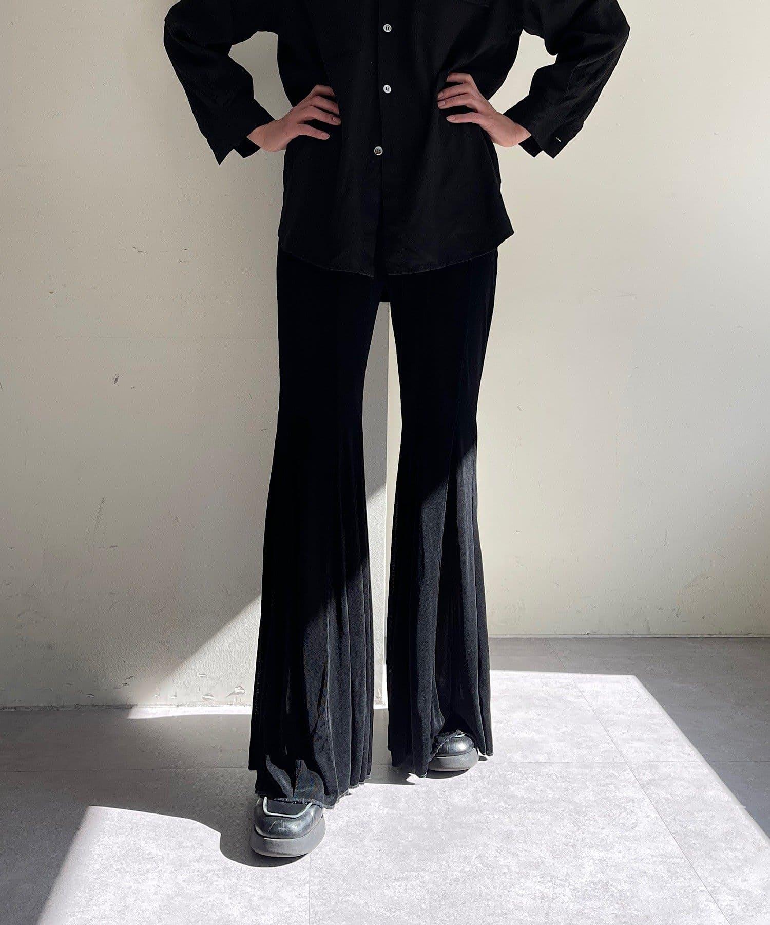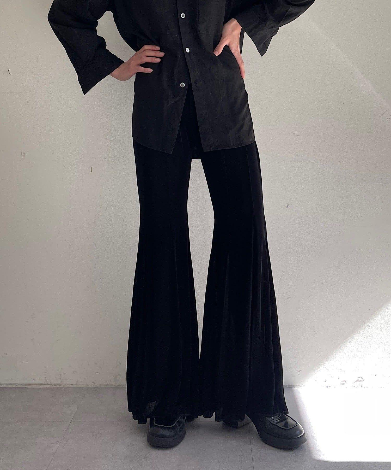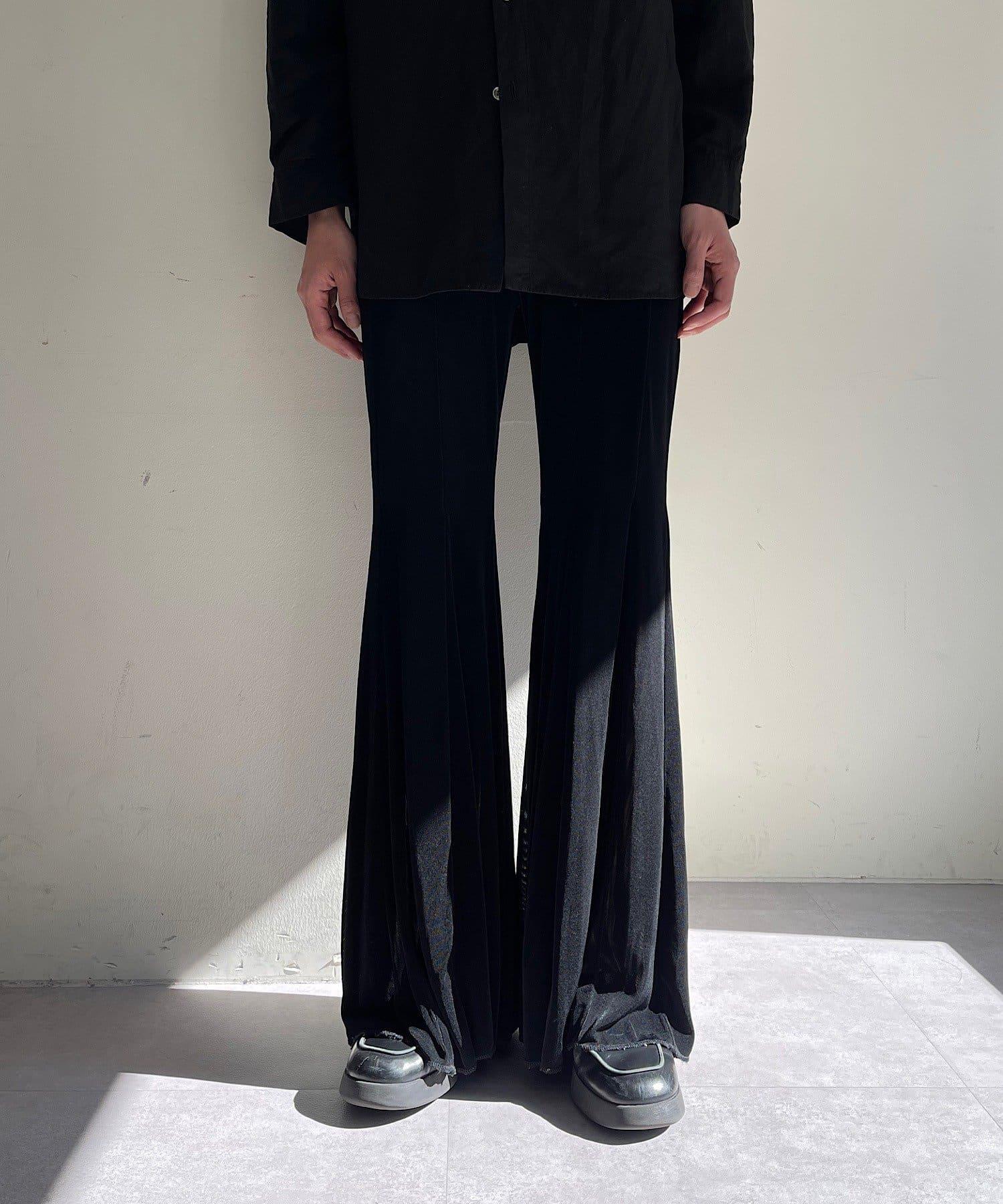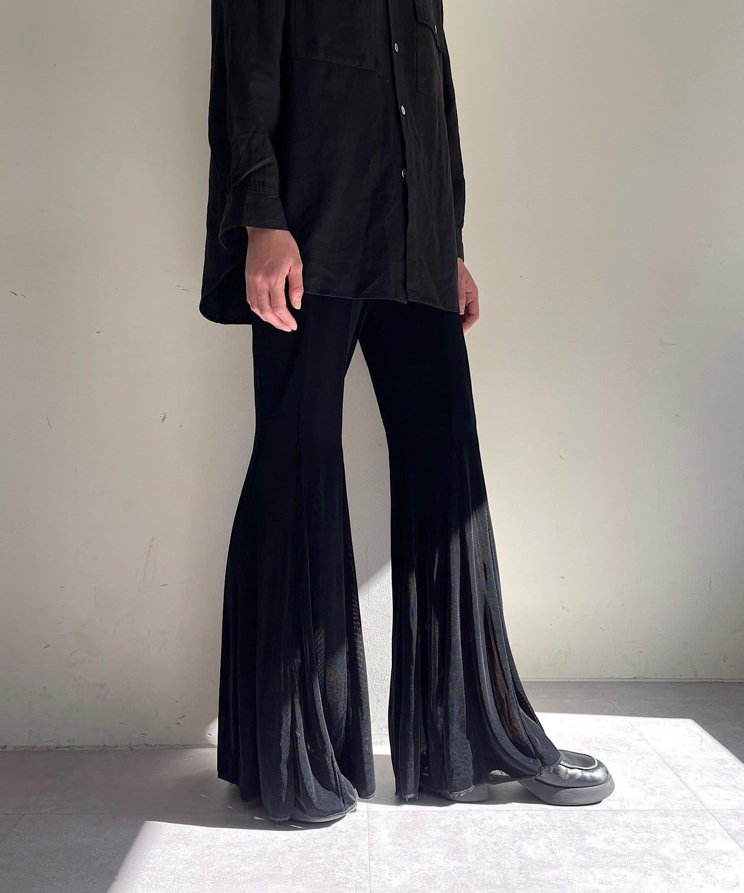 【黑色/尺碼0・1】透明肋骨喇叭褲
