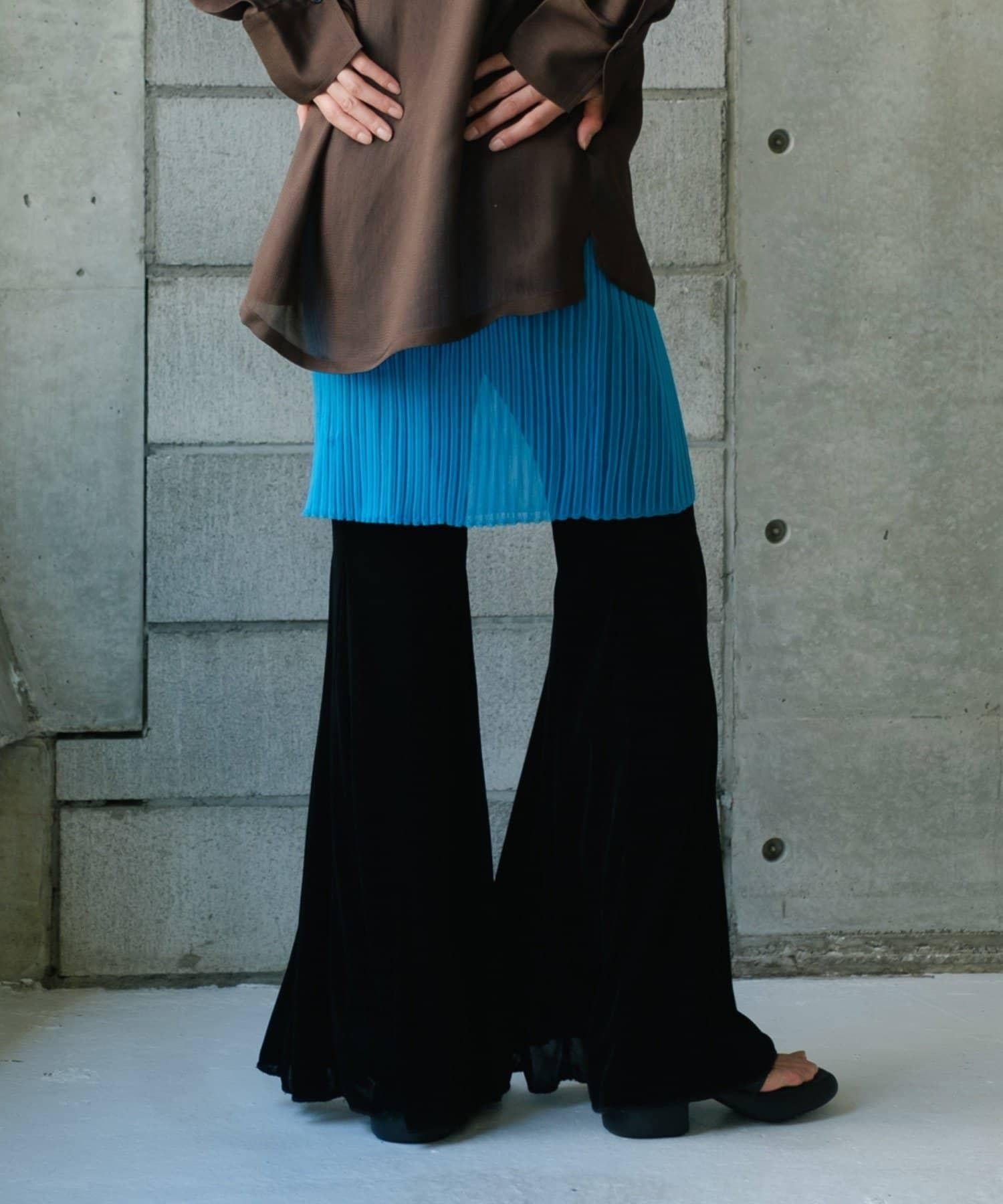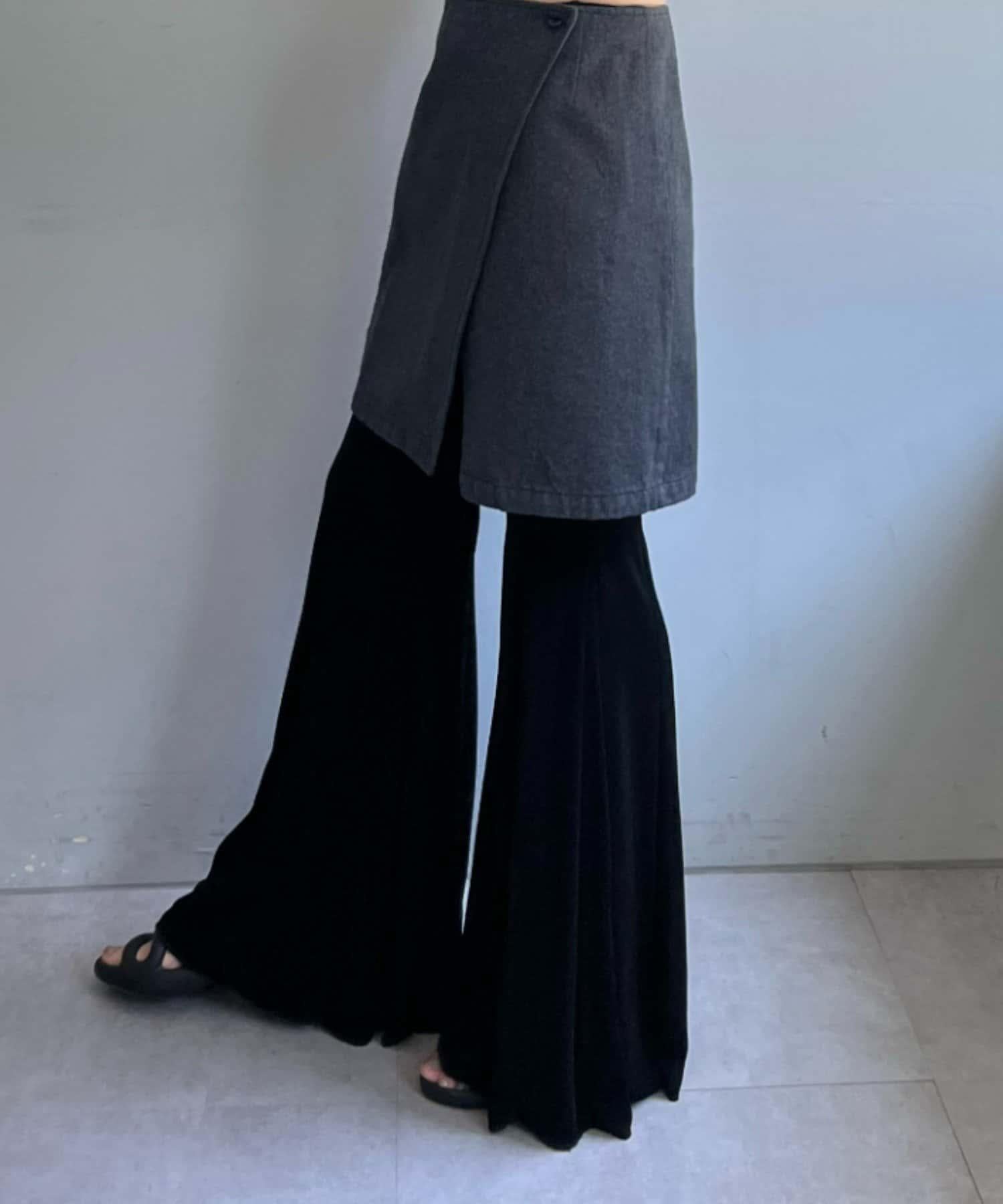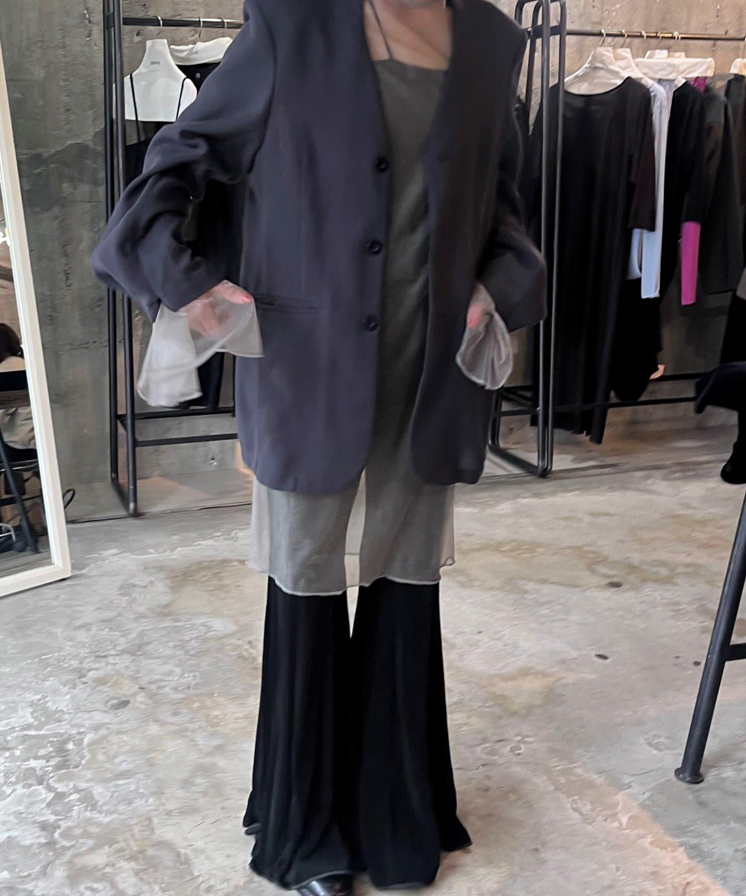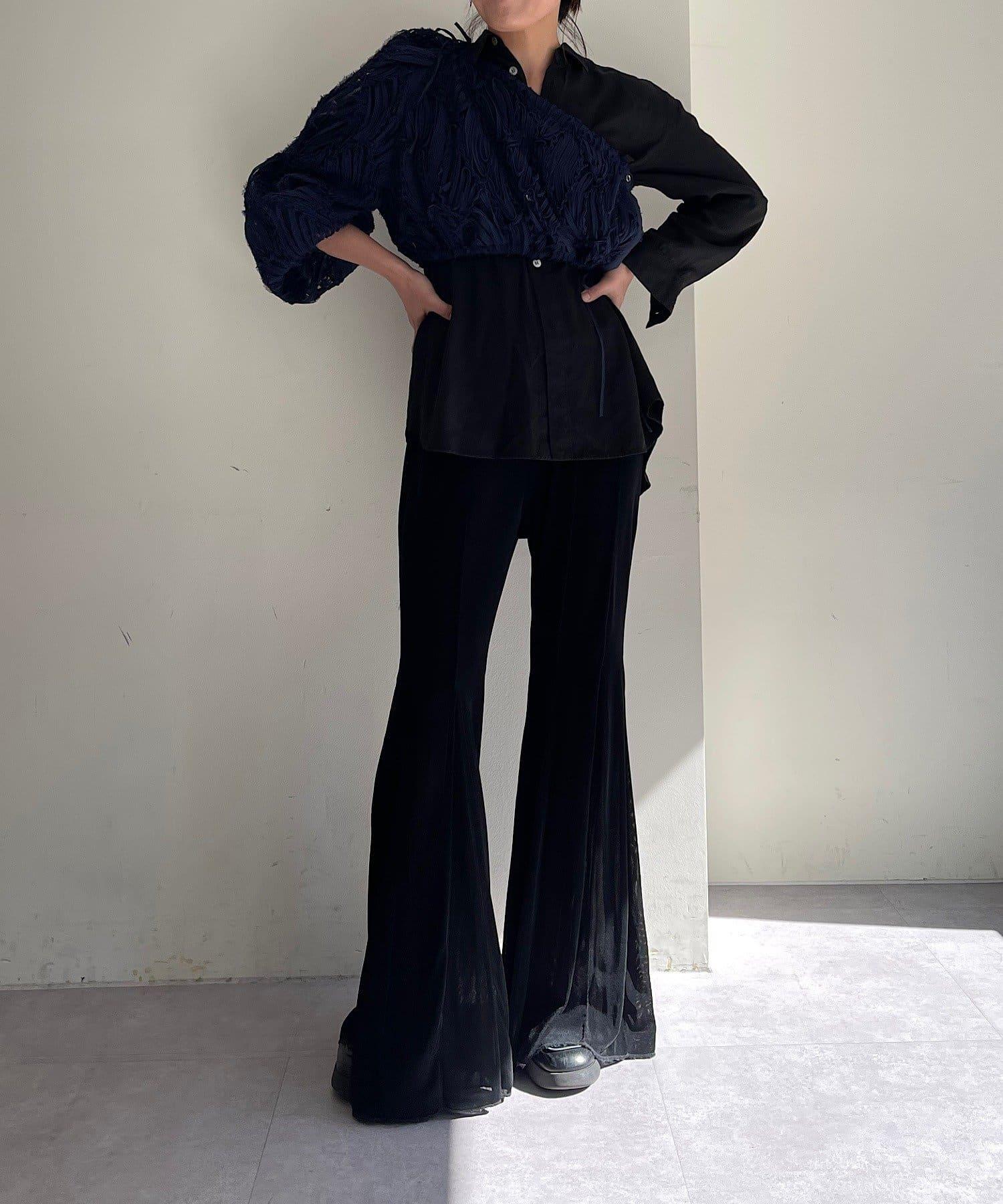 【黑色/尺碼0・1】透明肋骨喇叭褲