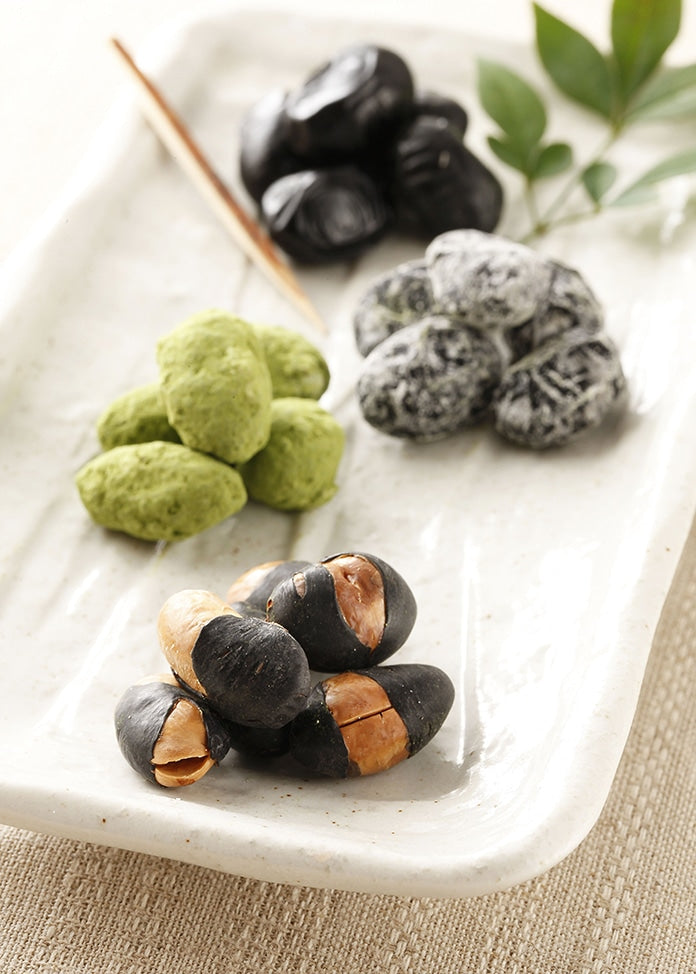 Yawara:黑豆被煮得很豐滿,並在糖漿中浸泡兩天兩夜後才被曬乾。可以享受黑豆的溫和味道。