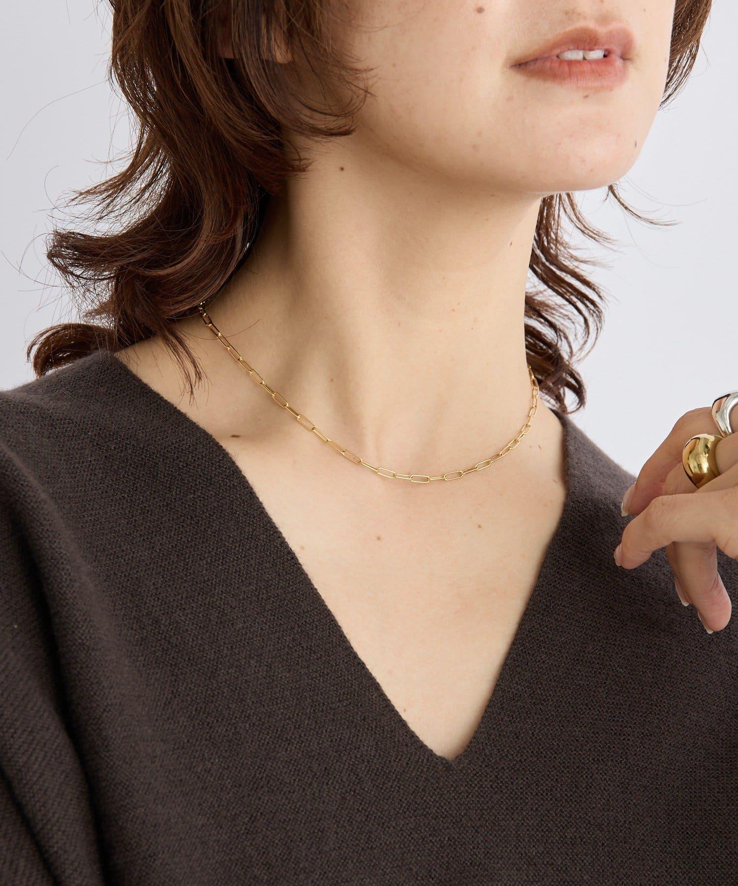 方形鏈條項鍊,在頸間營造出一種存在感。