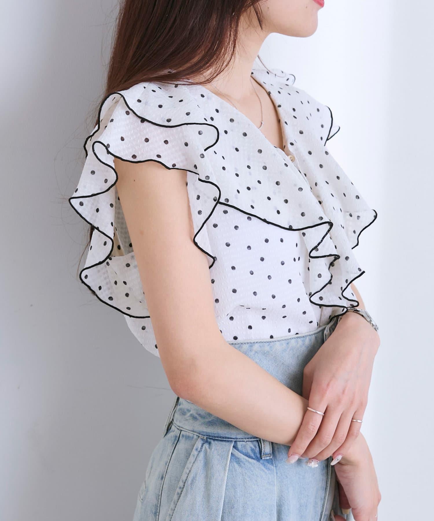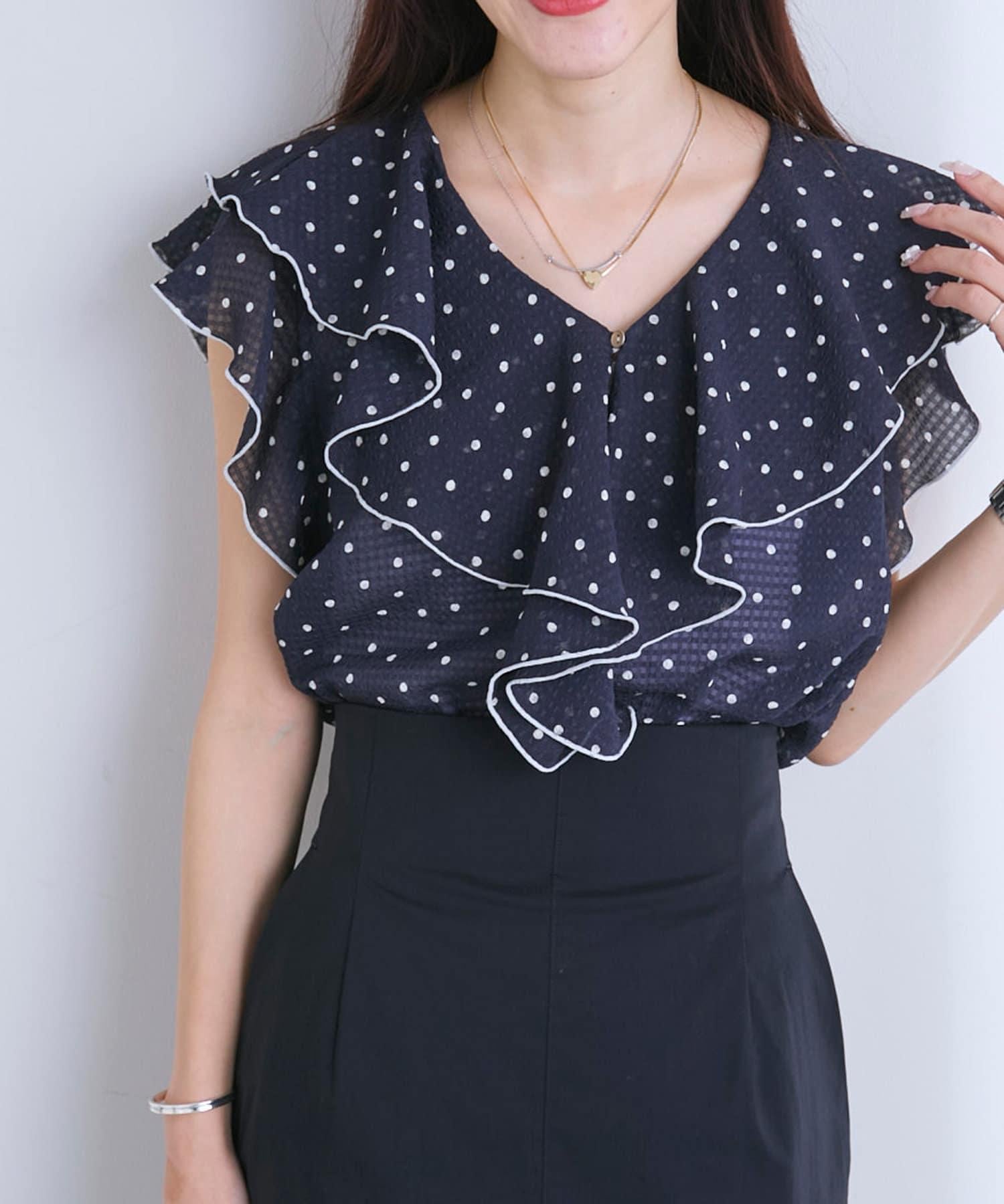 優雅的圓點圖案上衣,盡顯成熟女人味。