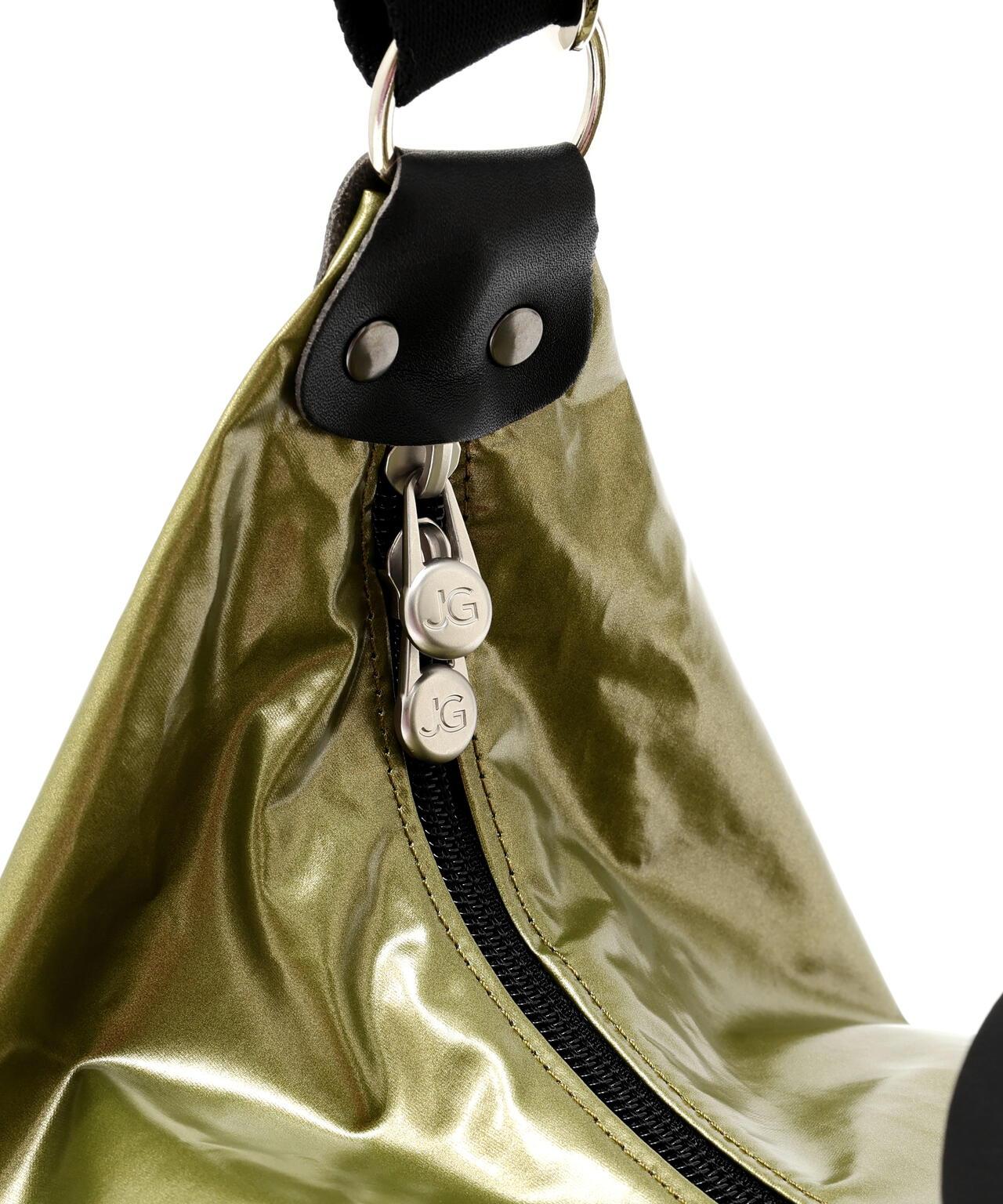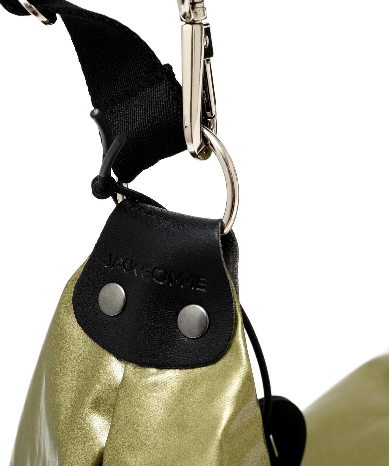 耐用、輕便的半月形包 [主要設計特點] 這款半月形單肩包的特點是包帶配有一個卡扣。包包採用閃亮材料製成,既耐用又輕便。建議搭配] 這款包既可搭配出漂亮的造型,也可搭配出運動風格。JACK GOMME]這個法國品牌不斷推出追求功能美、耐用性和輕便性的產品。
