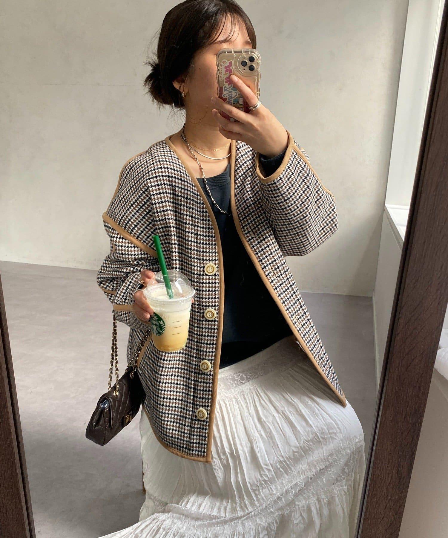 即使內搭厚針織衫也不會感覺尺寸僵硬,輪廓具有立體感,上半身不會顯得臃腫◎。