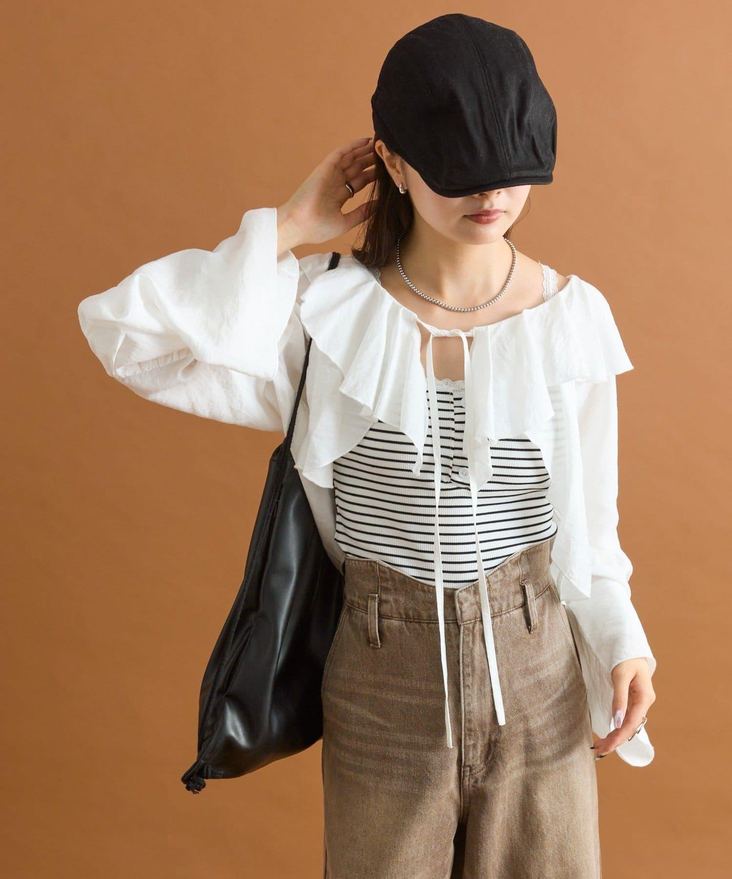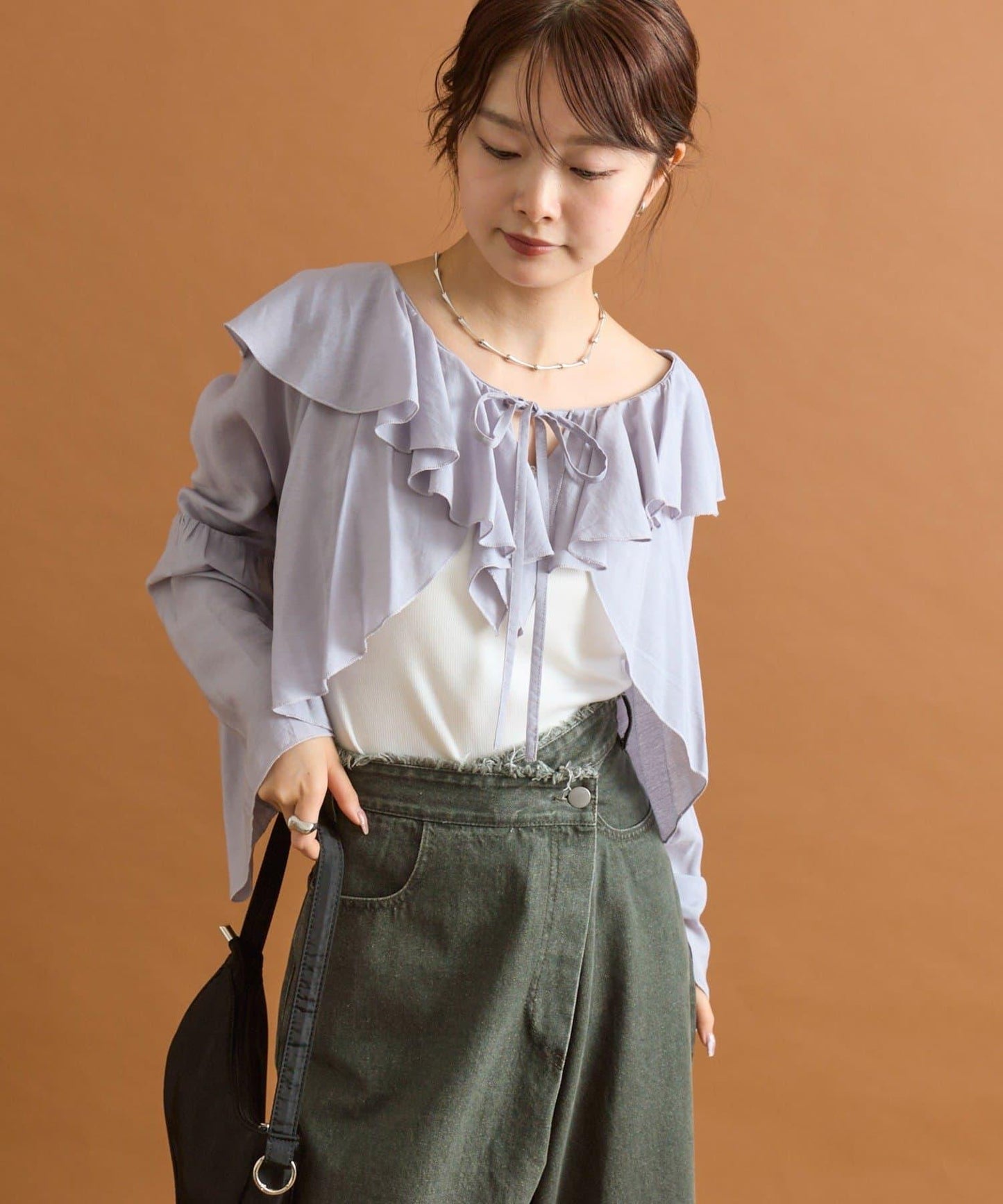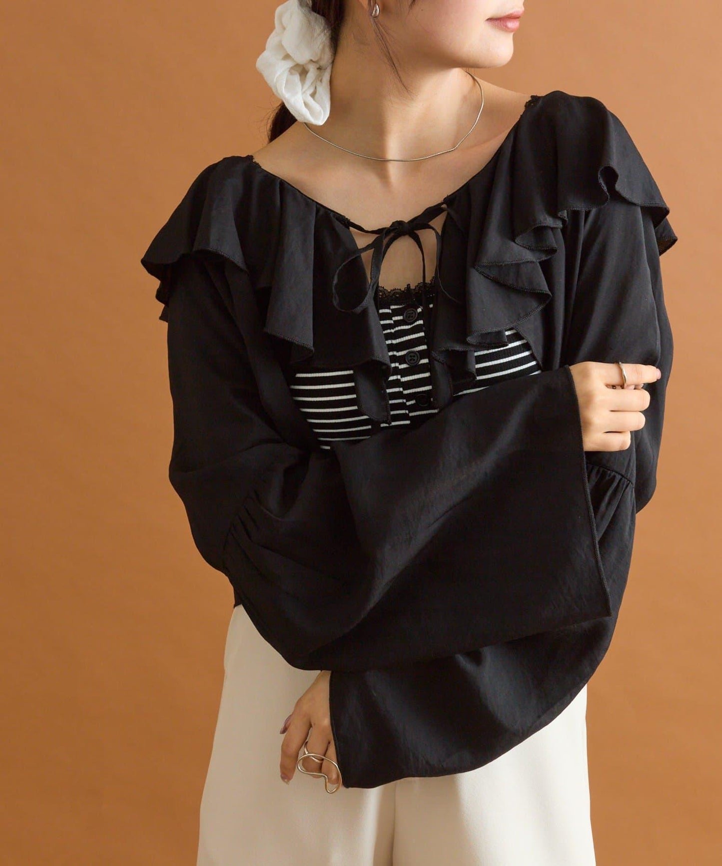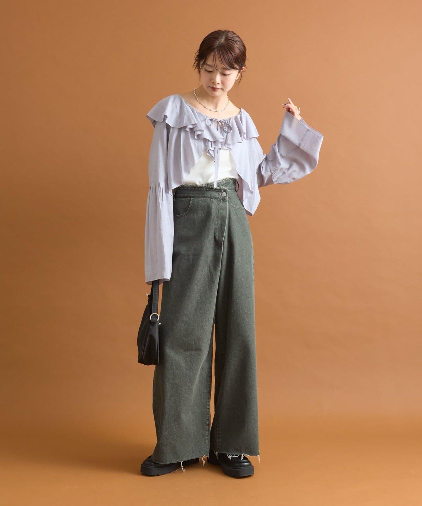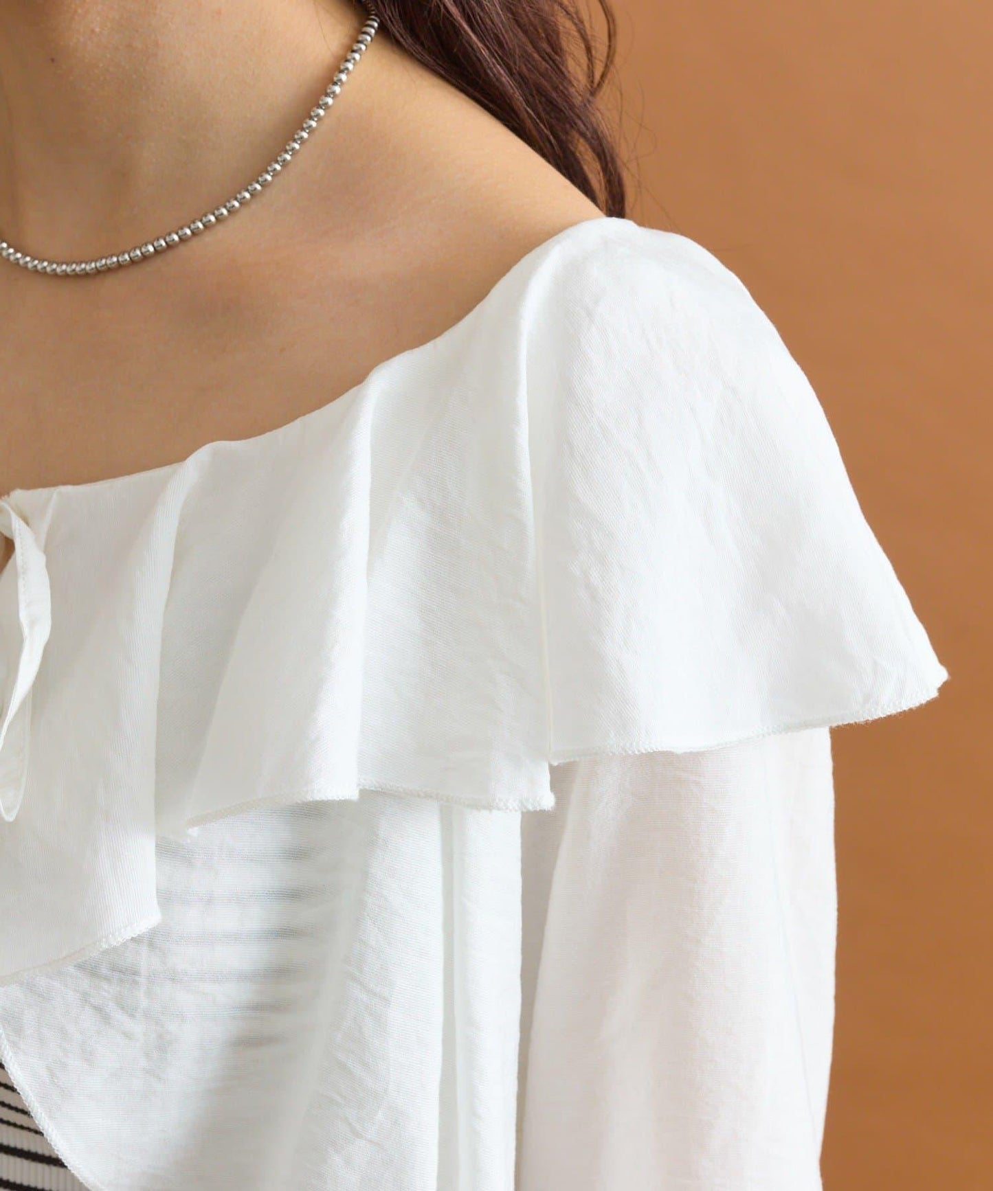 具有存在感的褶邊、大領口和袖口,給人以華麗可愛的印象,是一款帥氣的單品。