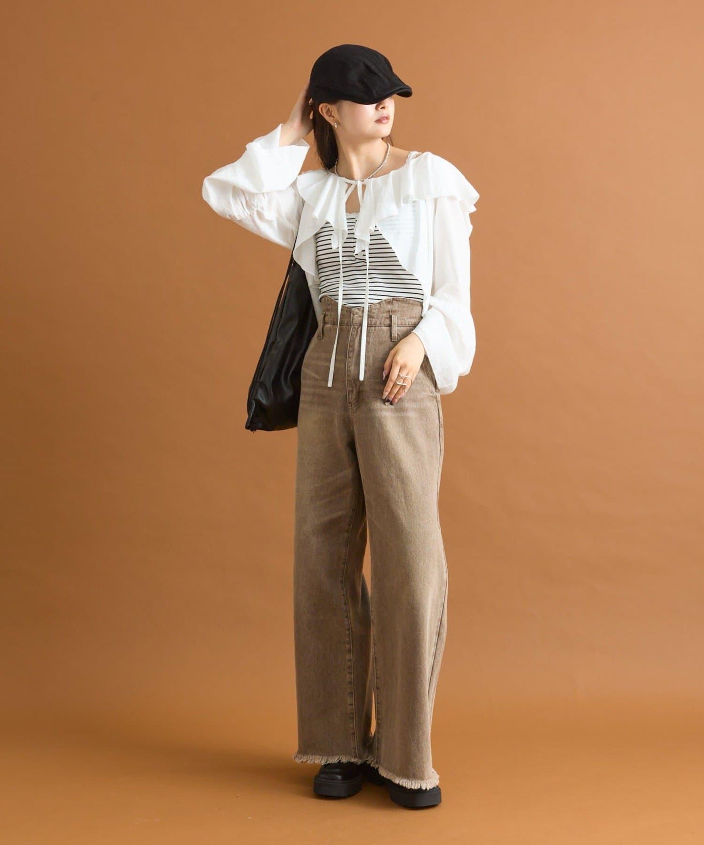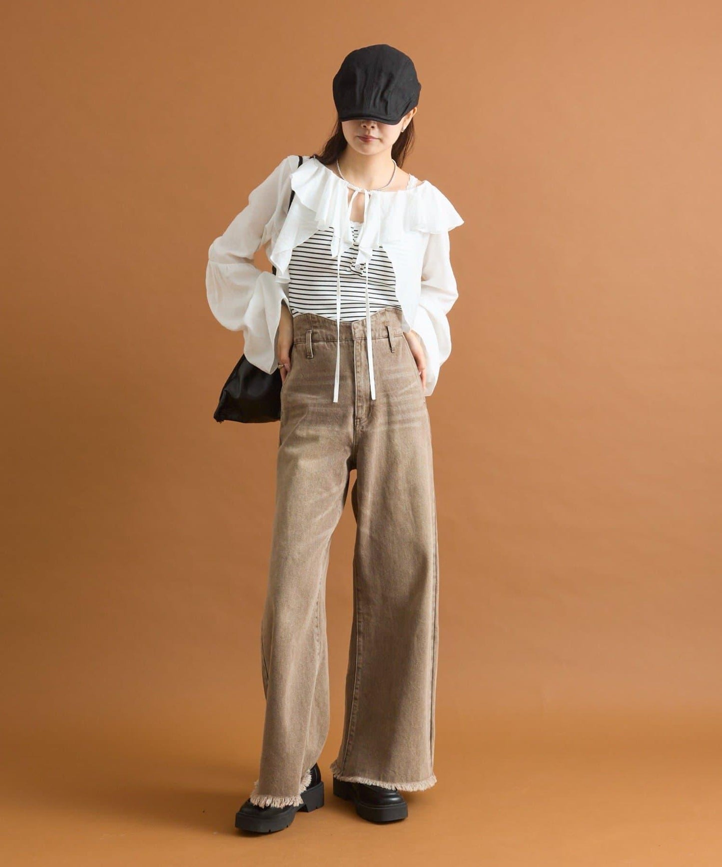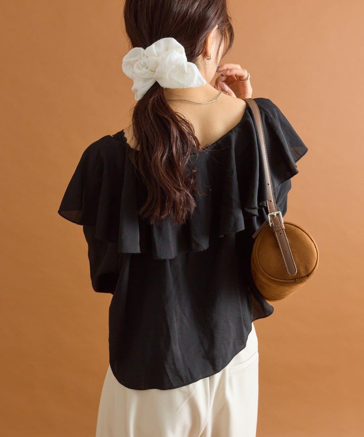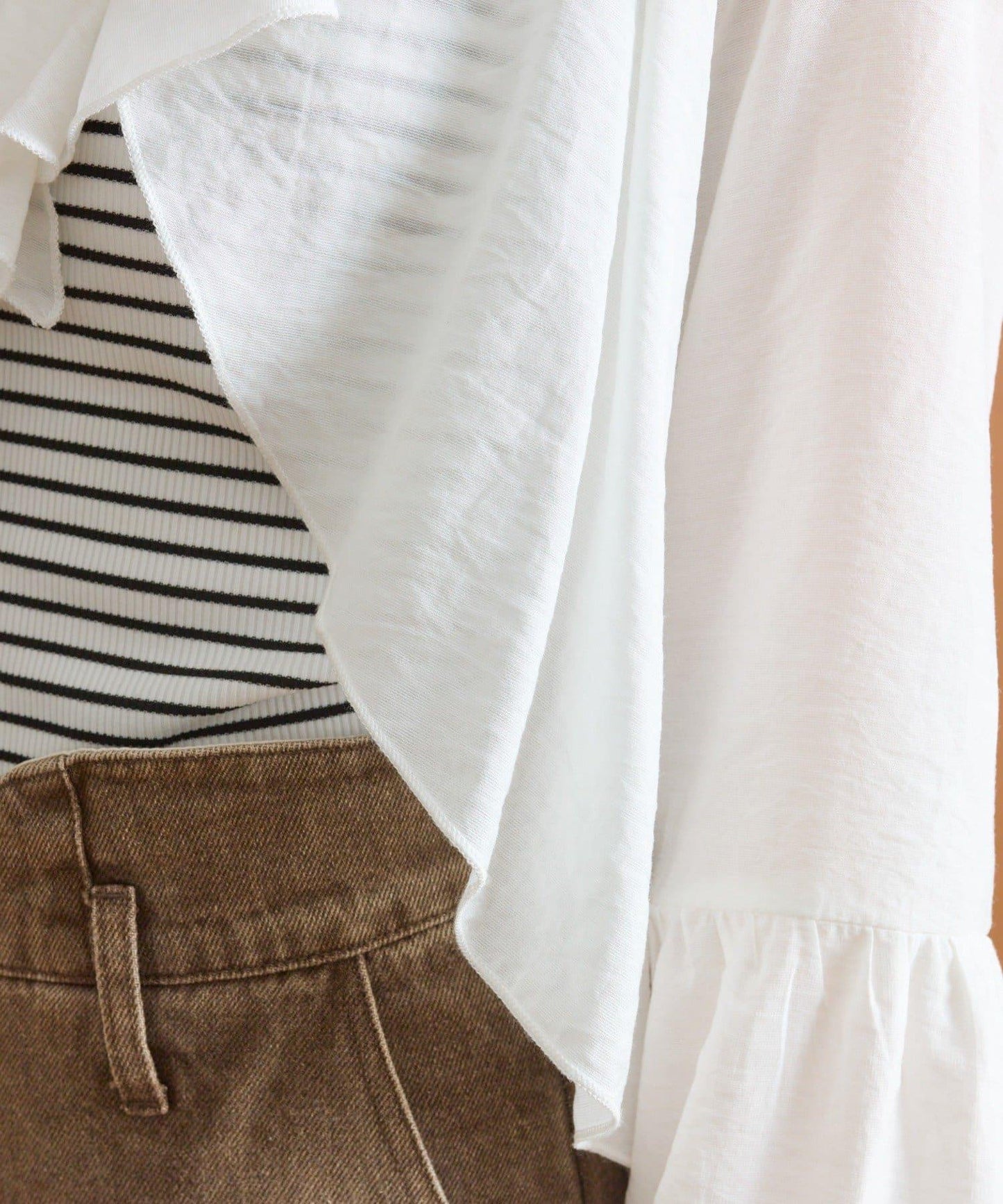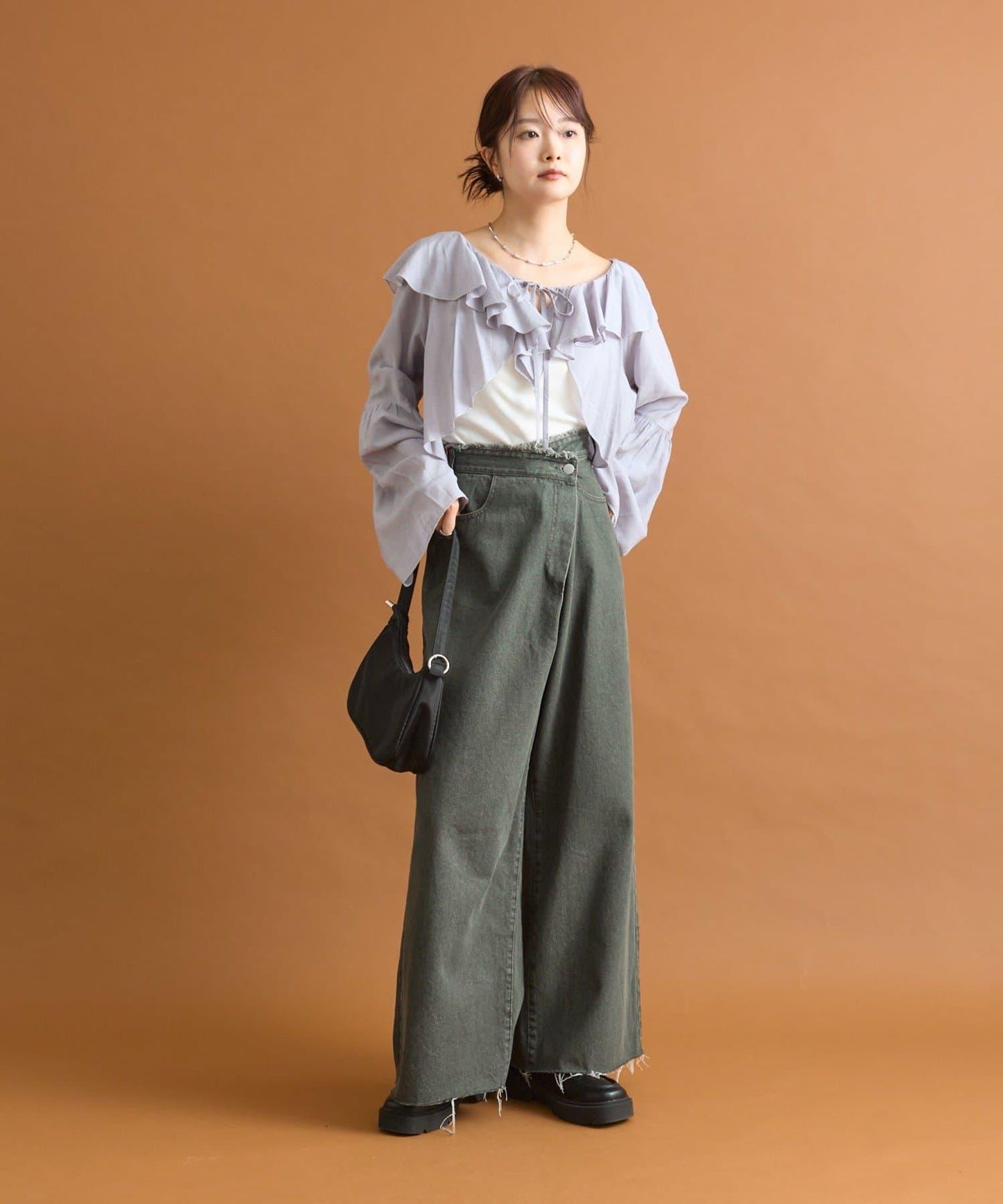 具有存在感的褶邊、大領口和袖口,給人以華麗可愛的印象,是一款帥氣的單品。