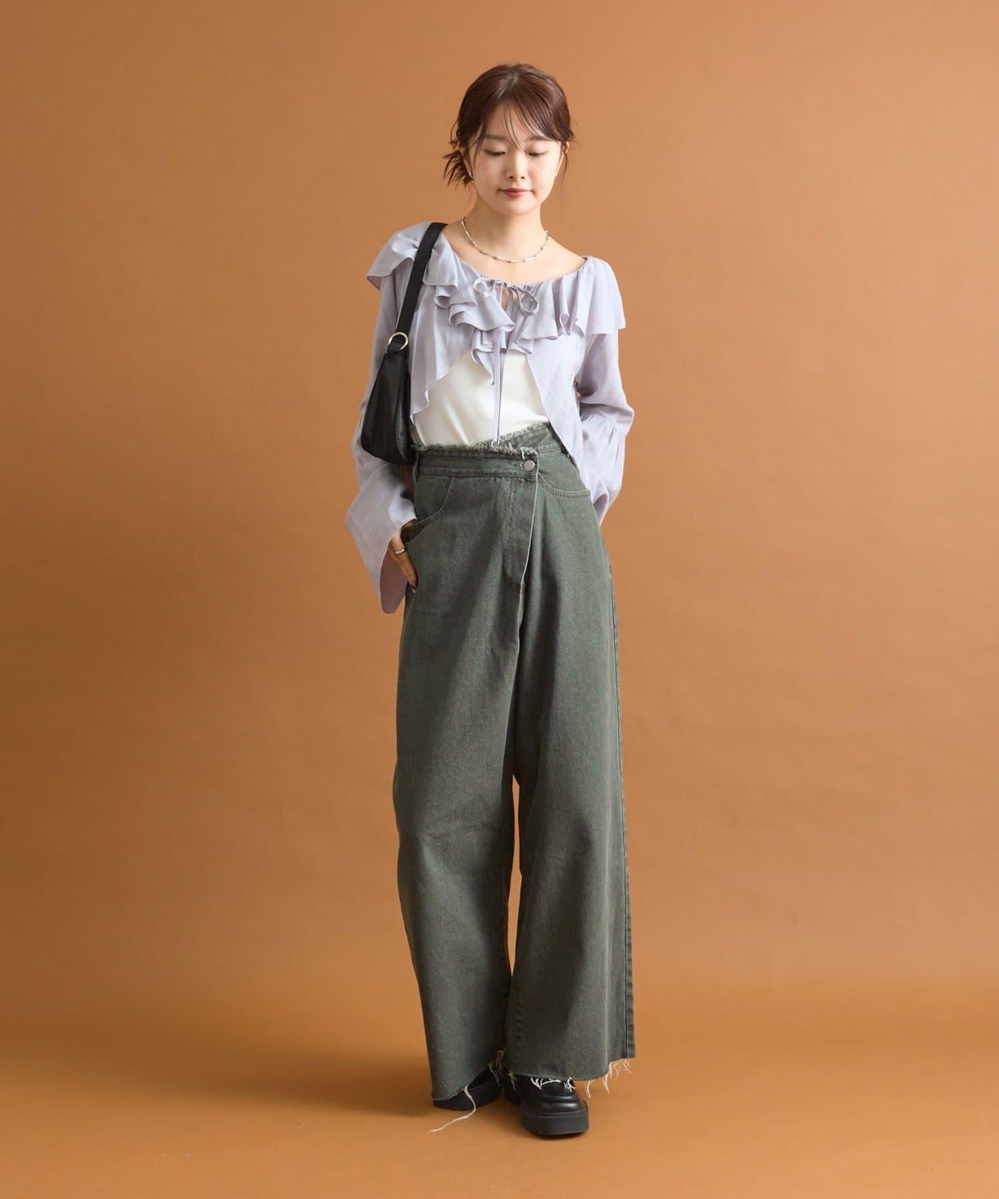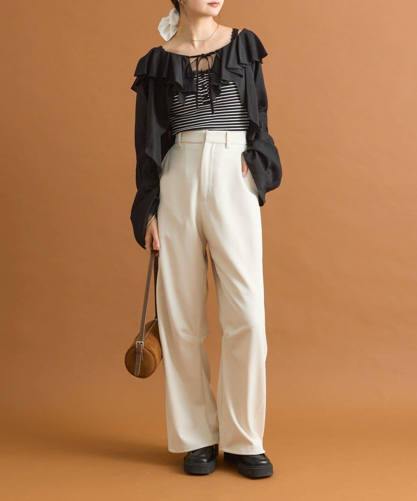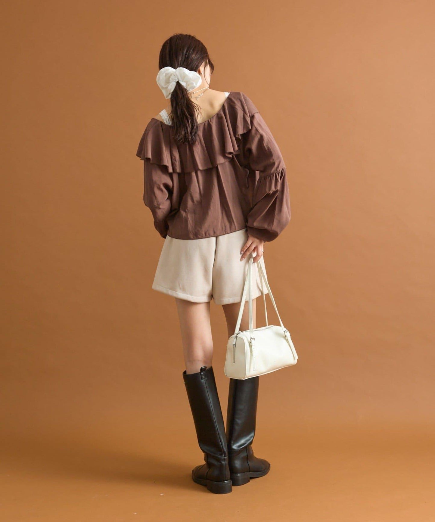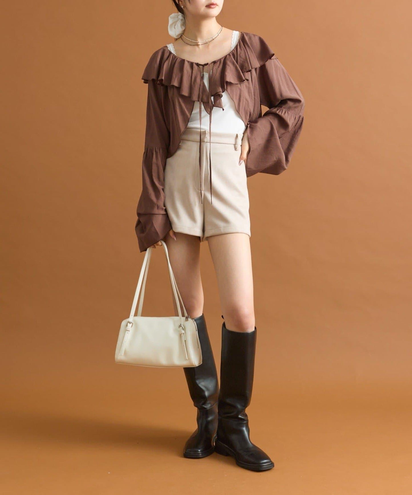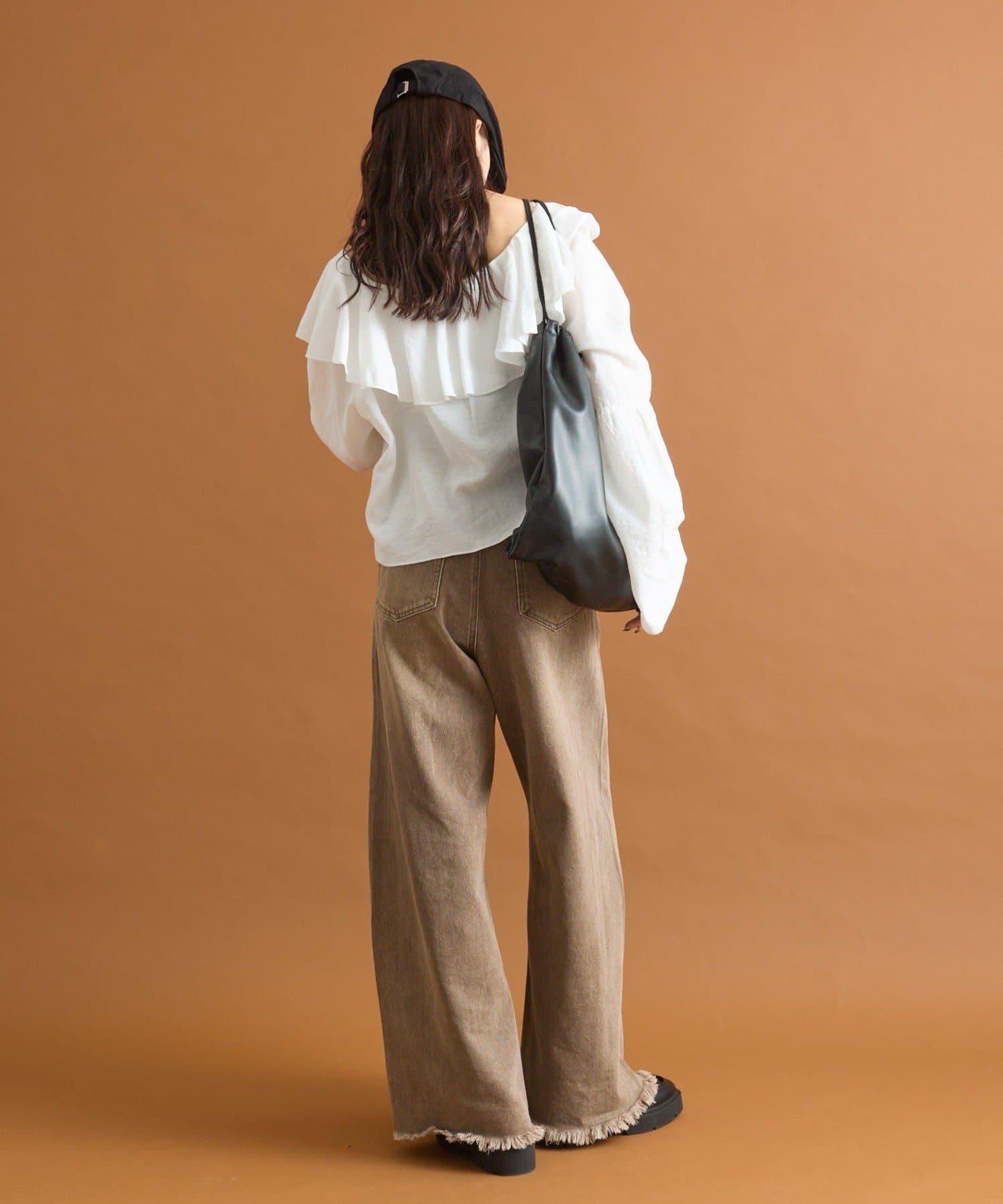 具有存在感的褶邊、大領口和袖口,給人以華麗可愛的印象,是一款帥氣的單品。