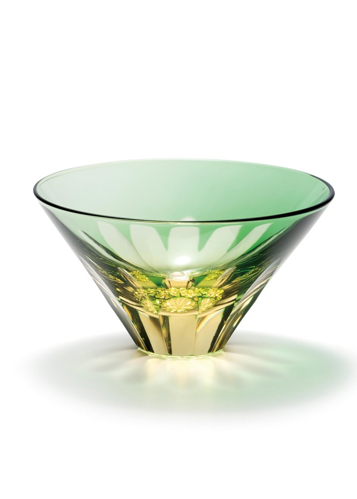 中金玻璃 酒杯 倒立富士綠色/金色