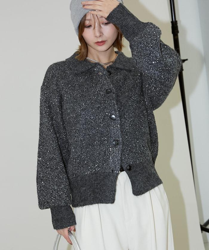 整件針織衫都覆蓋著精美的亮片,為簡單的剪裁增添了魅力。